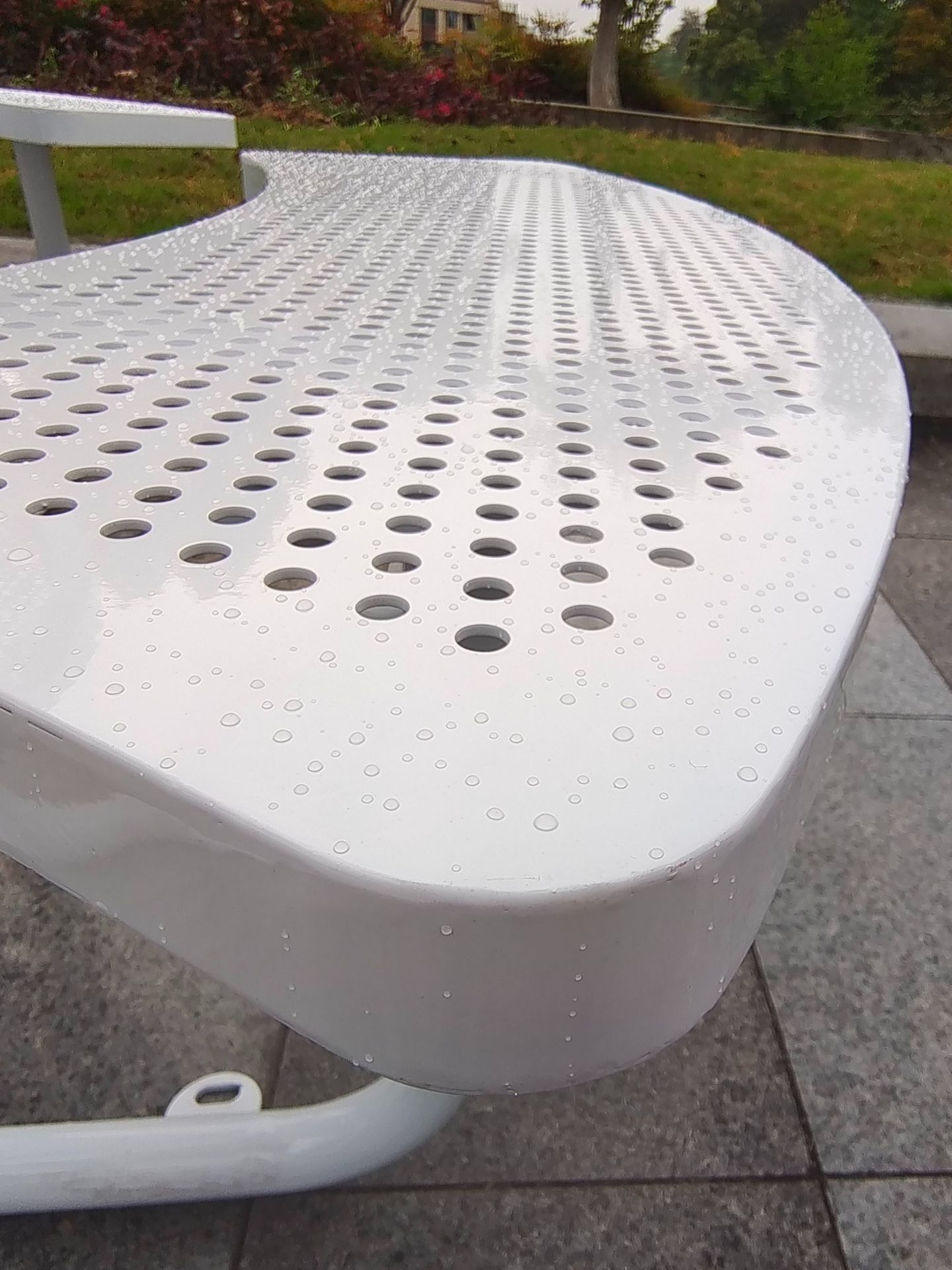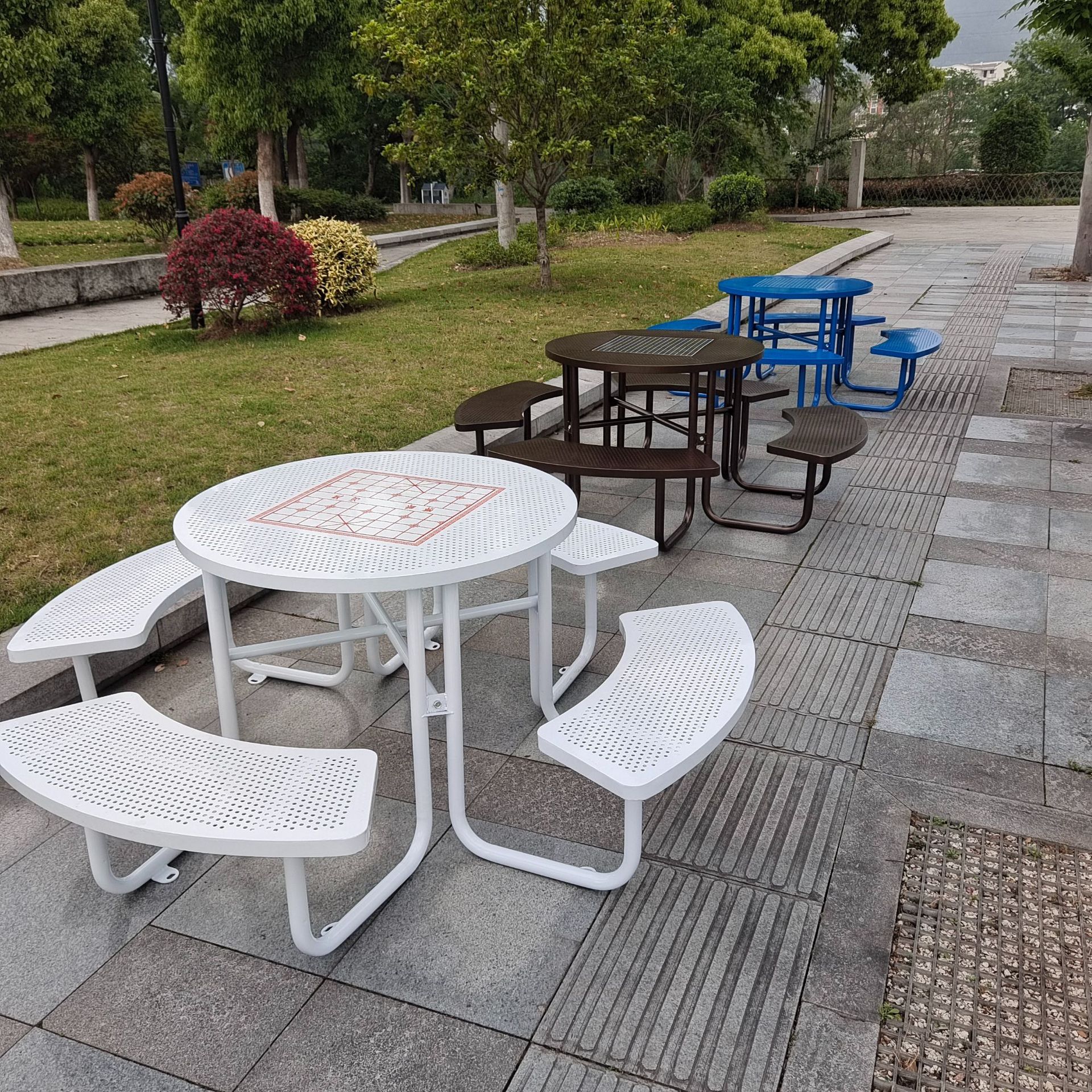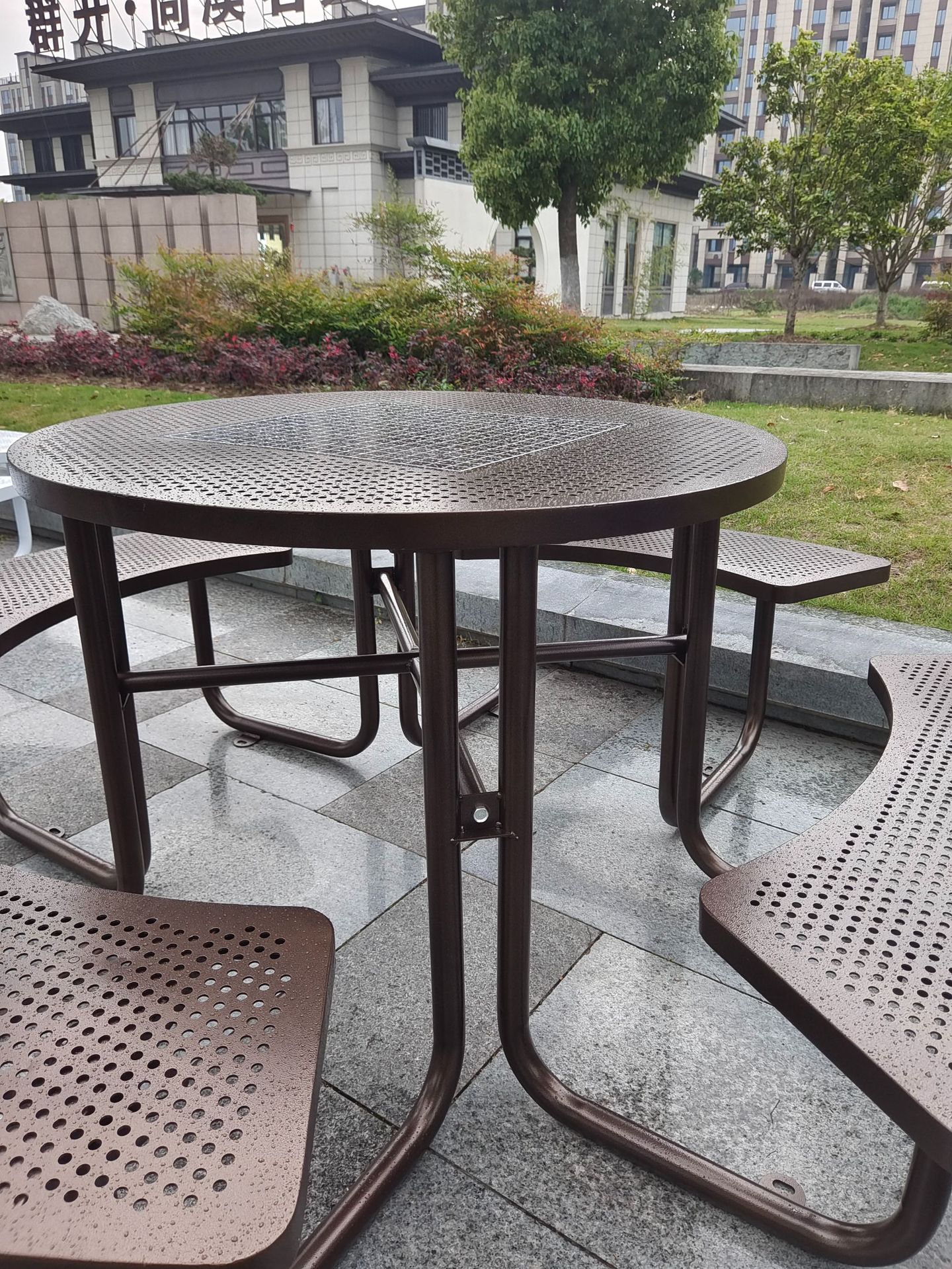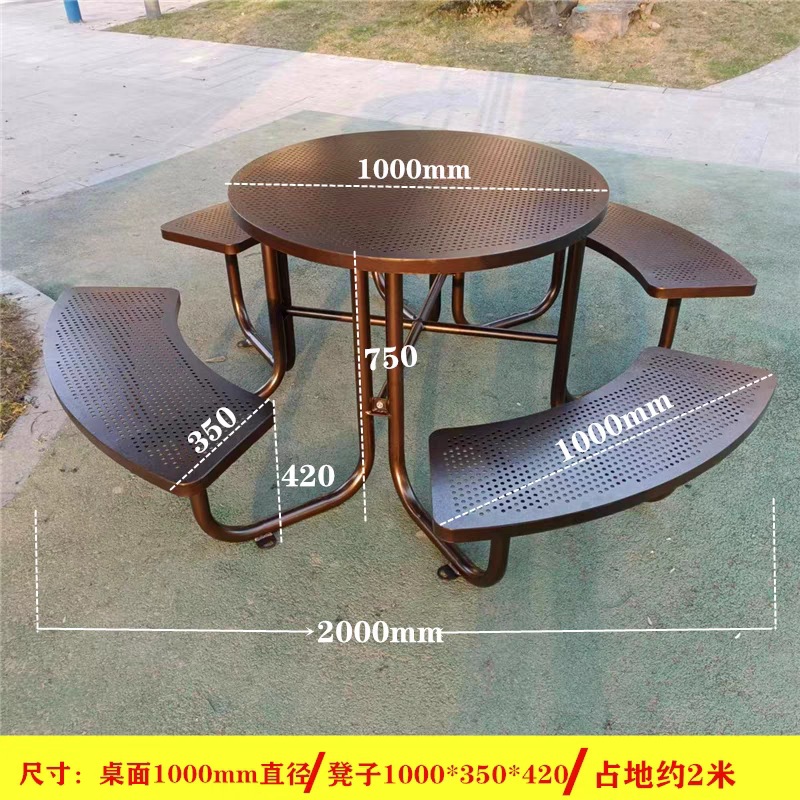 야외 안뜰 금속 테이블과 의자 레스토랑 야외 개방형 금속 메쉬 식탁 커뮤니티 철제 레저 테이블과 의자 조합스토어 가기