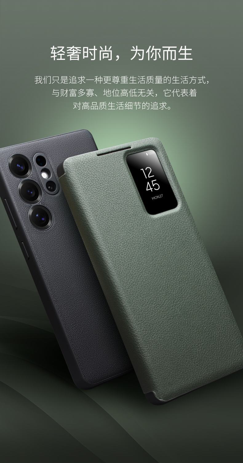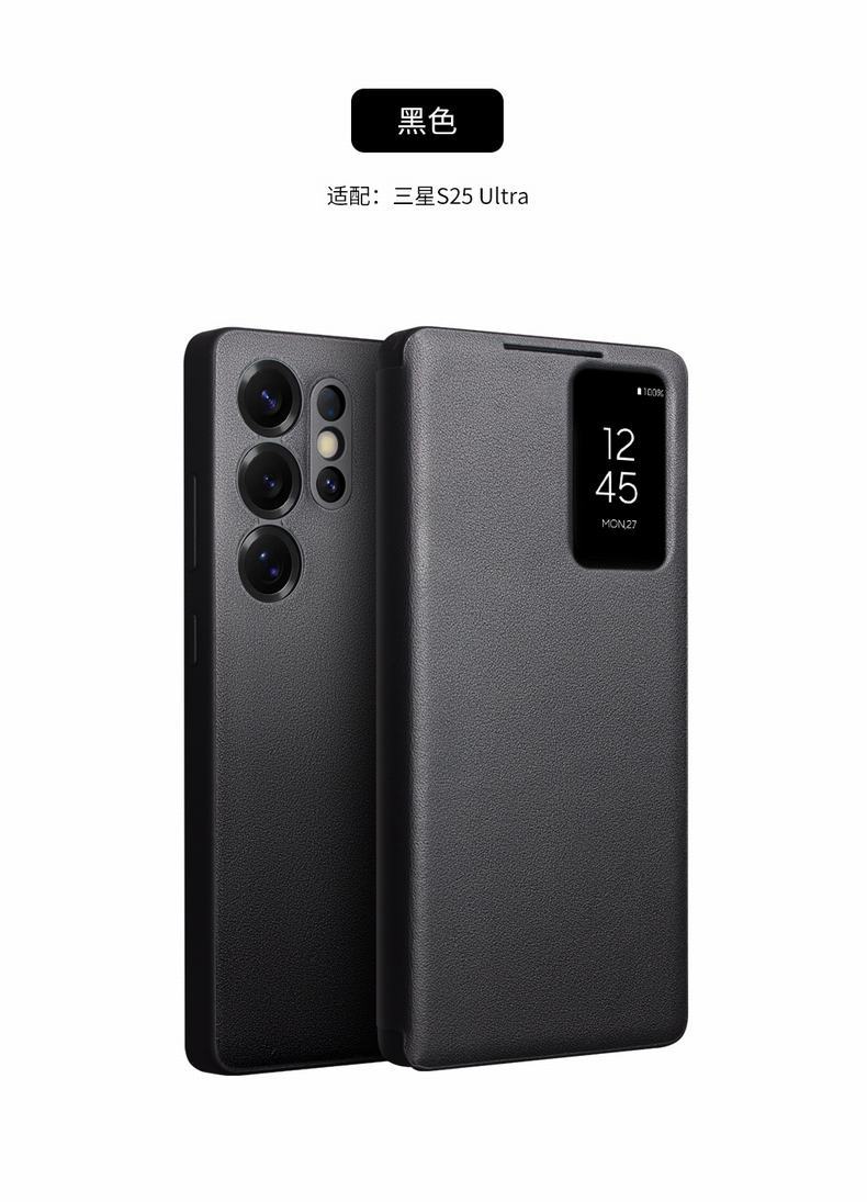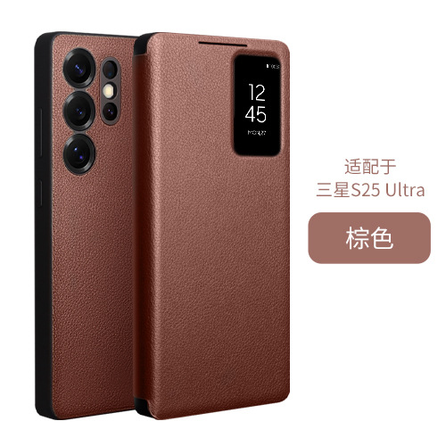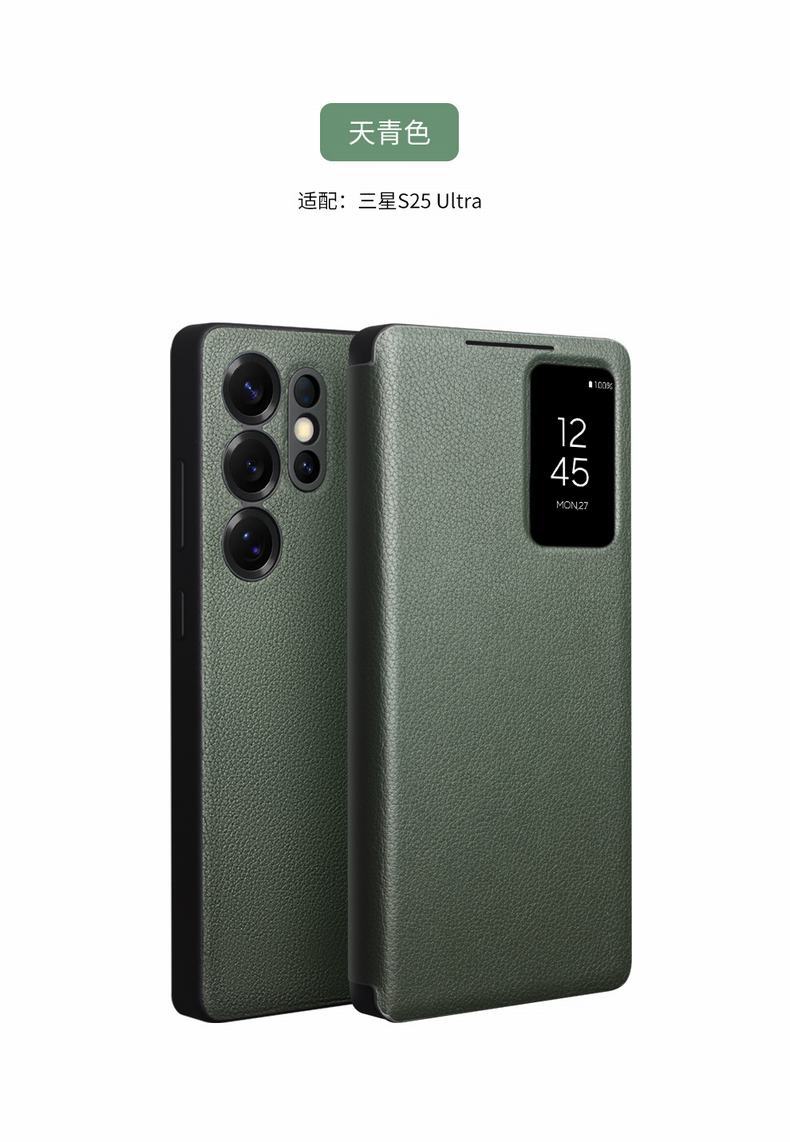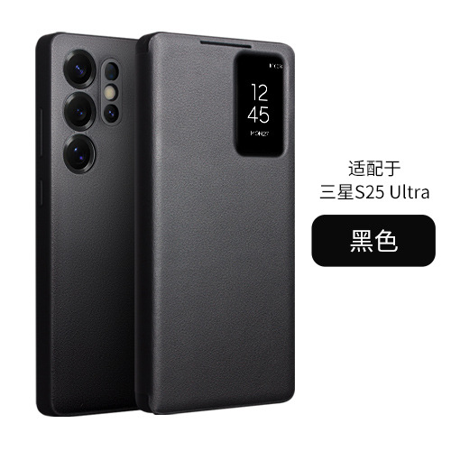 Qiali는 Samsung S25Ultra 휴대폰 케이스에 적합합니다. 정품 가죽 스마트 윈도우 플립형 보호 커버 수면스토어 가기