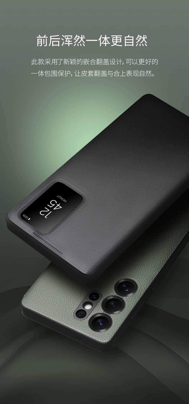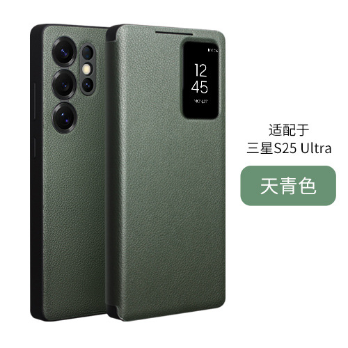 Qiali는 Samsung S25Ultra 휴대폰 케이스에 적합합니다. 정품 가죽 스마트 윈도우 플립형 보호 커버 수면