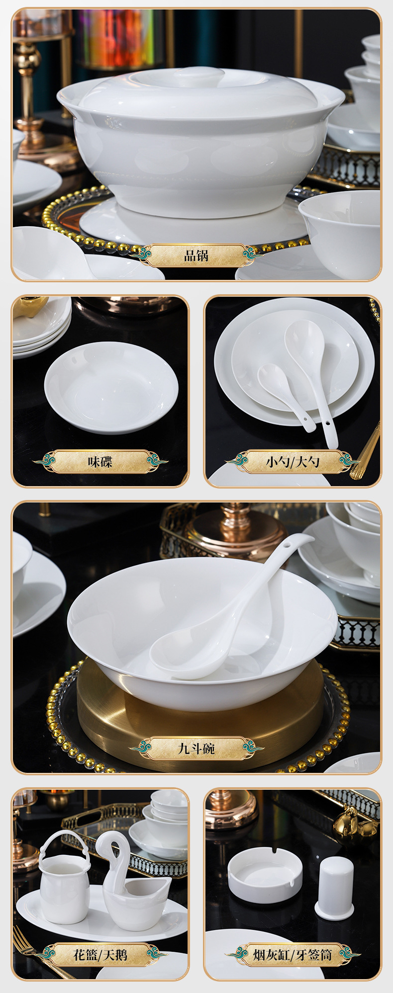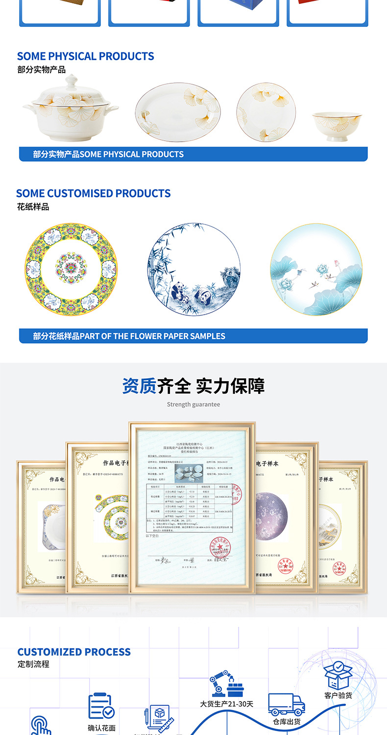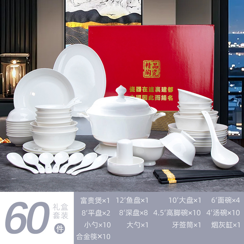 경덕진 도자기 식기 세트, 본차이나 접시 도매, 가정용 선물, 맞춤 제작, 선물용, 기념품 세트