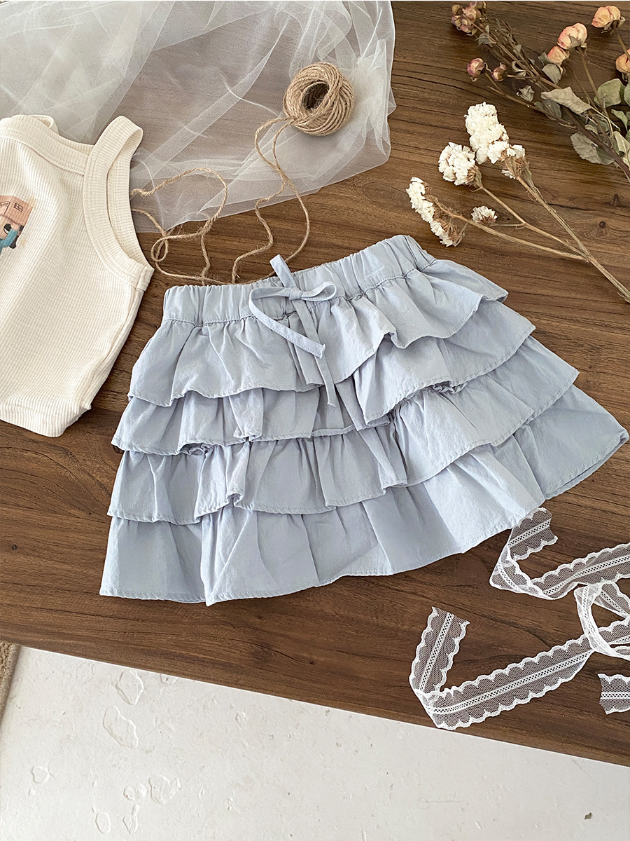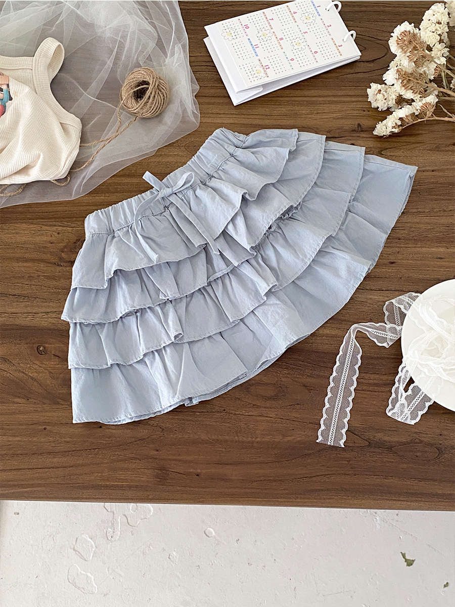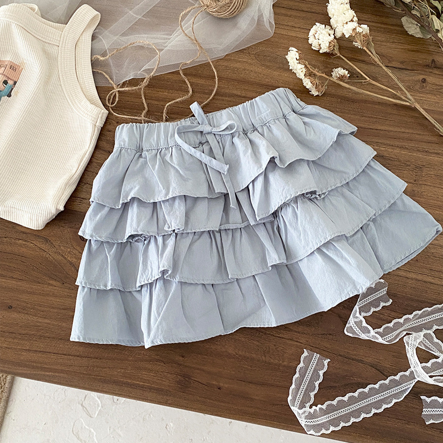한국 소녀 여름 보우 케이크 스커트 2025 새로운 스타일 어린이 달콤하고 세련된 다용도 짧은 스커트 기질 스커트스토어 가기