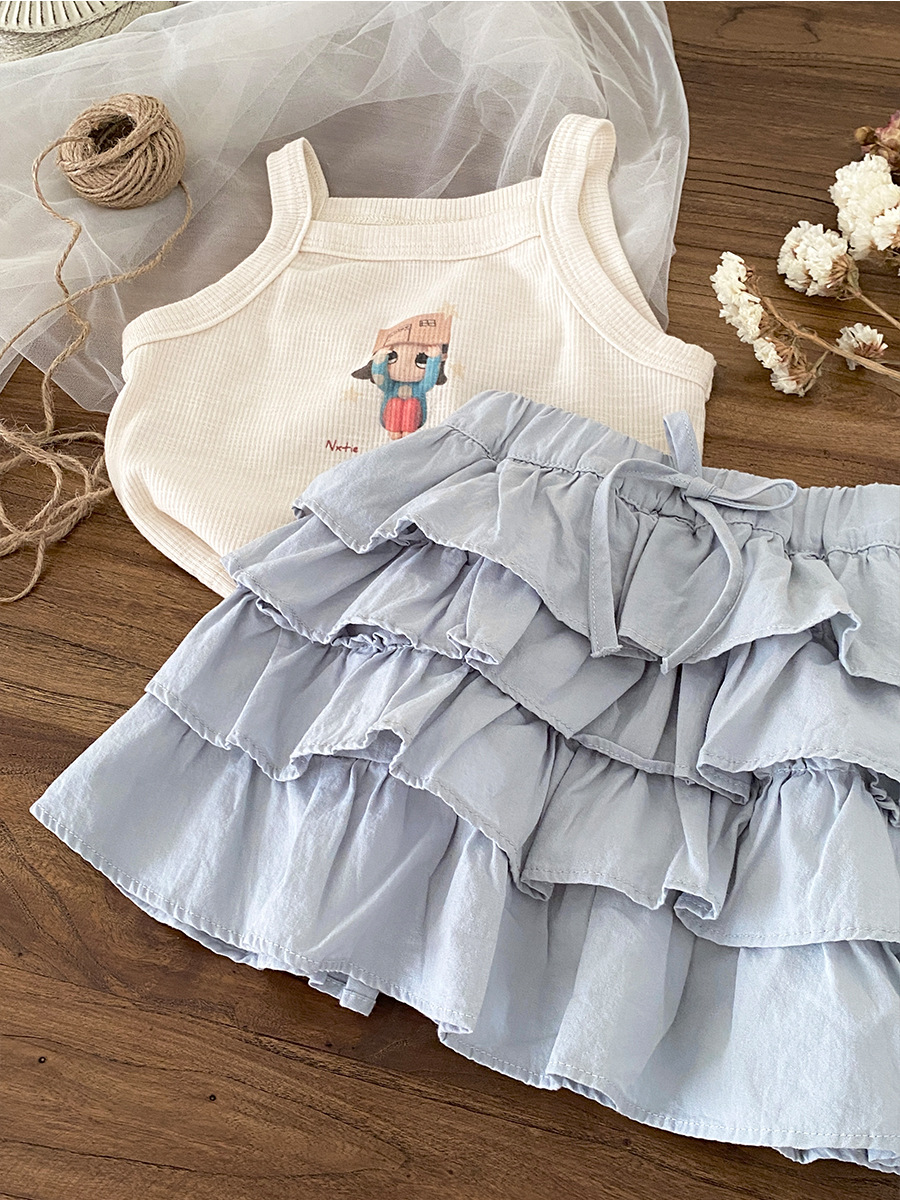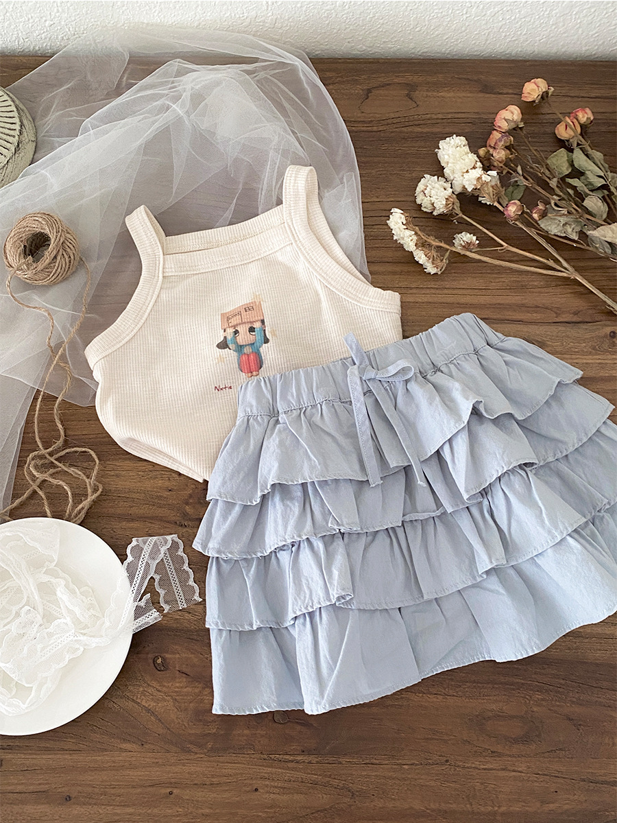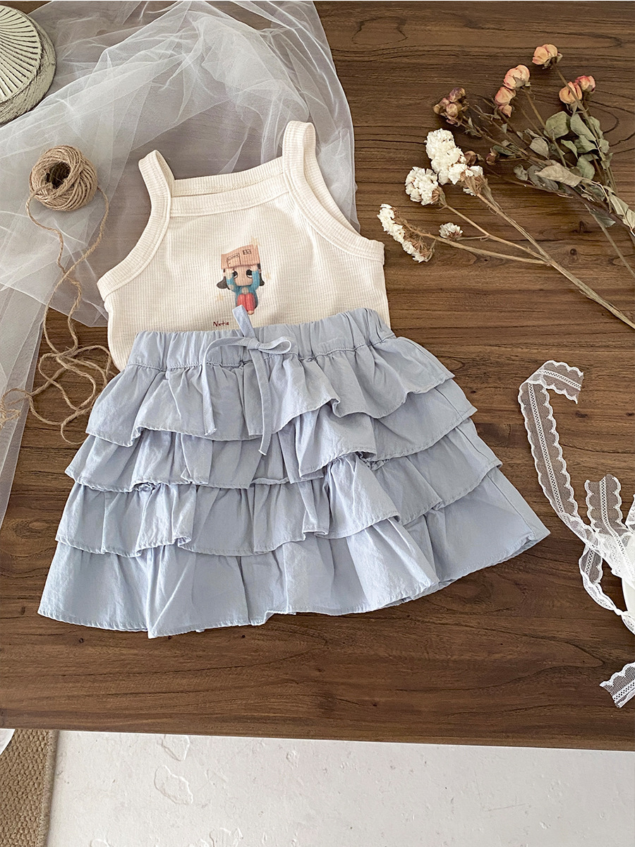 한국 소녀 여름 보우 케이크 스커트 2025 새로운 스타일 어린이 달콤하고 세련된 다용도 짧은 스커트 기질 스커트스토어 가기