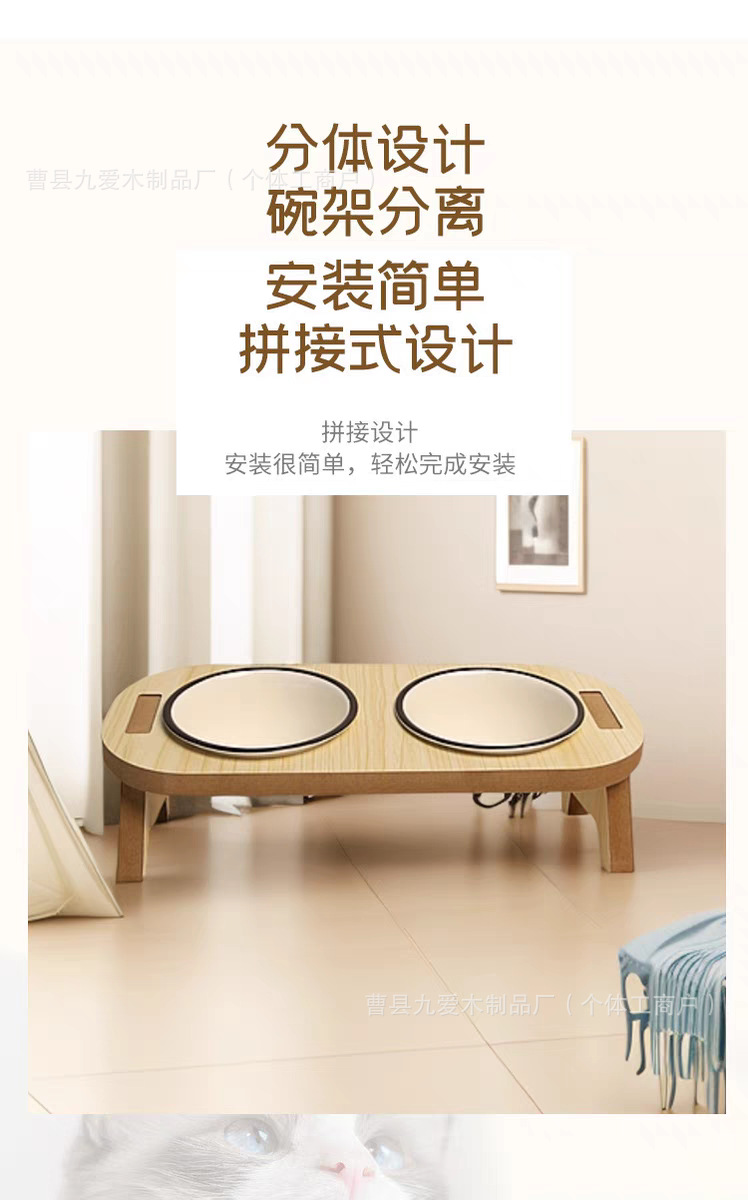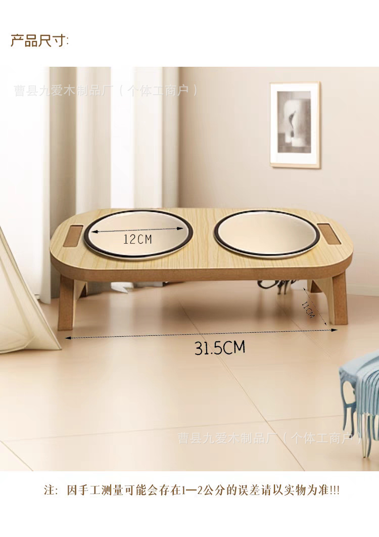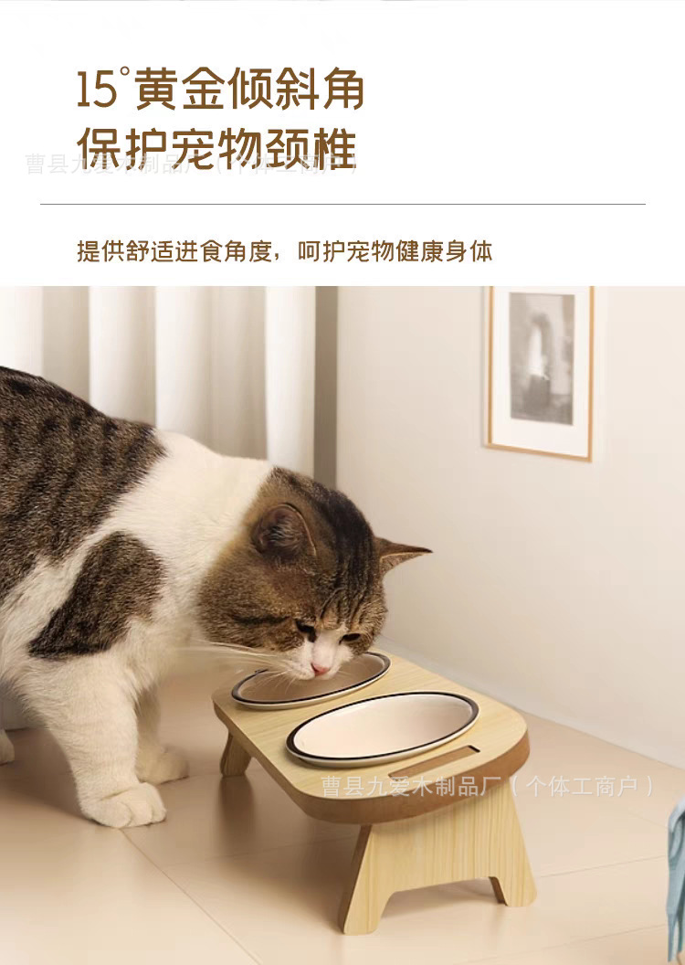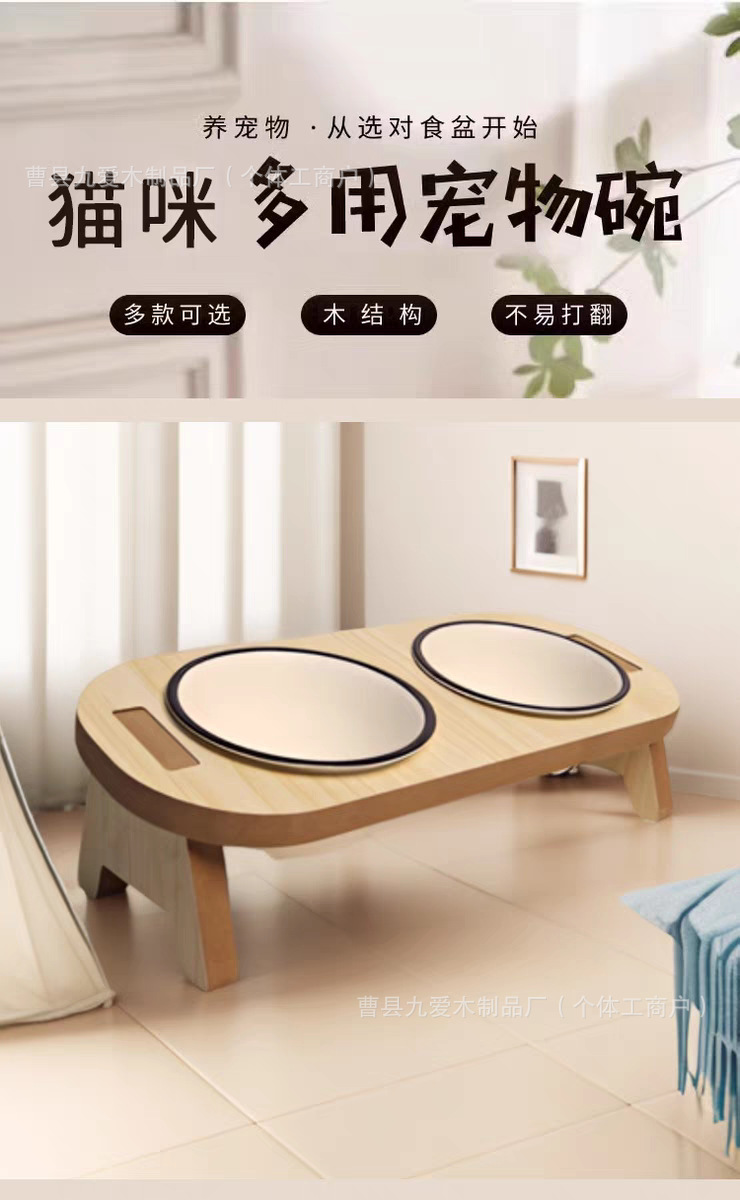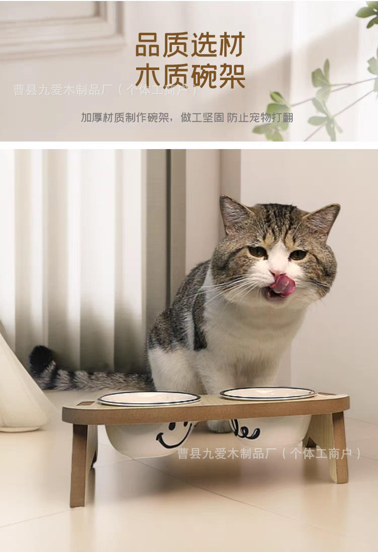 • 그릇이 있는 나무 고양이 그릇 스탠드