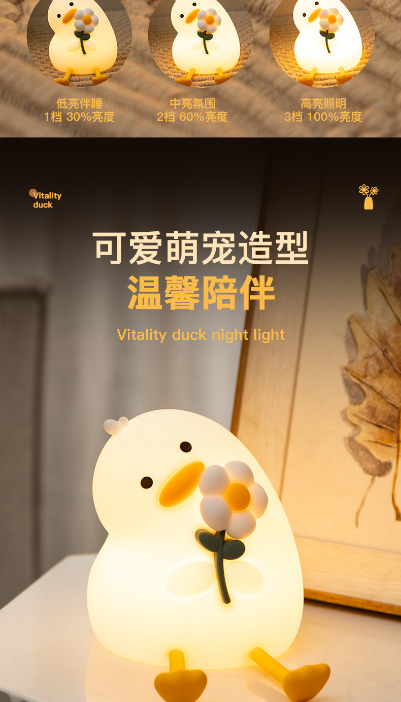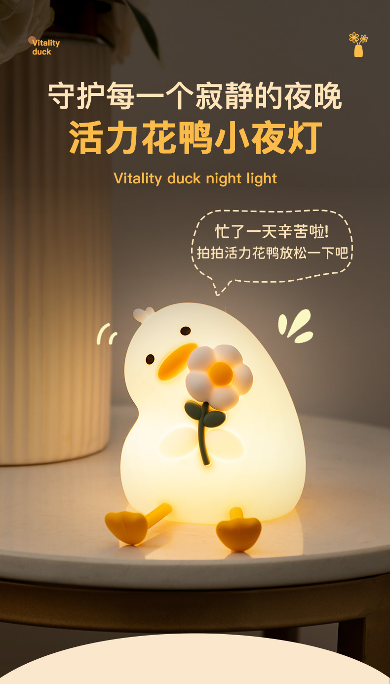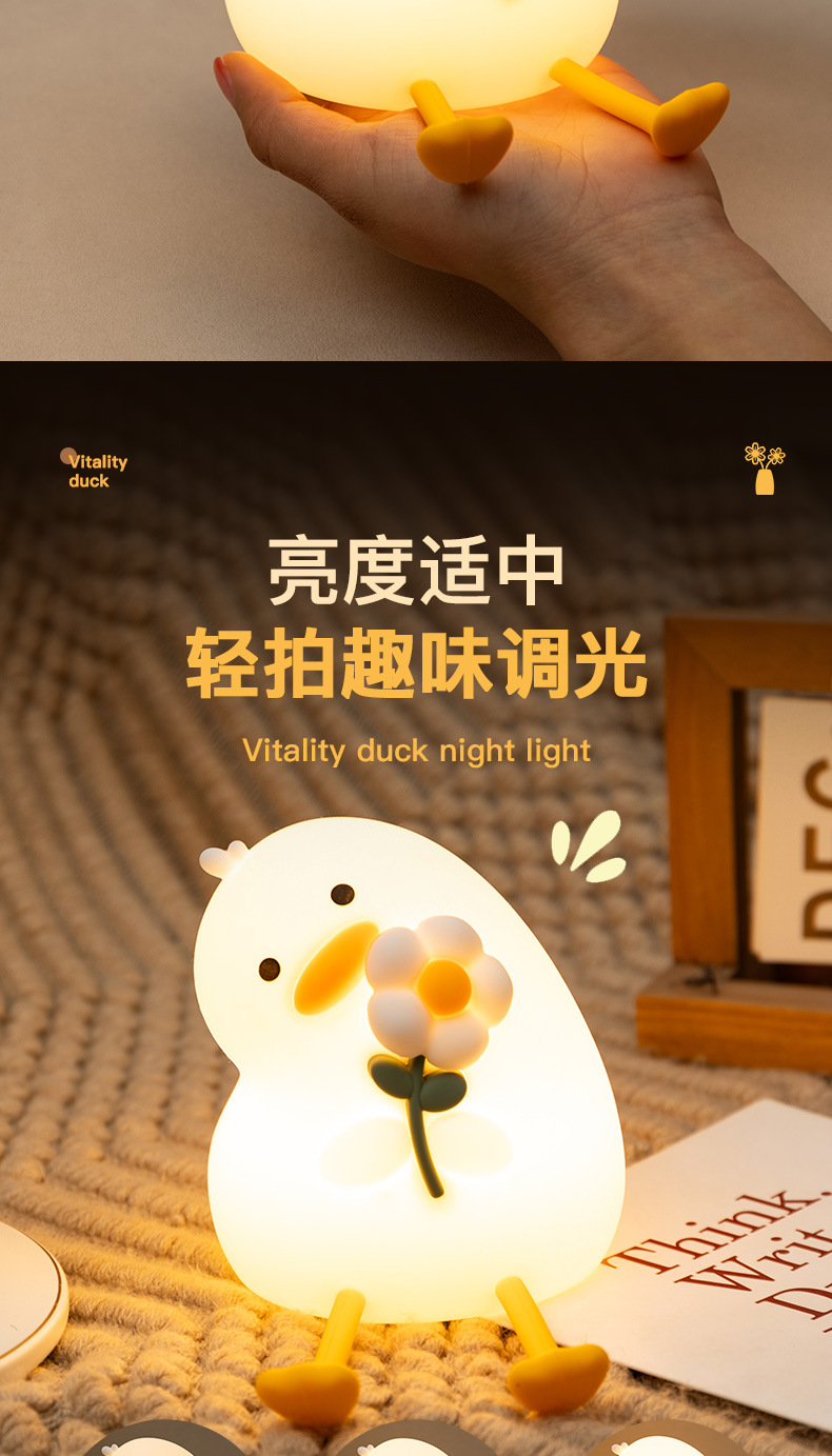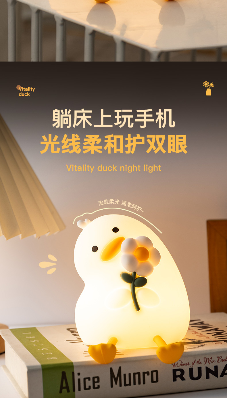 활력 오리 야간 조명 실리콘 램프 인기 만화 간단한 분위기 조명 선물 침실 눈 보호 테이블 램프 새로운 스타일