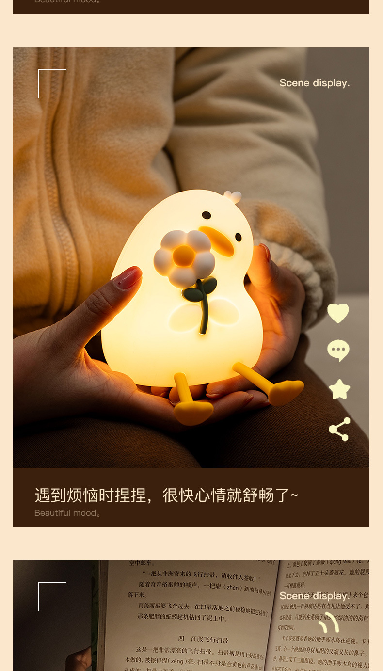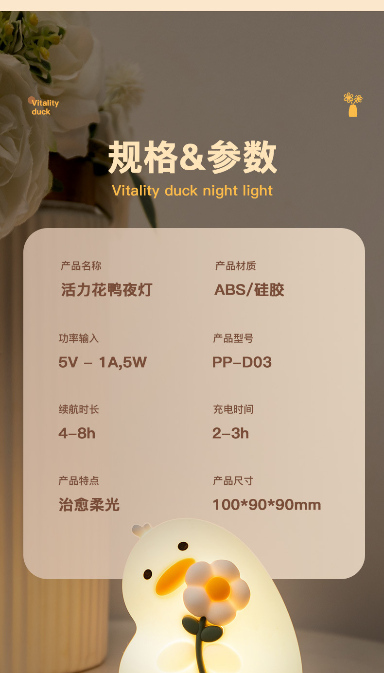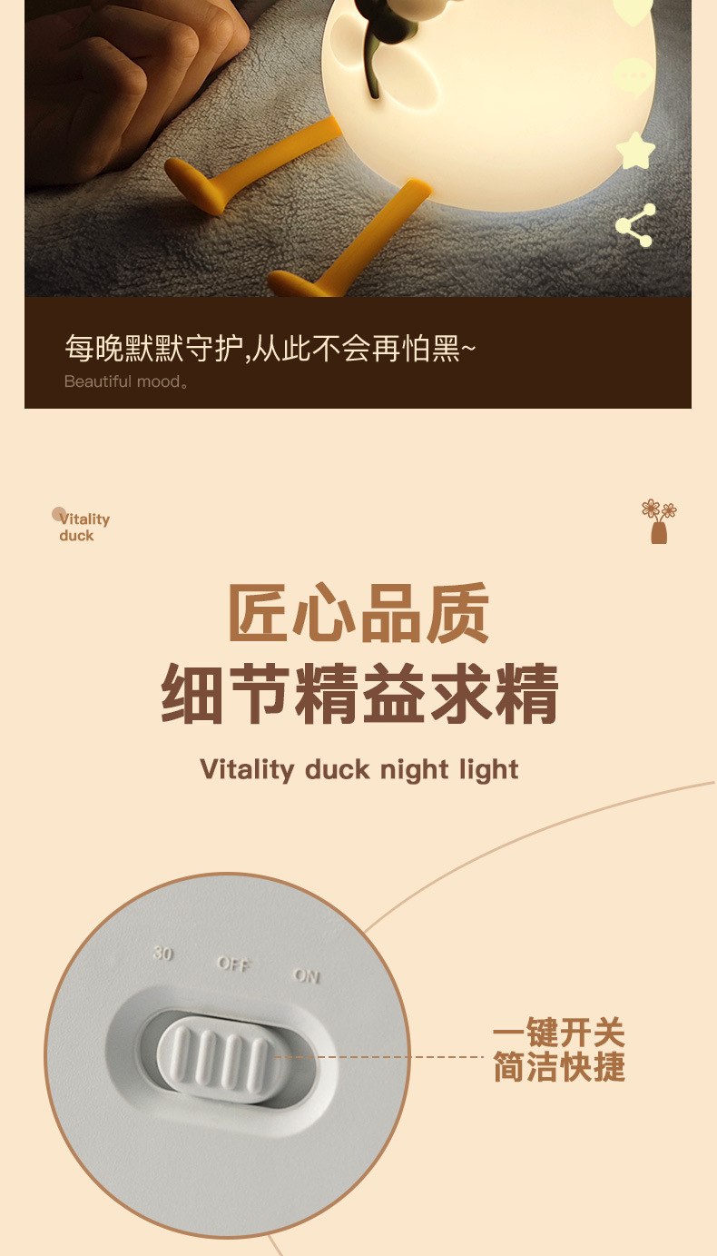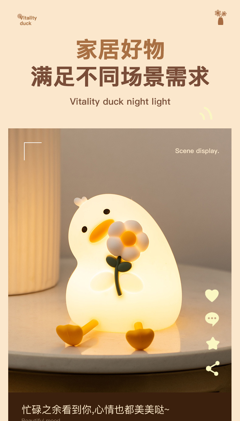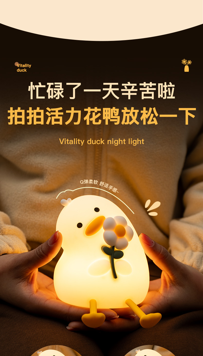 활력 오리 야간 조명 실리콘 램프 인기 만화 간단한 분위기 조명 선물 침실 눈 보호 테이블 램프 새로운 스타일