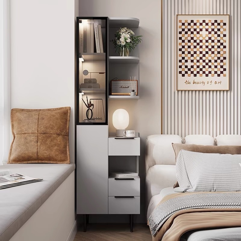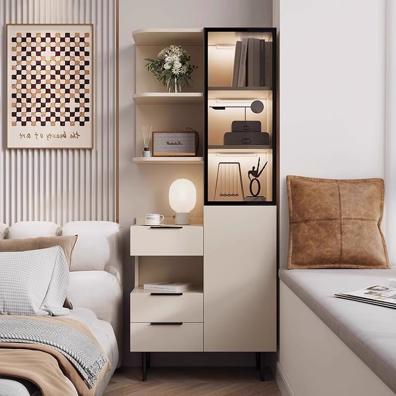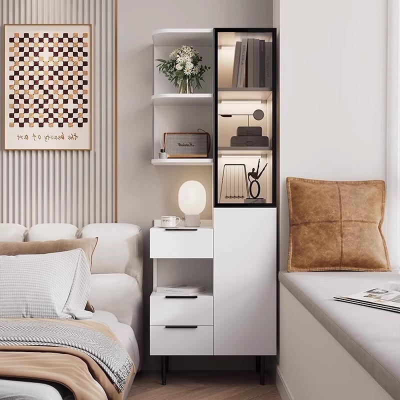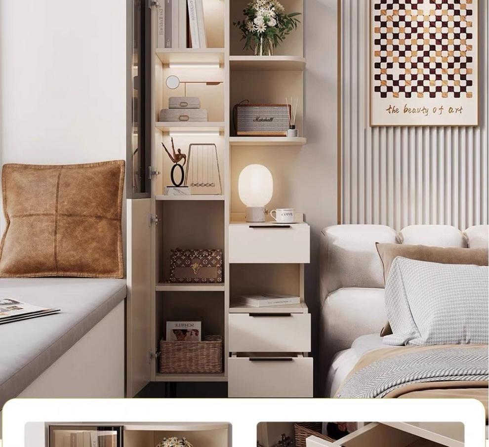 단단한 나무 침대 옆 테이블 옷장 보관 일체형 홈 침실 현대적인 미니멀리스트 작은 아파트 침대 옆스토어 가기
