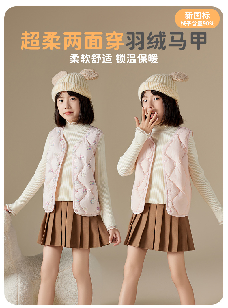 2025 가을 · 겨울 소년 · 소녀 경량 양면 다운 조끼