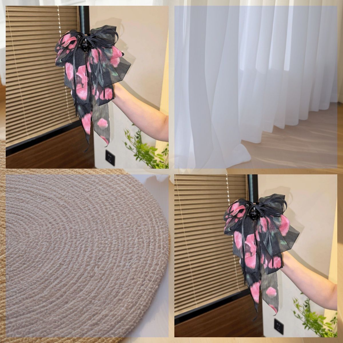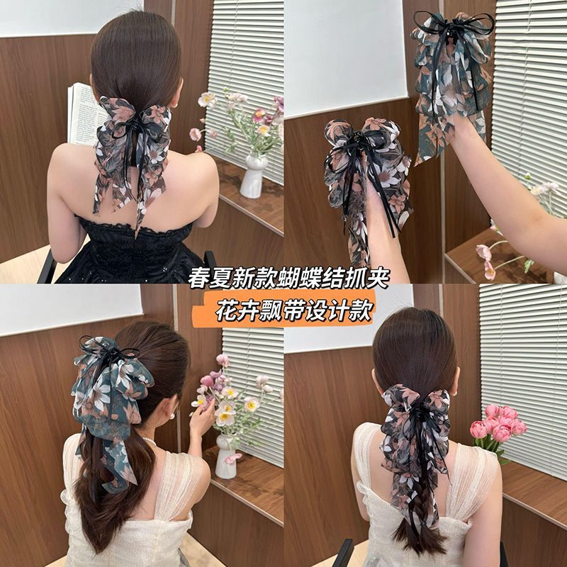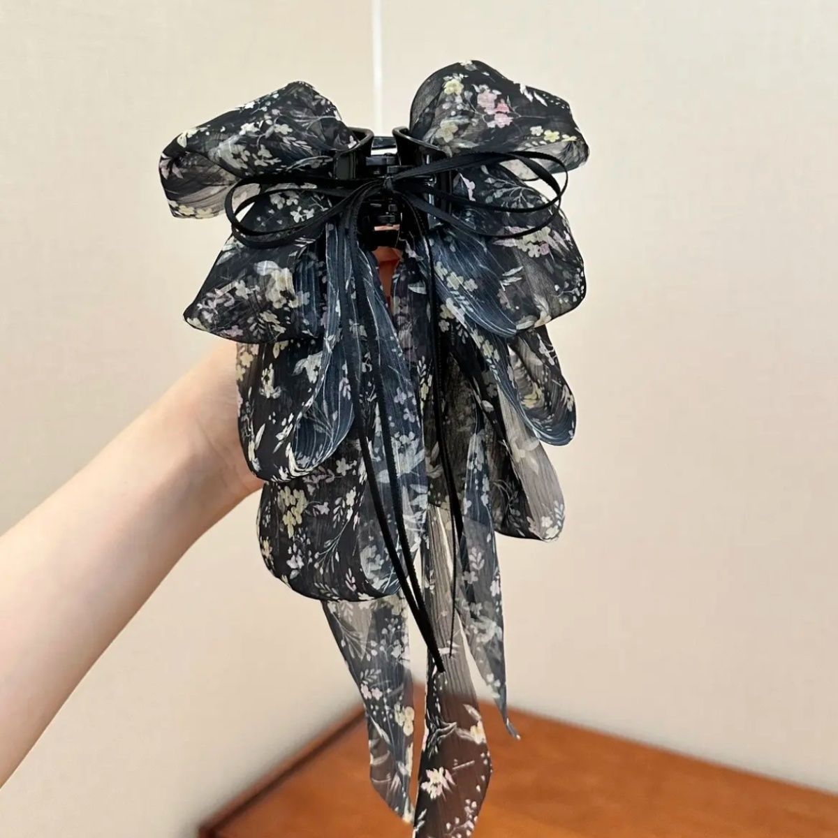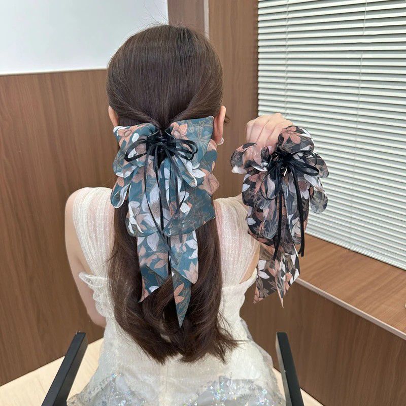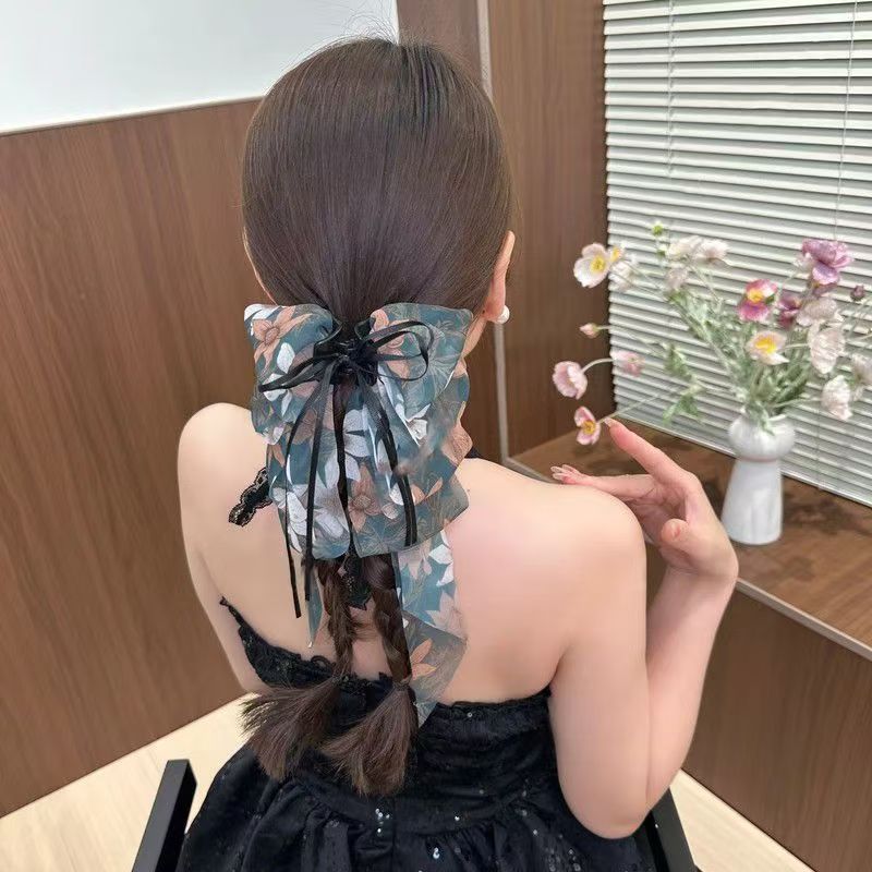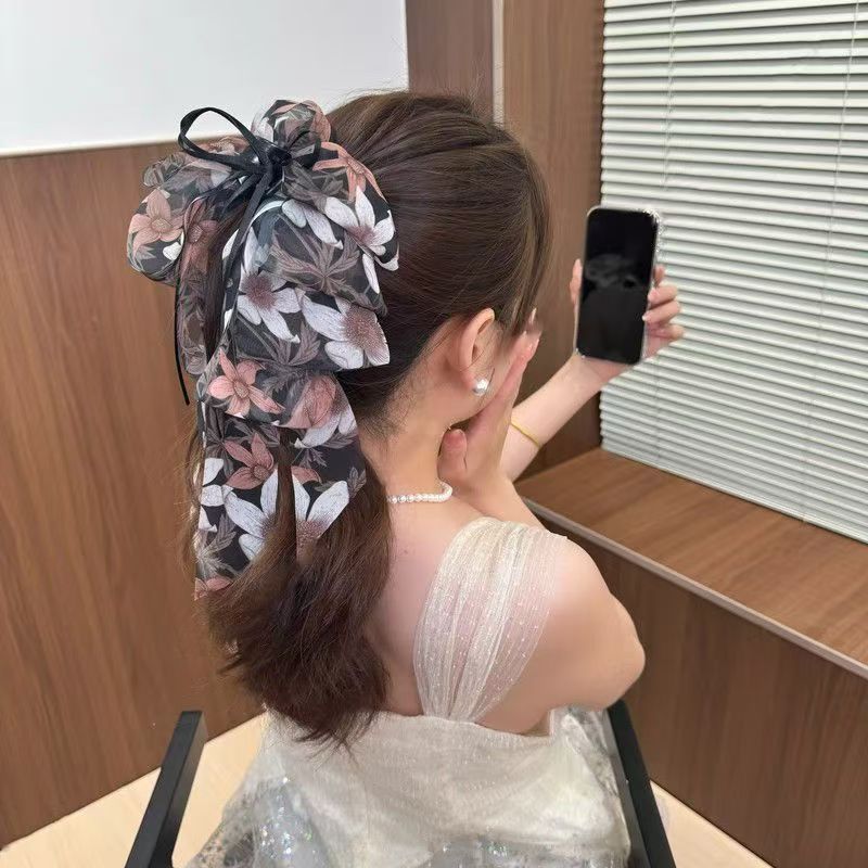 • 검정 플라워 롱 리본 집게핀
