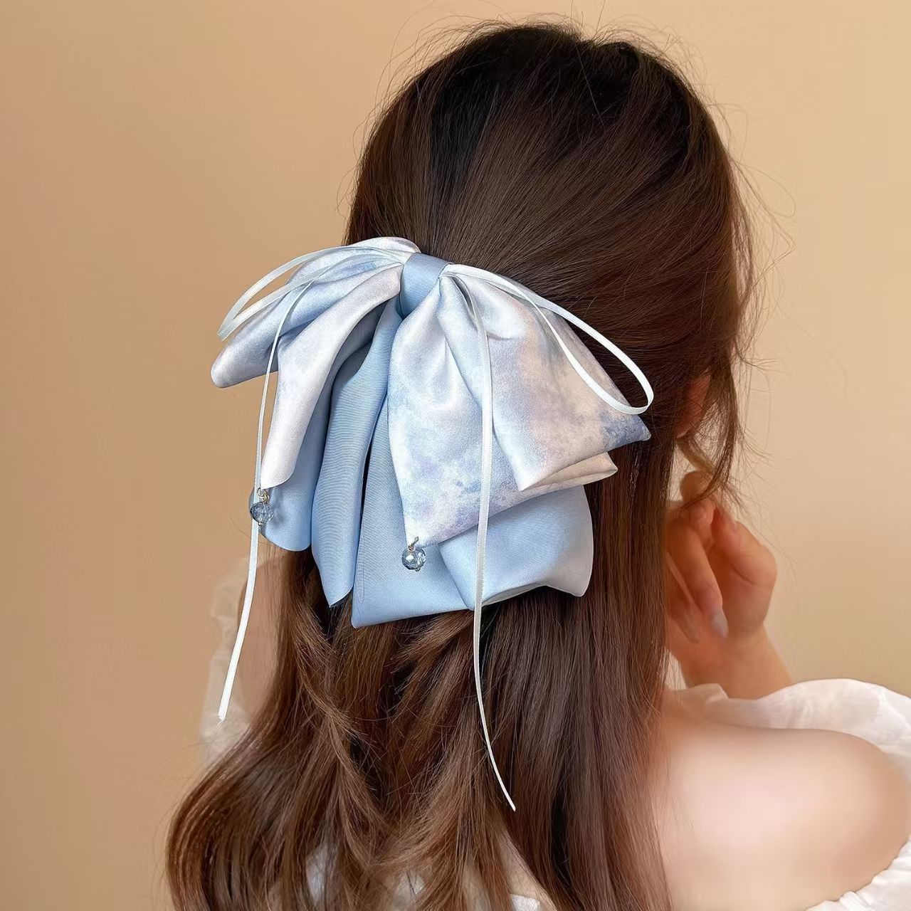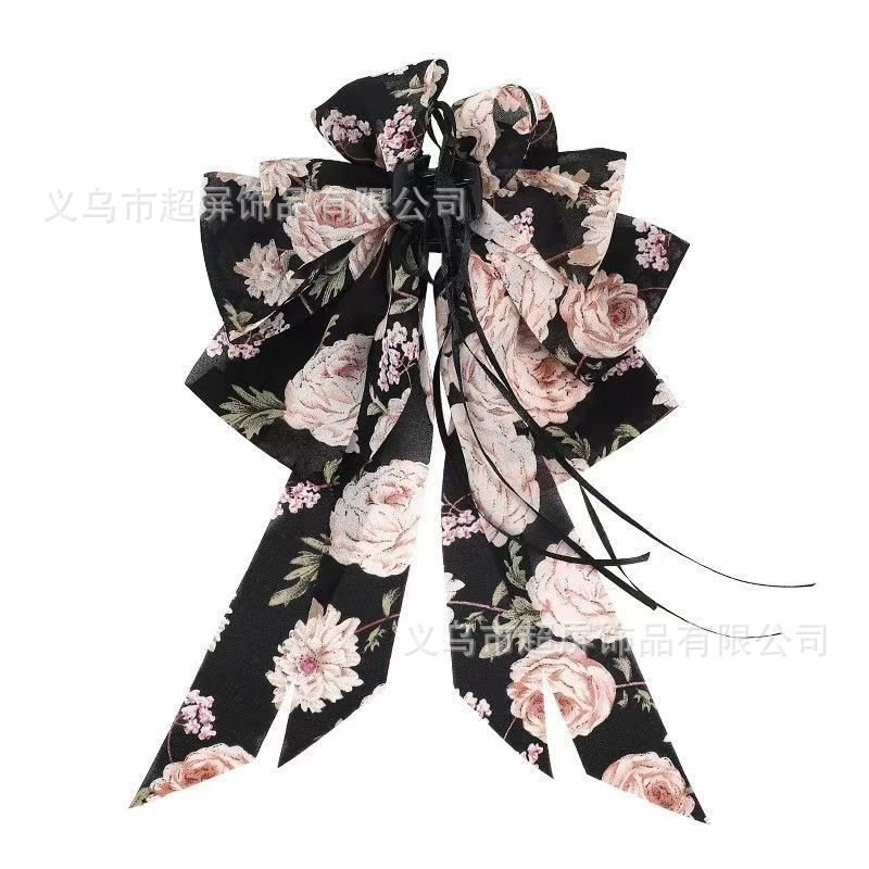 2026년 신상 숲풍 장미 머리핀, 프렌치 로맨틱 고급스러운 꽃무늬 뒷머리 리본 머리핀