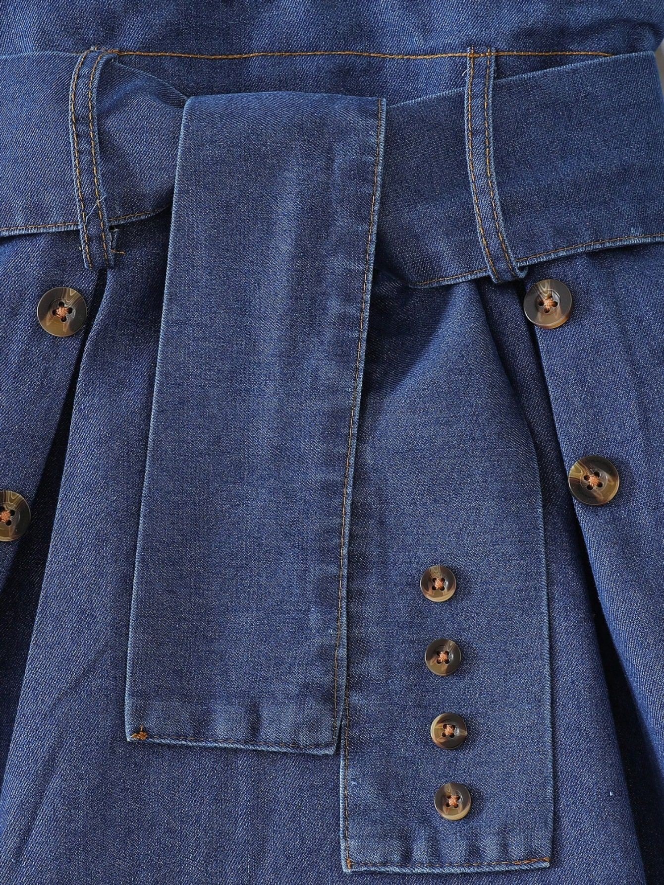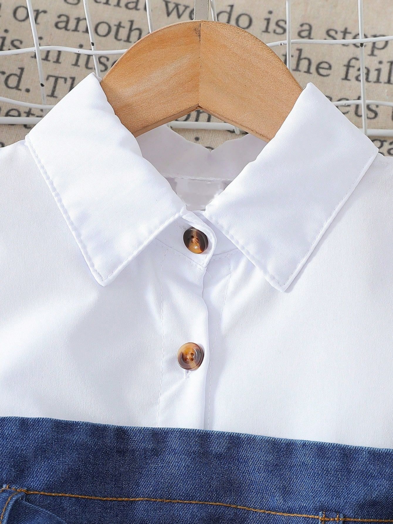 유럽과 미국 스타일의 크로스보더 드레스를 짠 어린 소녀와 어린 소녀, 데님 스플라이싱 솔리드 컬러 어린이 여름 흰색 옷