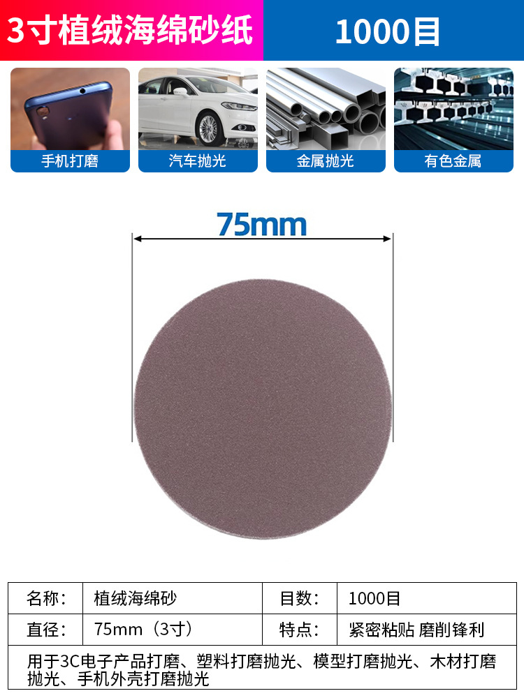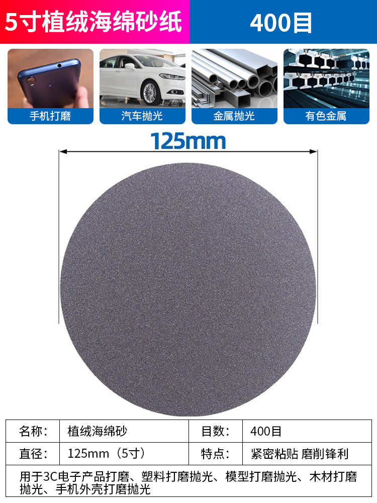스펀지 사포 휴대 전화 케이스 금속 모델 자동차 페인트 연마 및 연마 스폰지 샌딩 전기 연삭 백 플로킹 자체 접착 디스크 사포
