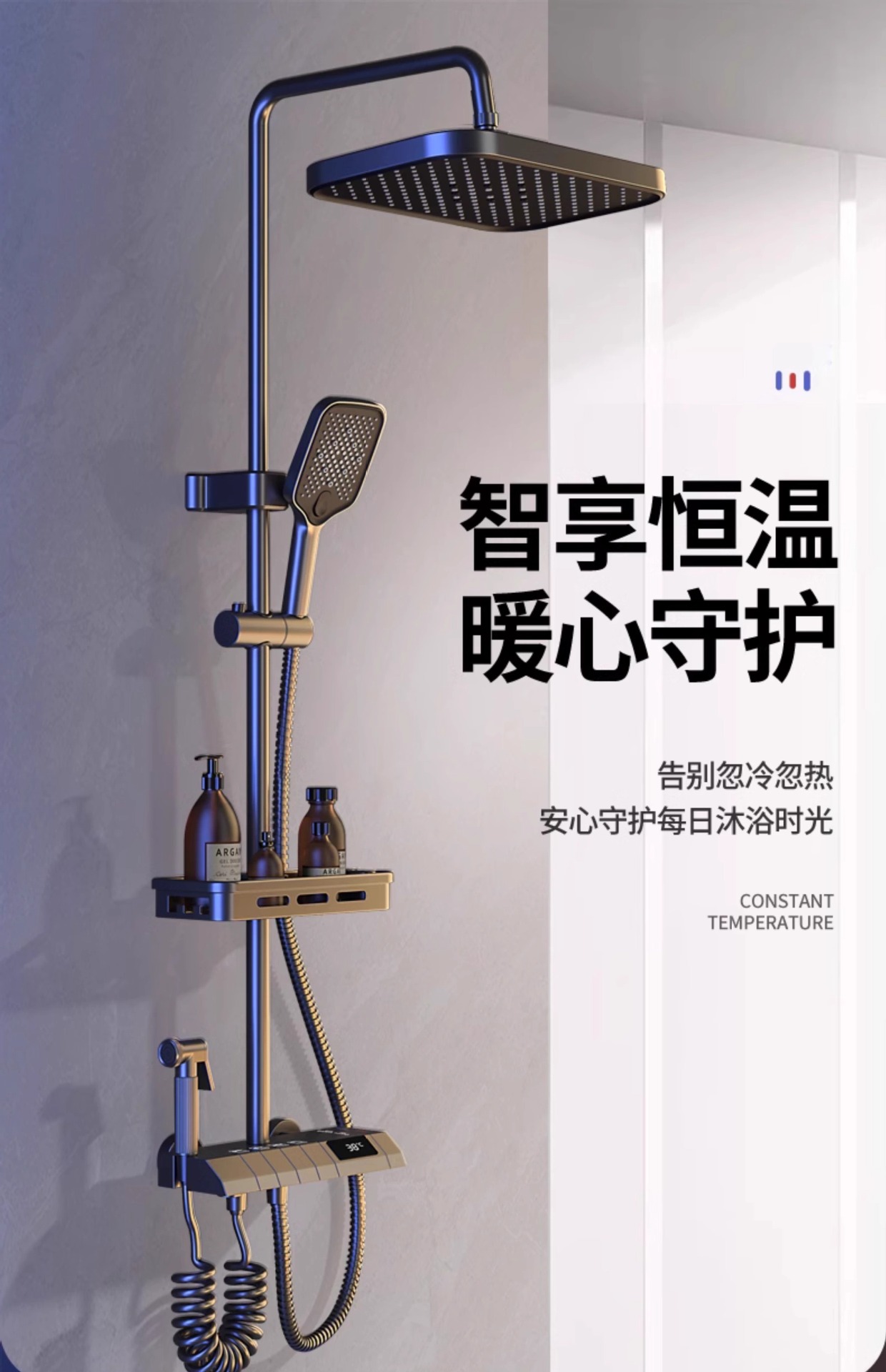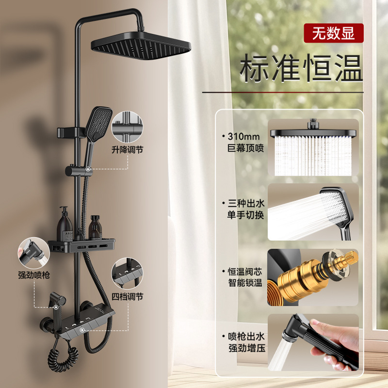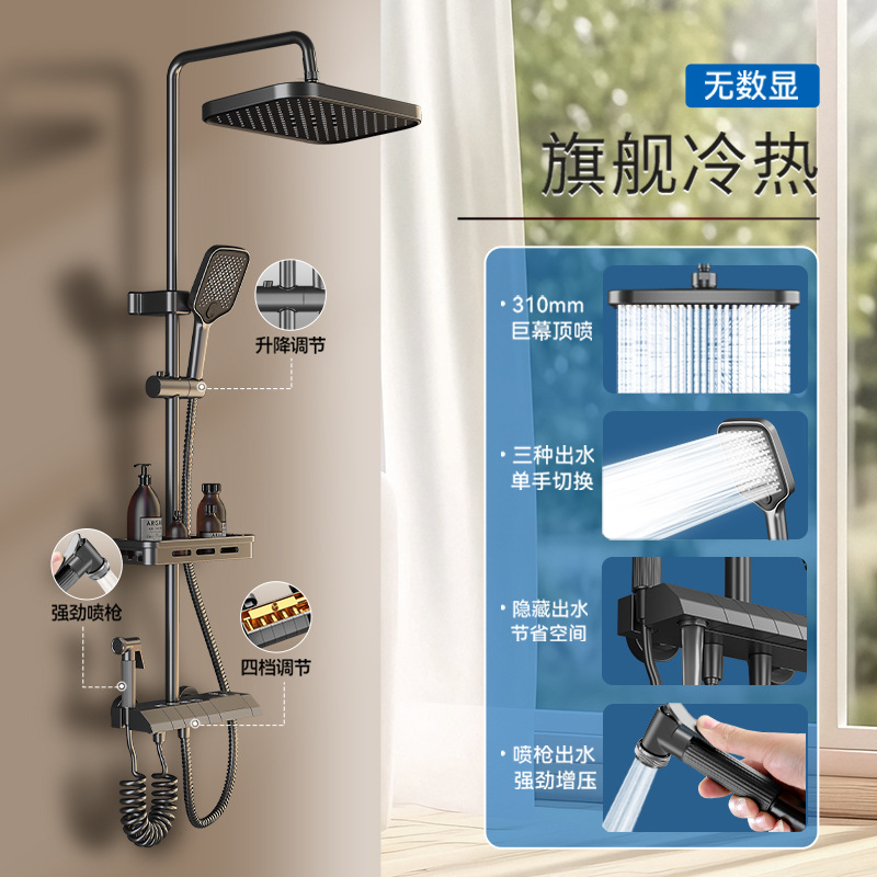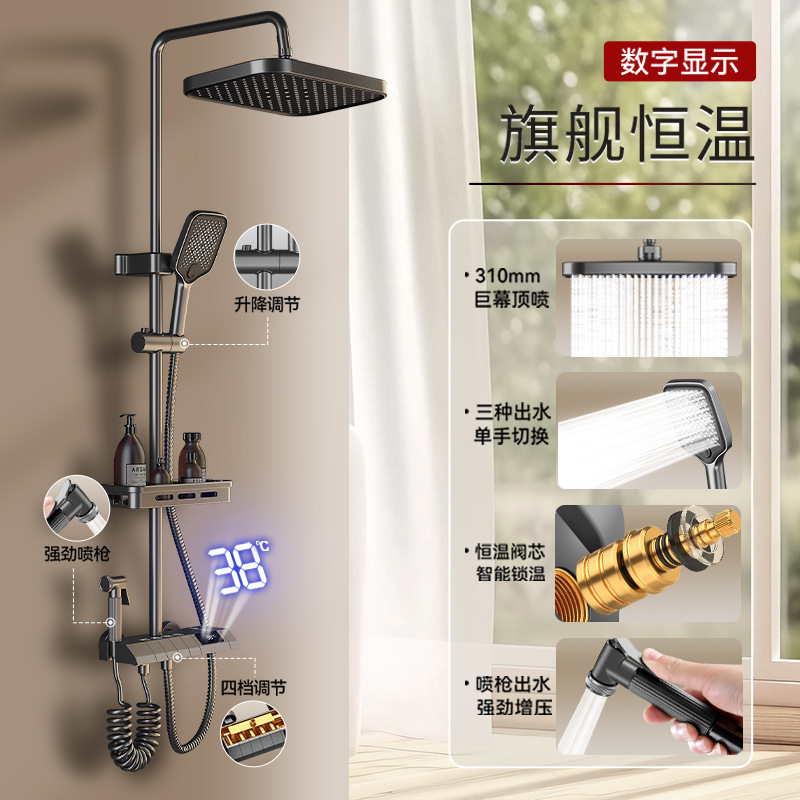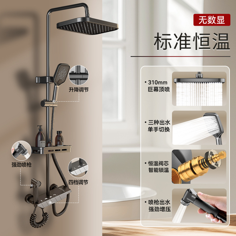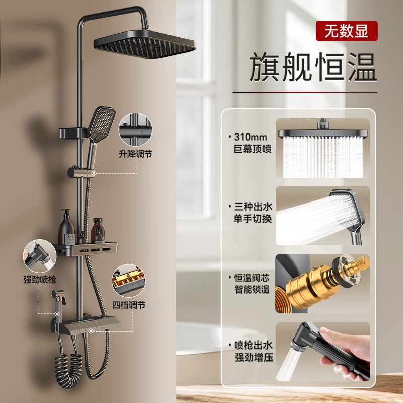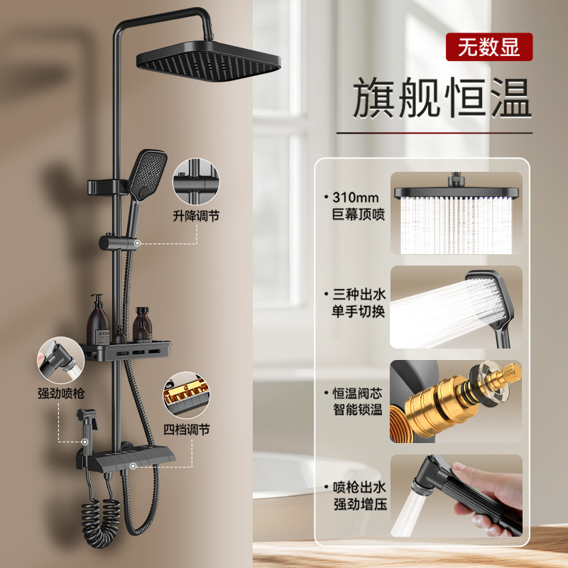 부스터 샤워 세트, 고급 구리 가정용 항온 샤워 노즐, 욕실 숨겨진 레인 샤워 세트 전체 세트스토어 가기