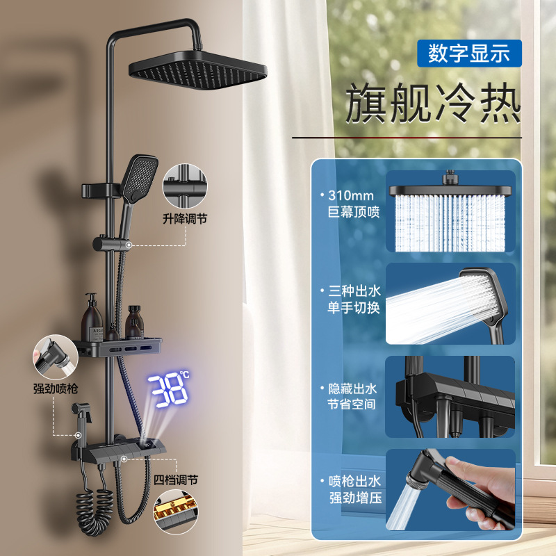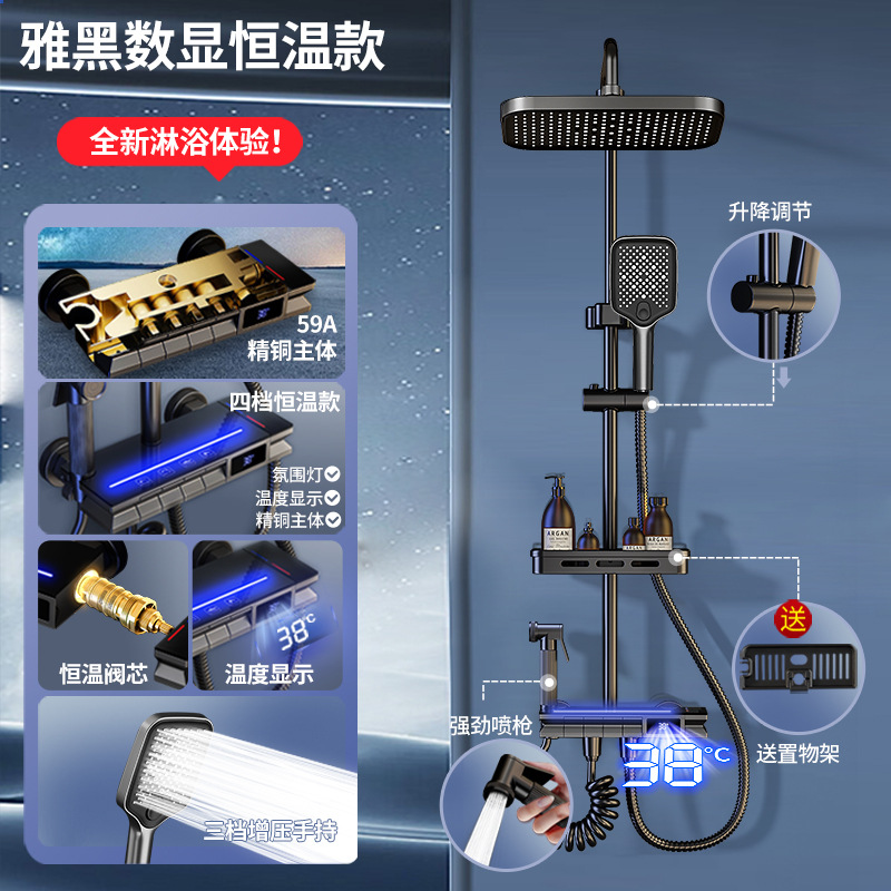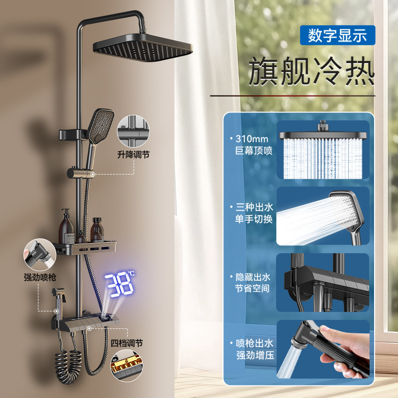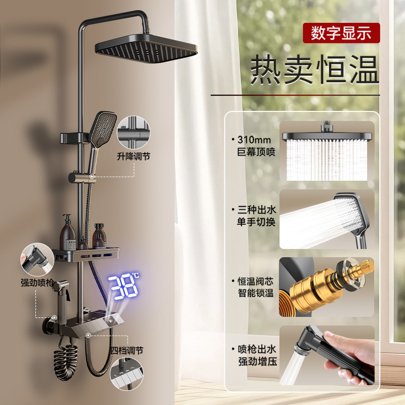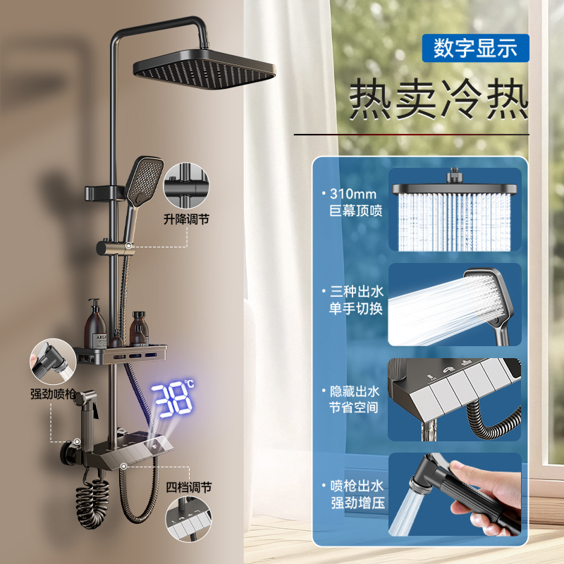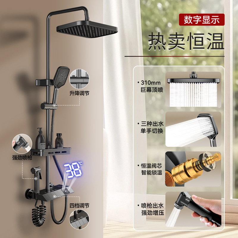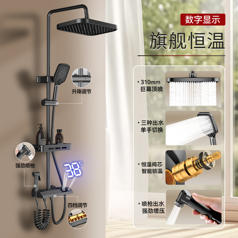 부스터 샤워 세트, 고급 구리 가정용 항온 샤워 노즐, 욕실 숨겨진 레인 샤워 세트 전체 세트스토어 가기