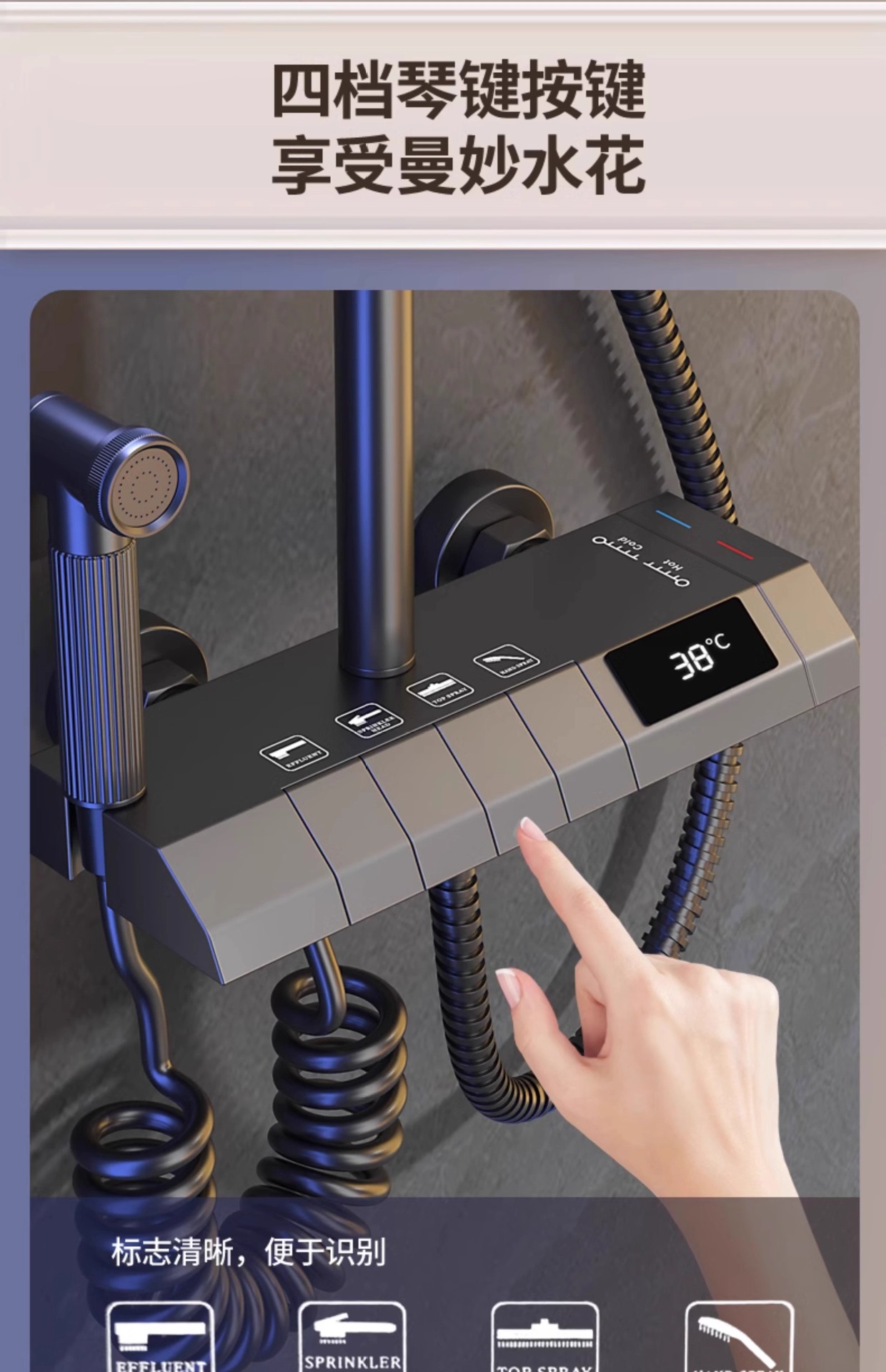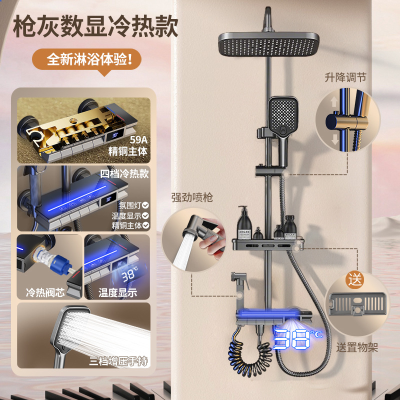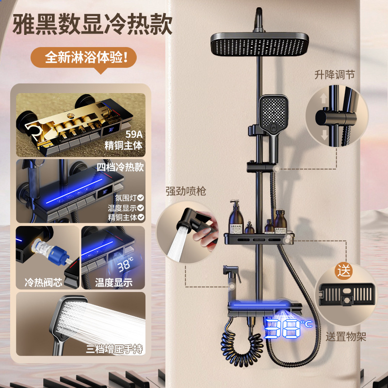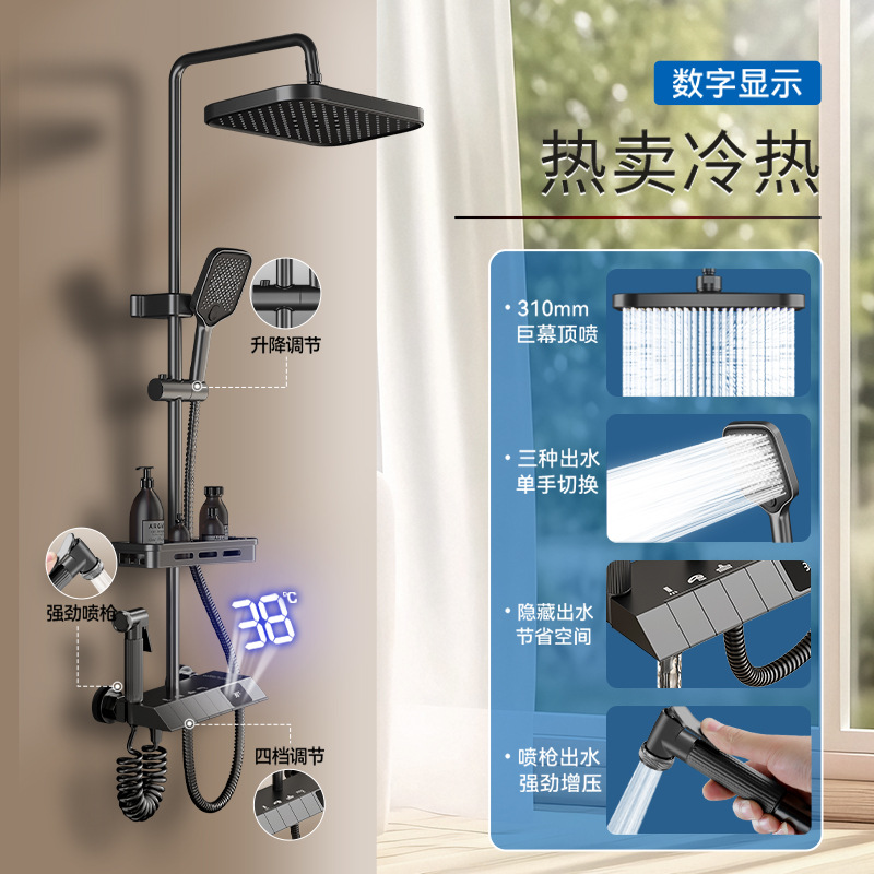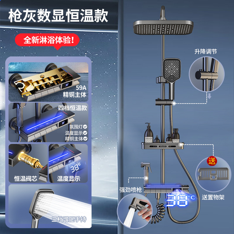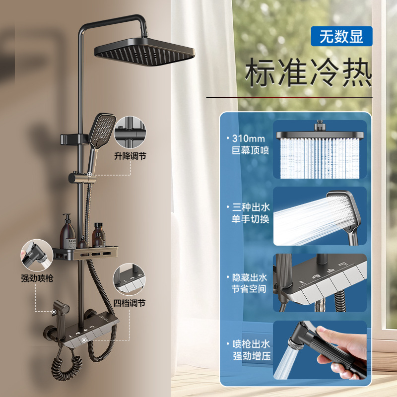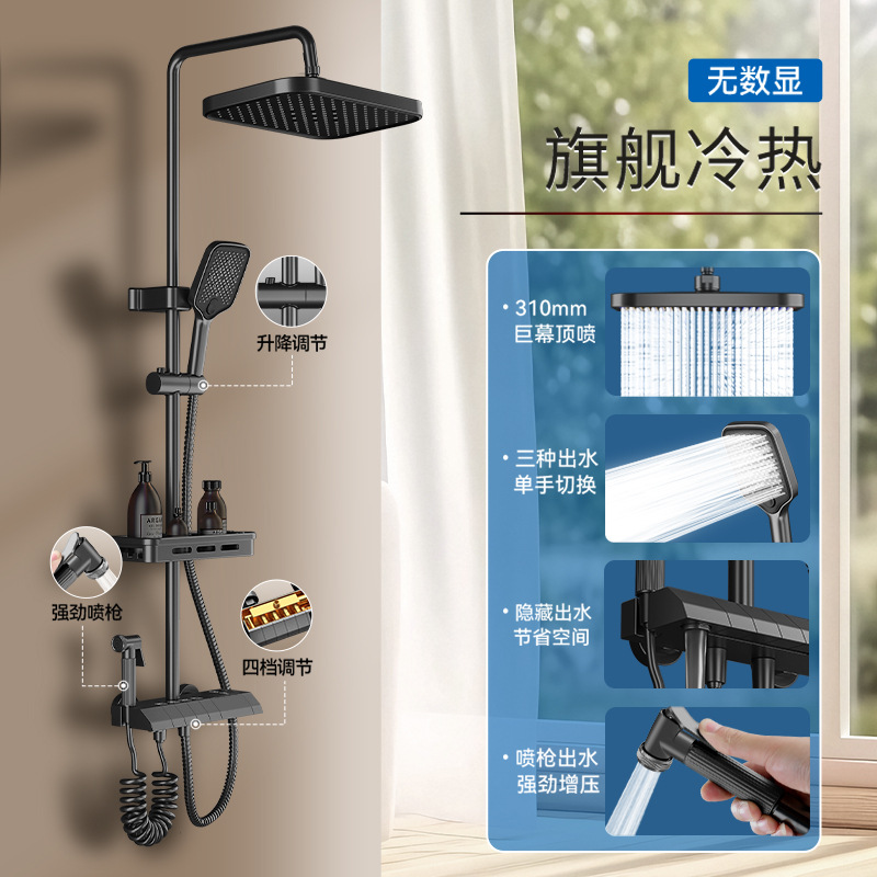부스터 샤워 세트, 고급 구리 가정용 항온 샤워 노즐, 욕실 숨겨진 레인 샤워 세트 전체 세트스토어 가기