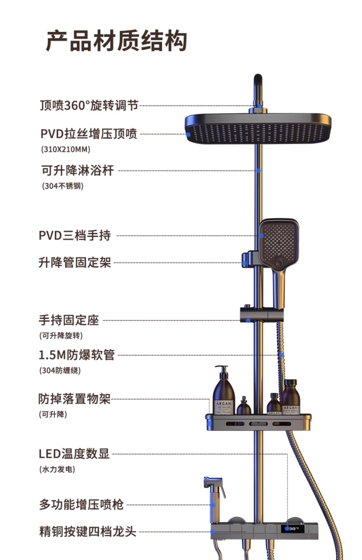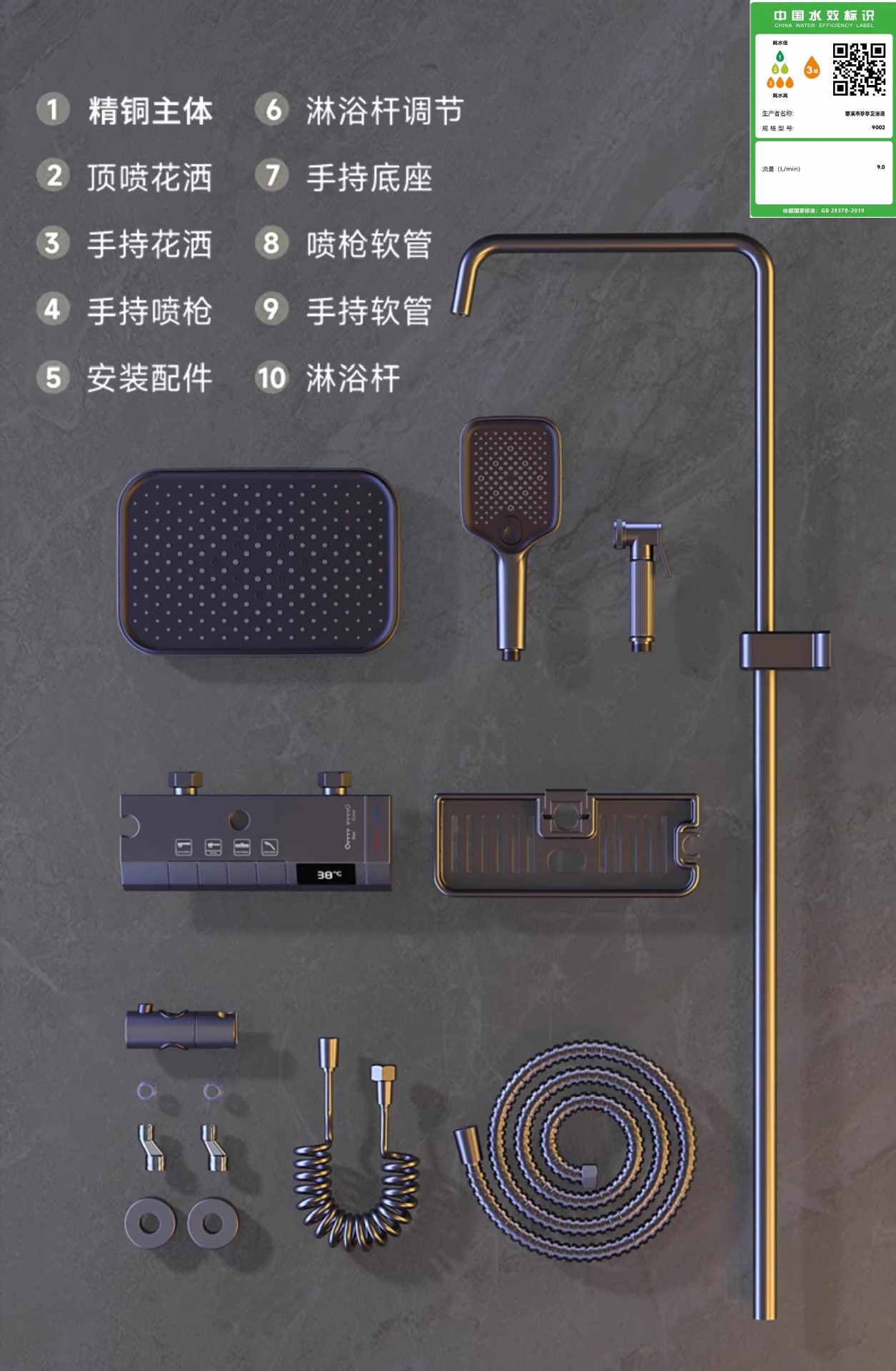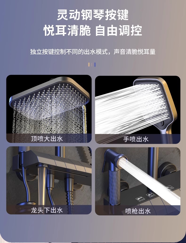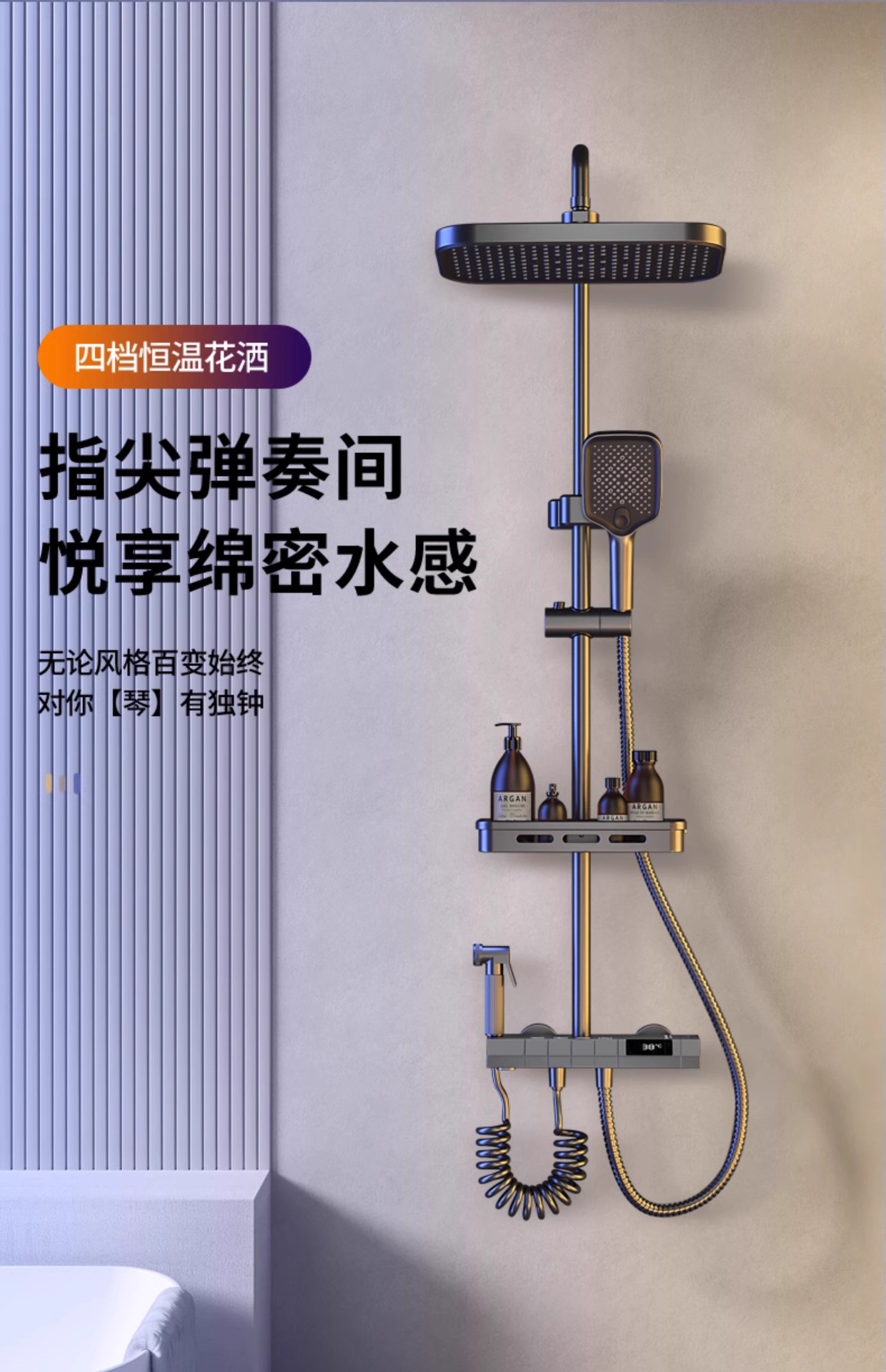 부스터 샤워 세트, 고급 구리 가정용 항온 샤워 노즐, 욕실 숨겨진 레인 샤워 세트 전체 세트스토어 가기