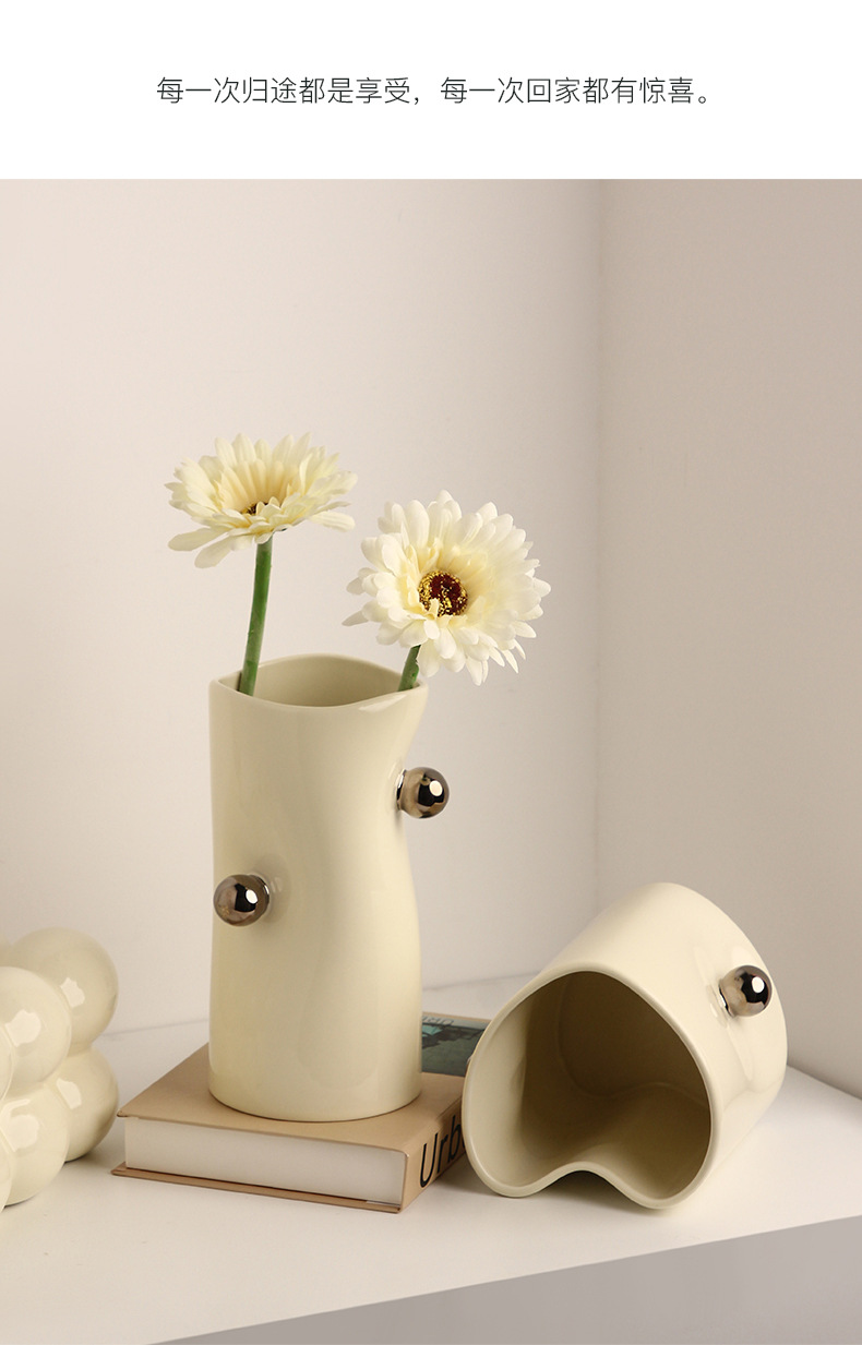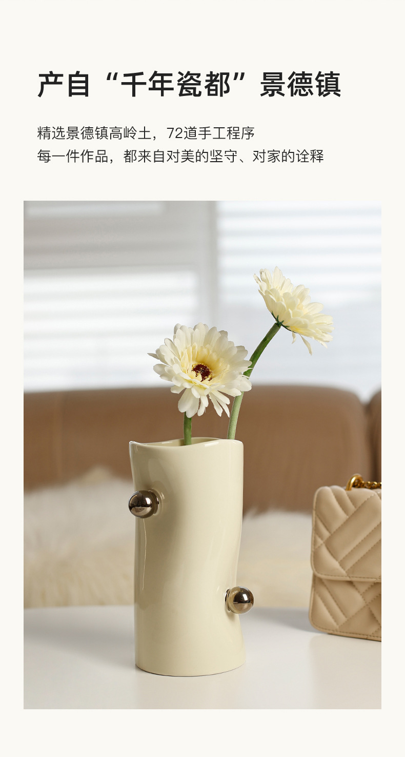 Jingdezhen 꽃병 세라믹 크림 스타일 데스크탑 TV 캐비닛 모델 룸 장식 꽃꽂이 수경 꽃병 사용자 정의스토어 가기