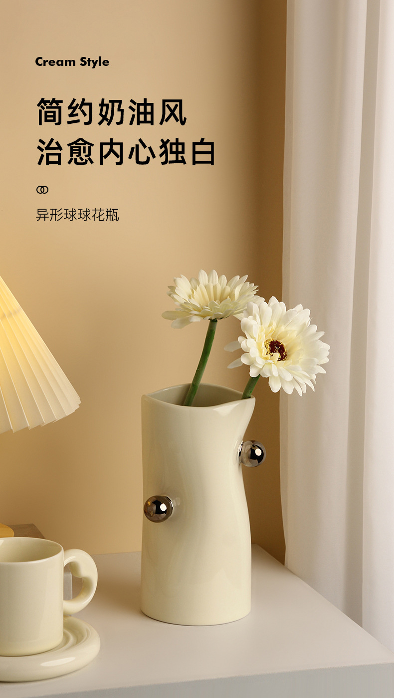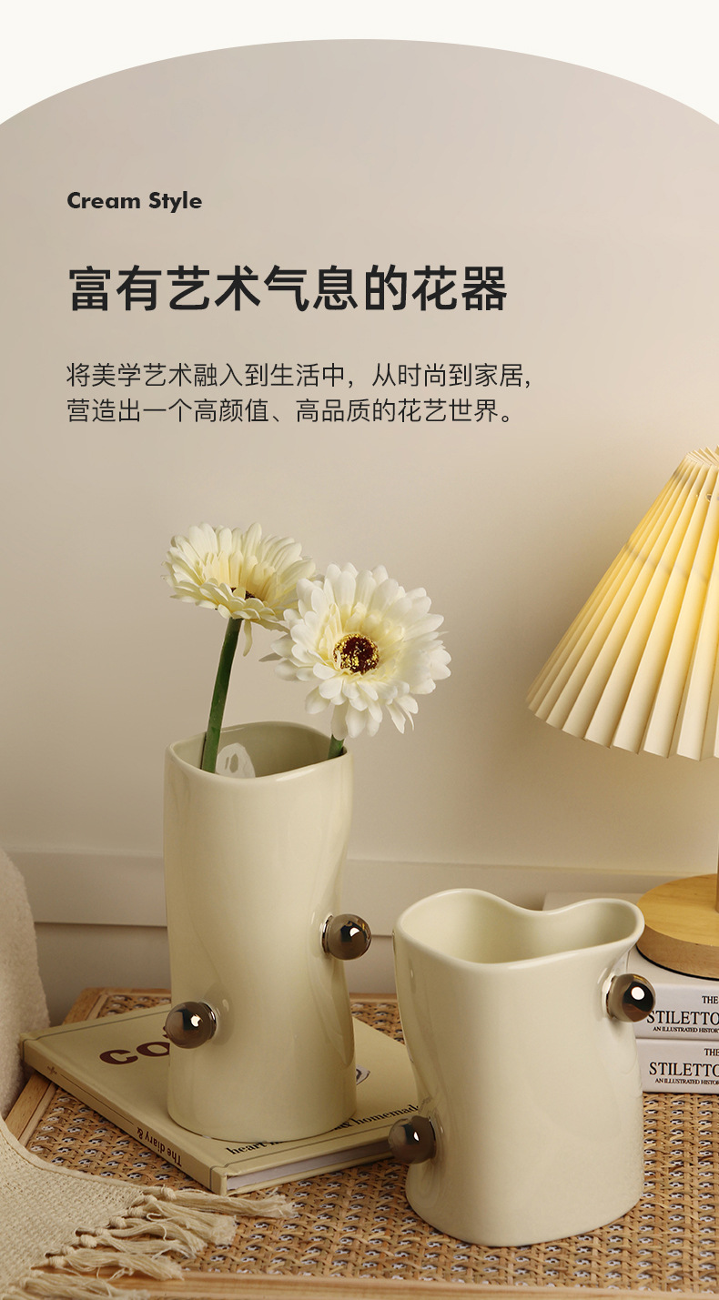 Jingdezhen 꽃병 세라믹 크림 스타일 데스크탑 TV 캐비닛 모델 룸 장식 꽃꽂이 수경 꽃병 사용자 정의