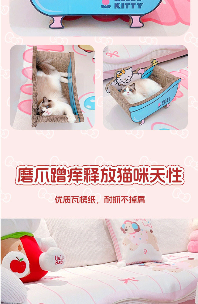 • 헬로키티 욕조 고양이 긁는 포스트 고양이 둥지