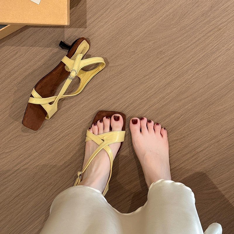 2025년 여름 신상 유럽과 미국의 크로스 스트랩 오픈 토 하이힐 여성 샌들, 패셔너블하고 심플한 하이힐