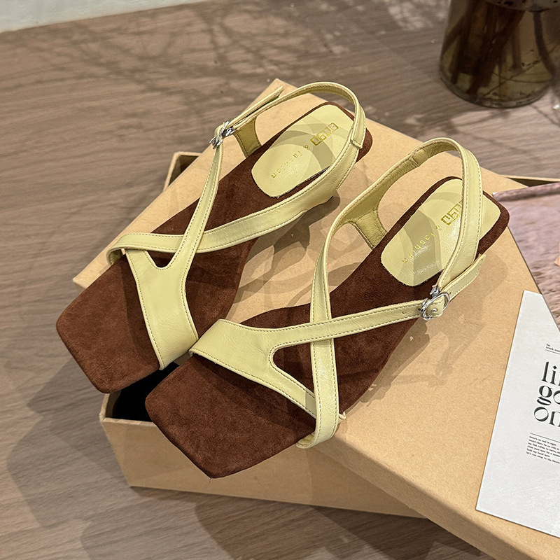 2025년 여름 신상 유럽과 미국의 크로스 스트랩 오픈 토 하이힐 여성 샌들, 패셔너블하고 심플한 하이힐스토어 가기