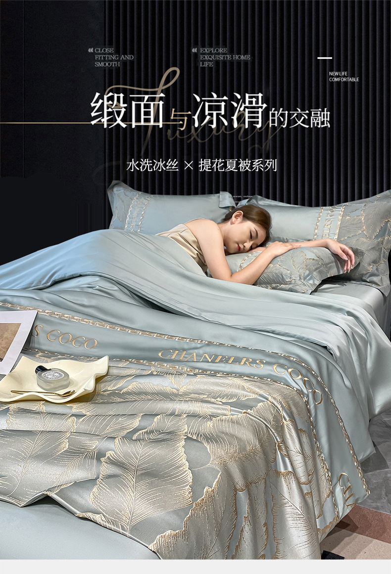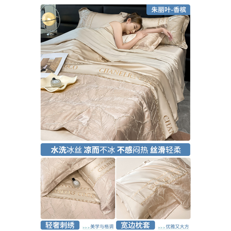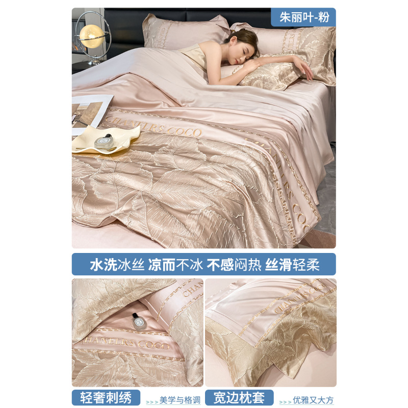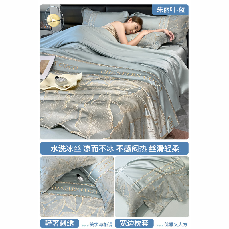 여름 시원한 얼음 실크 여름 이불 에어컨 이불 4피스 싱글 및 더블 워시 실크 여름 시원한 이불 기계 세탁 가능한 얇은 이불스토어 가기
