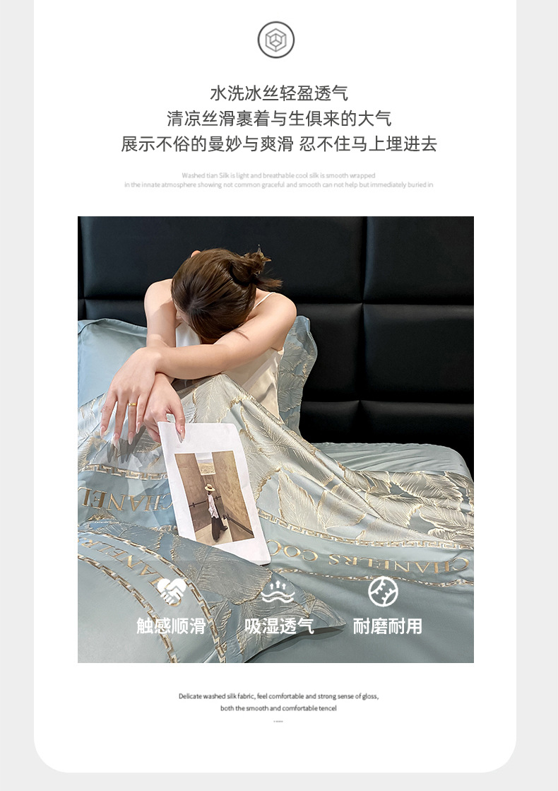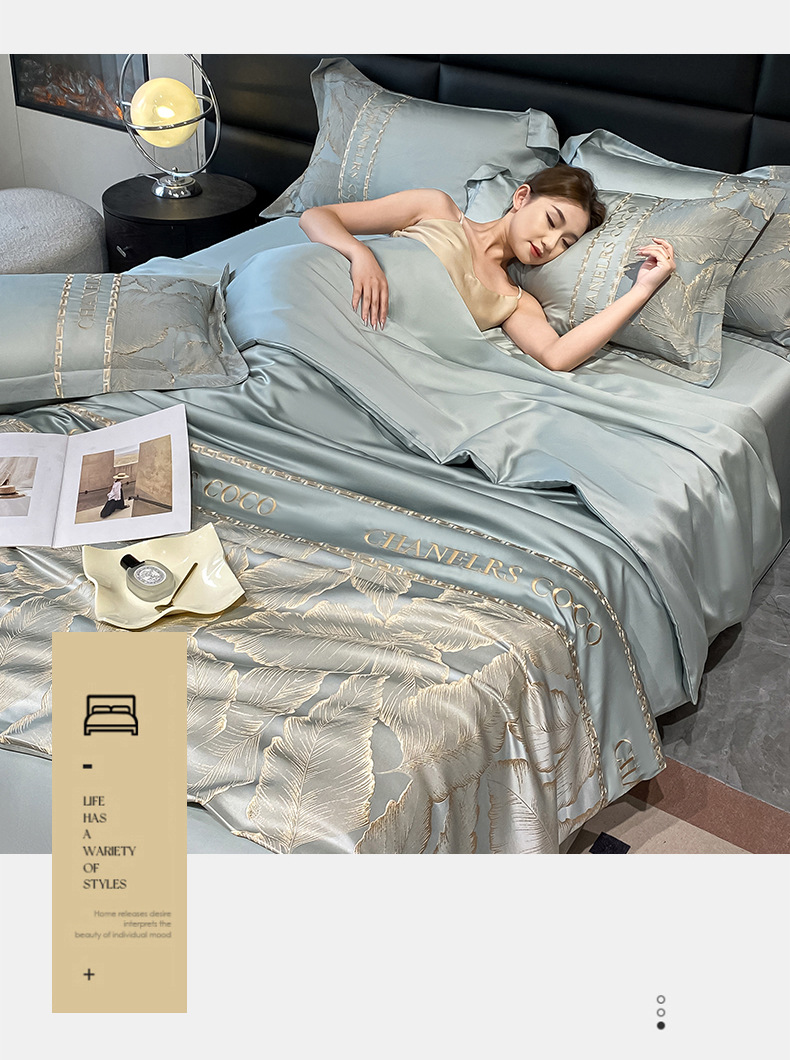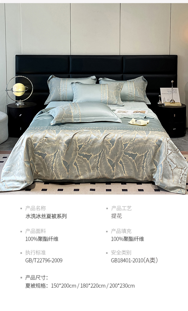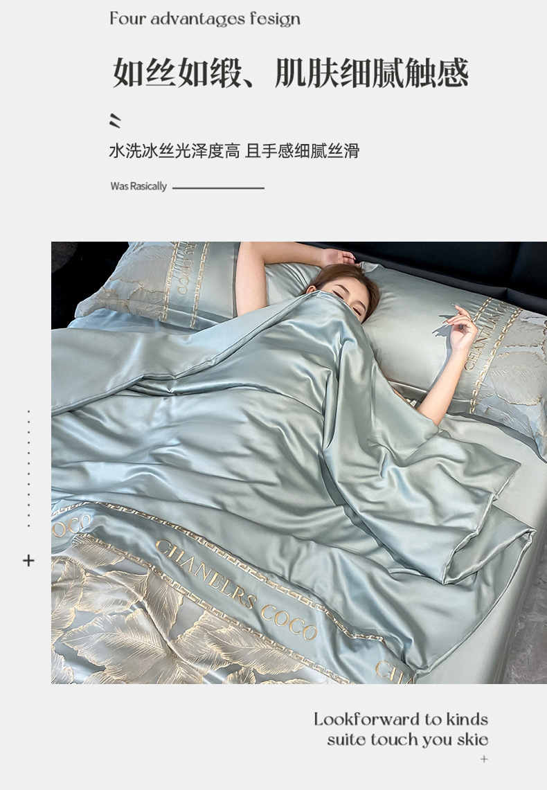 여름 시원한 얼음 실크 여름 이불 에어컨 이불 4피스 싱글 및 더블 워시 실크 여름 시원한 이불 기계 세탁 가능한 얇은 이불스토어 가기