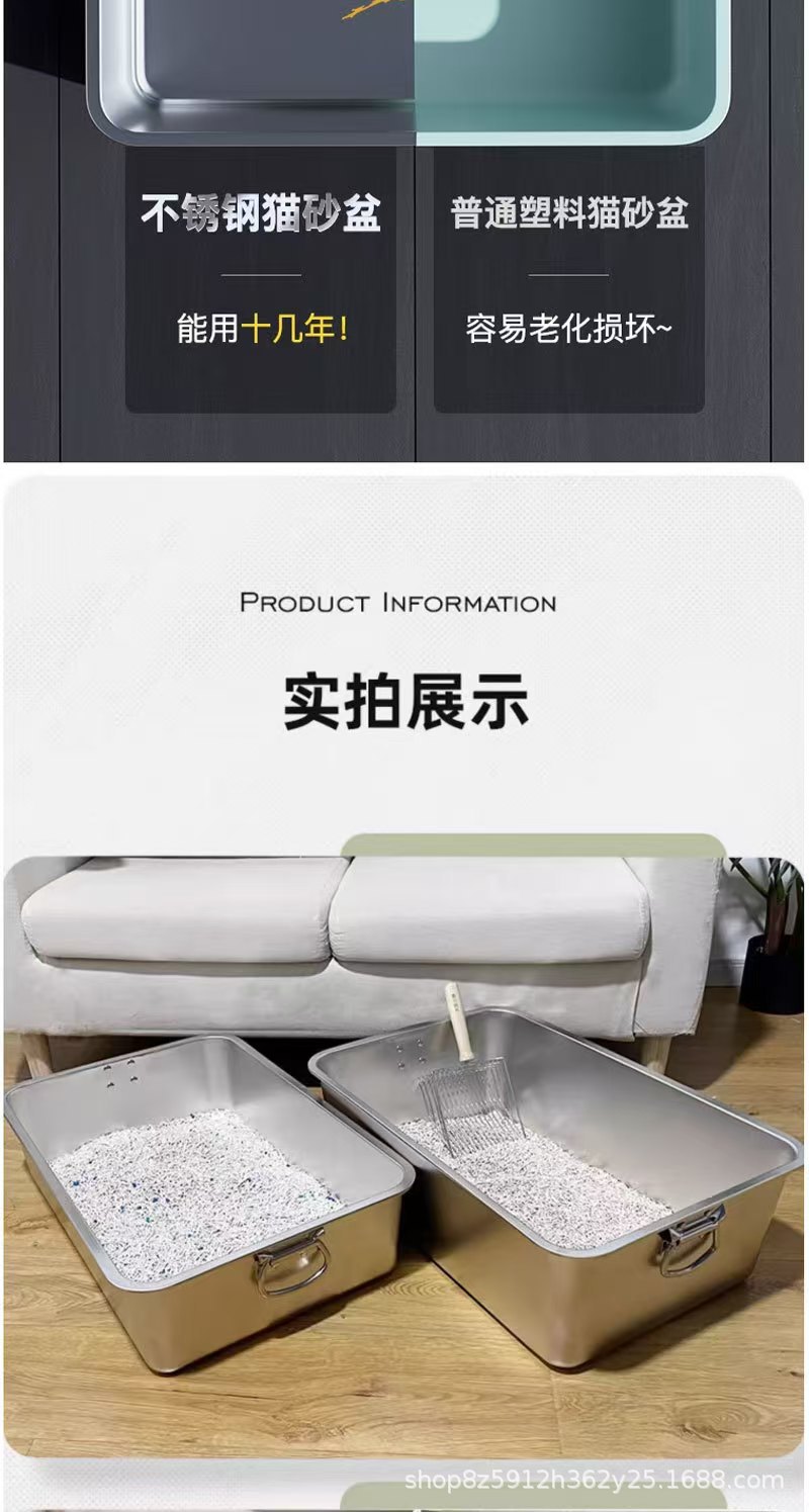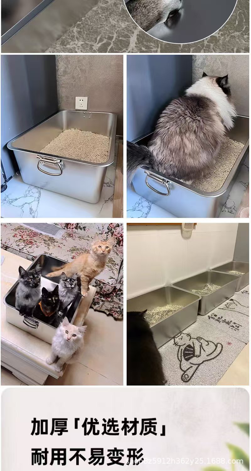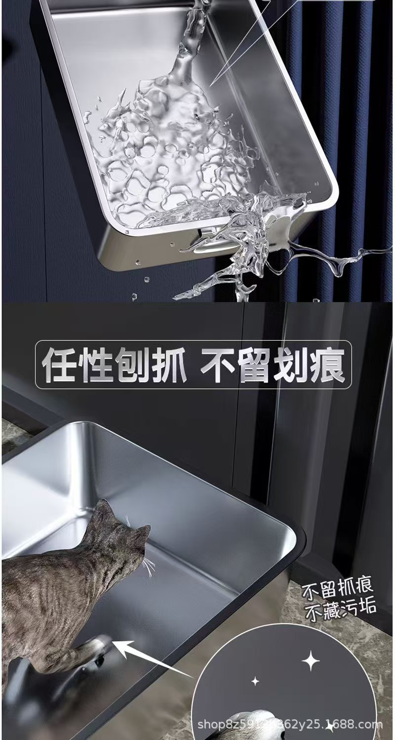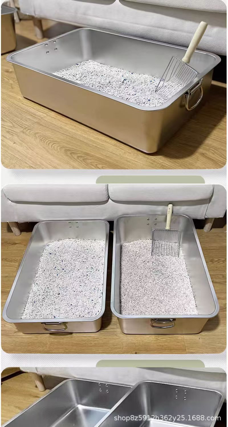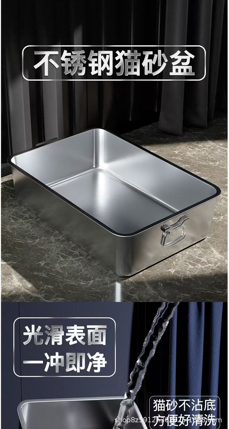 손잡이가 있는 고양이용 스테인레스 스틸 고양이 쓰레기통, 반밀폐형, 물 튀김 방지, 깊은 직사각형 애완동물 변기스토어 가기