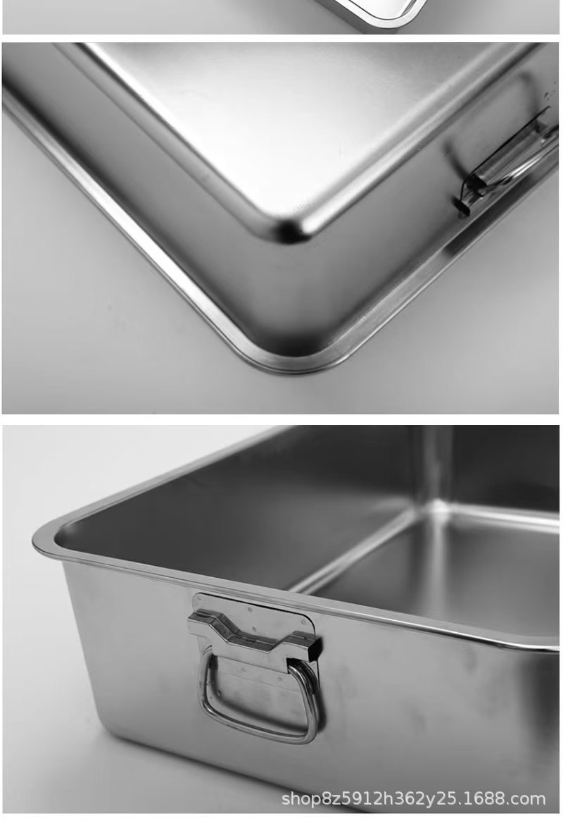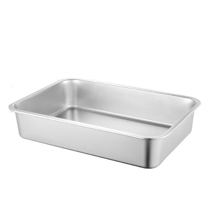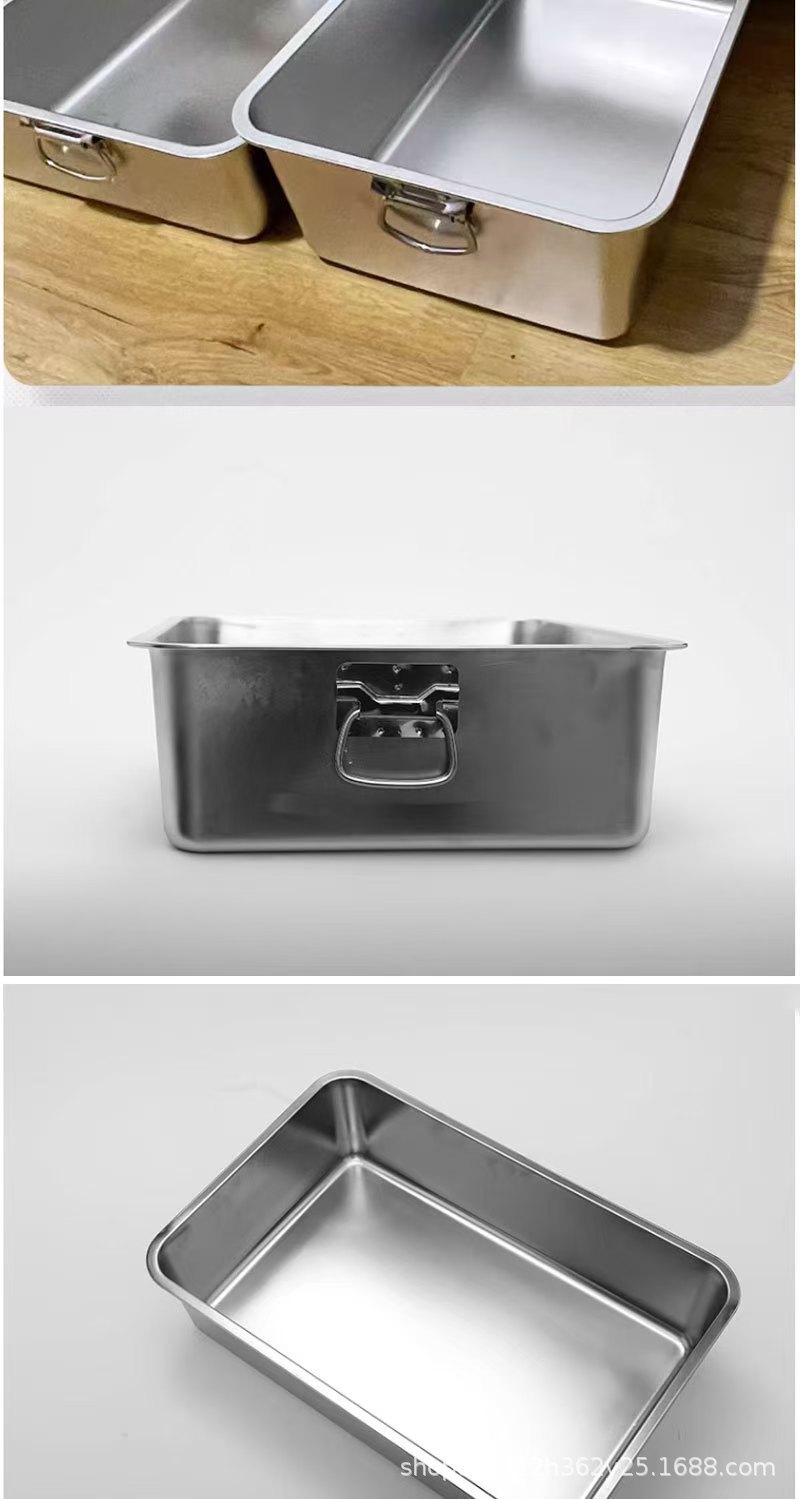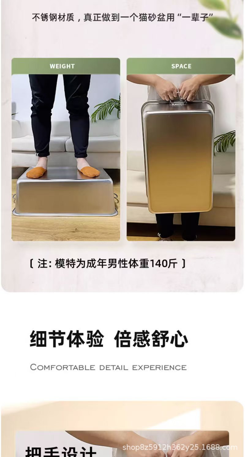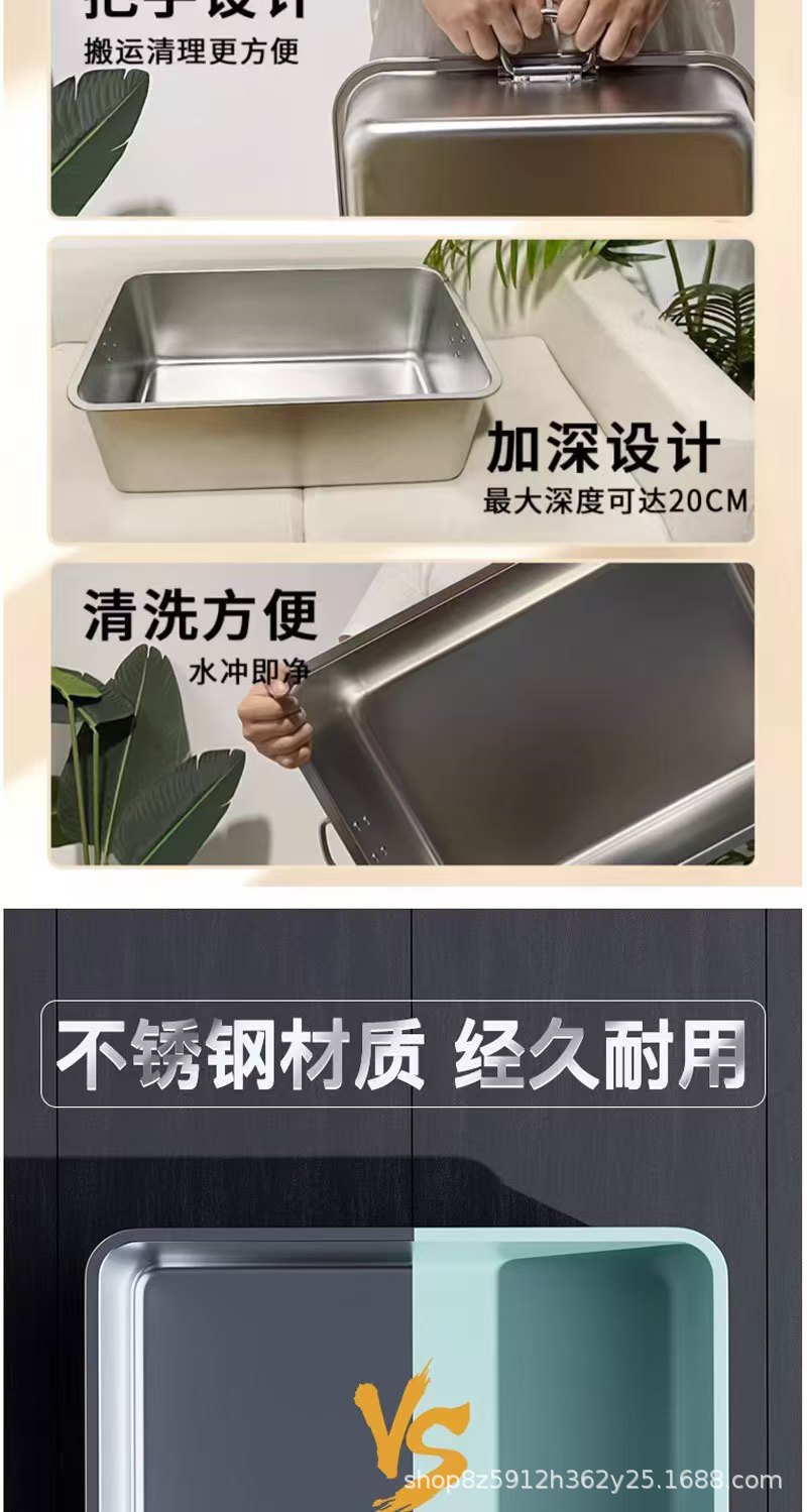 손잡이가 있는 고양이용 스테인레스 스틸 고양이 쓰레기통, 반밀폐형, 물 튀김 방지, 깊은 직사각형 애완동물 변기스토어 가기