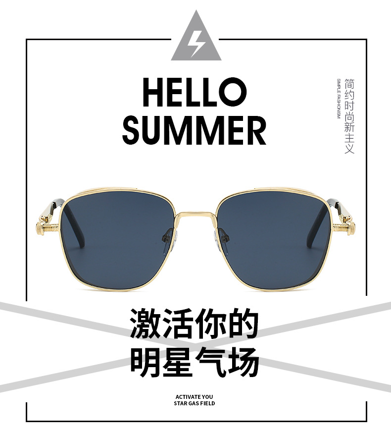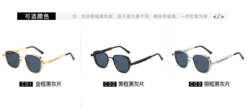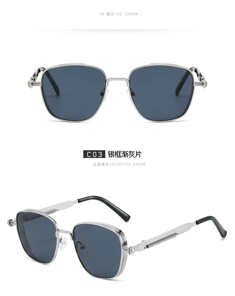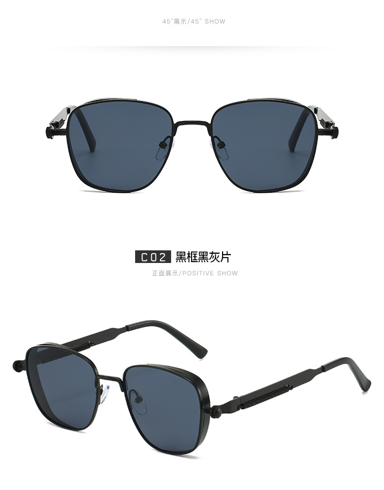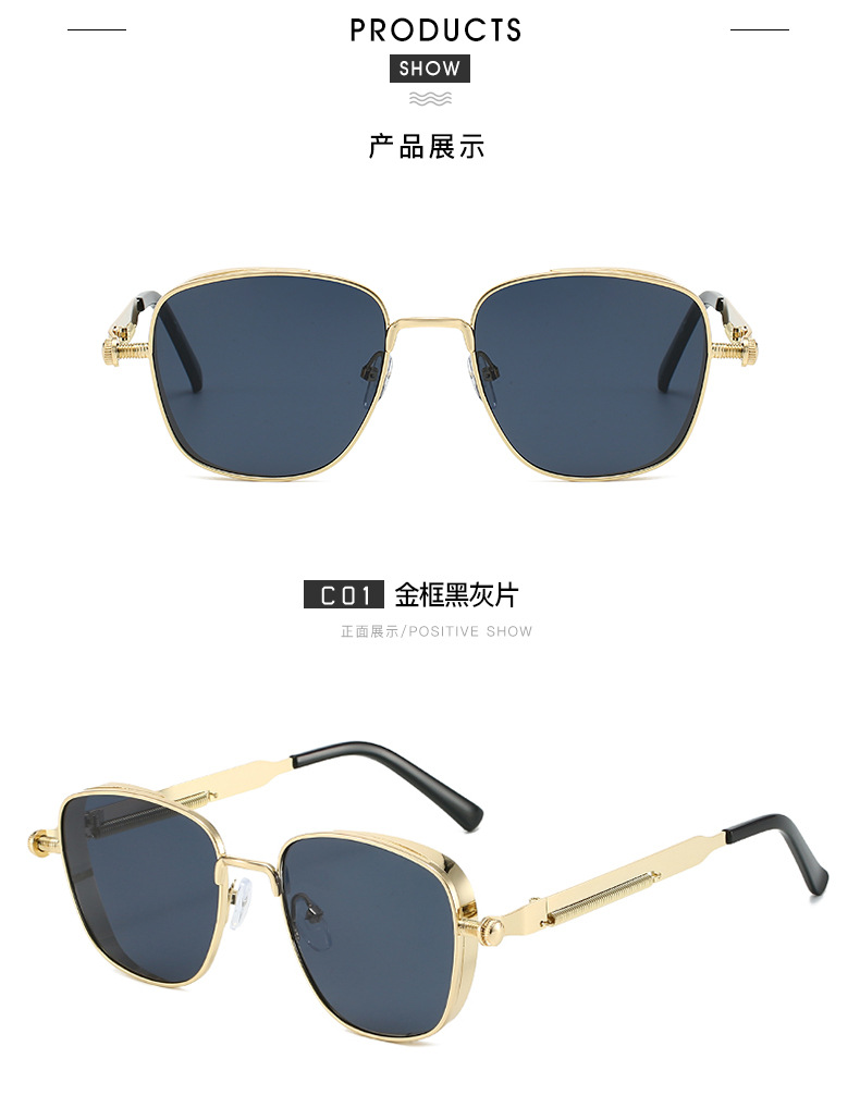유럽과 미국의 새로운 복고풍 사각형 프레임 펑크 메탈 선글라스, 심플하고 분위기 있는 다용도 선글라스, 근시 안경과 매치 가능스토어 가기
