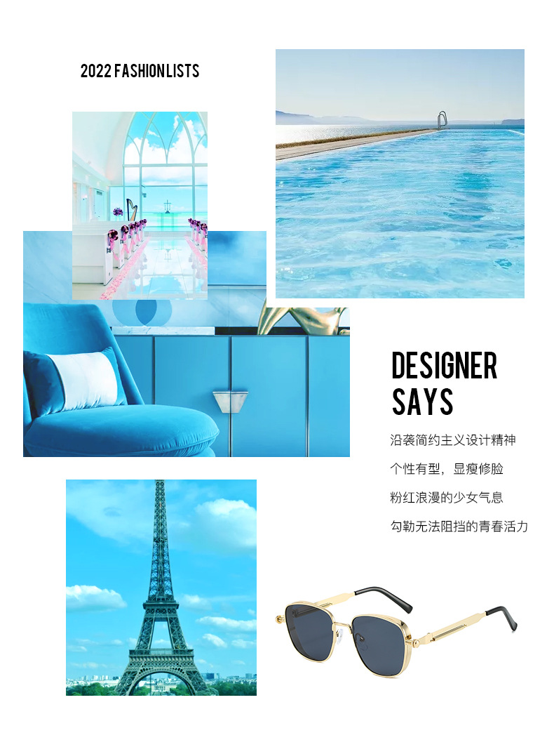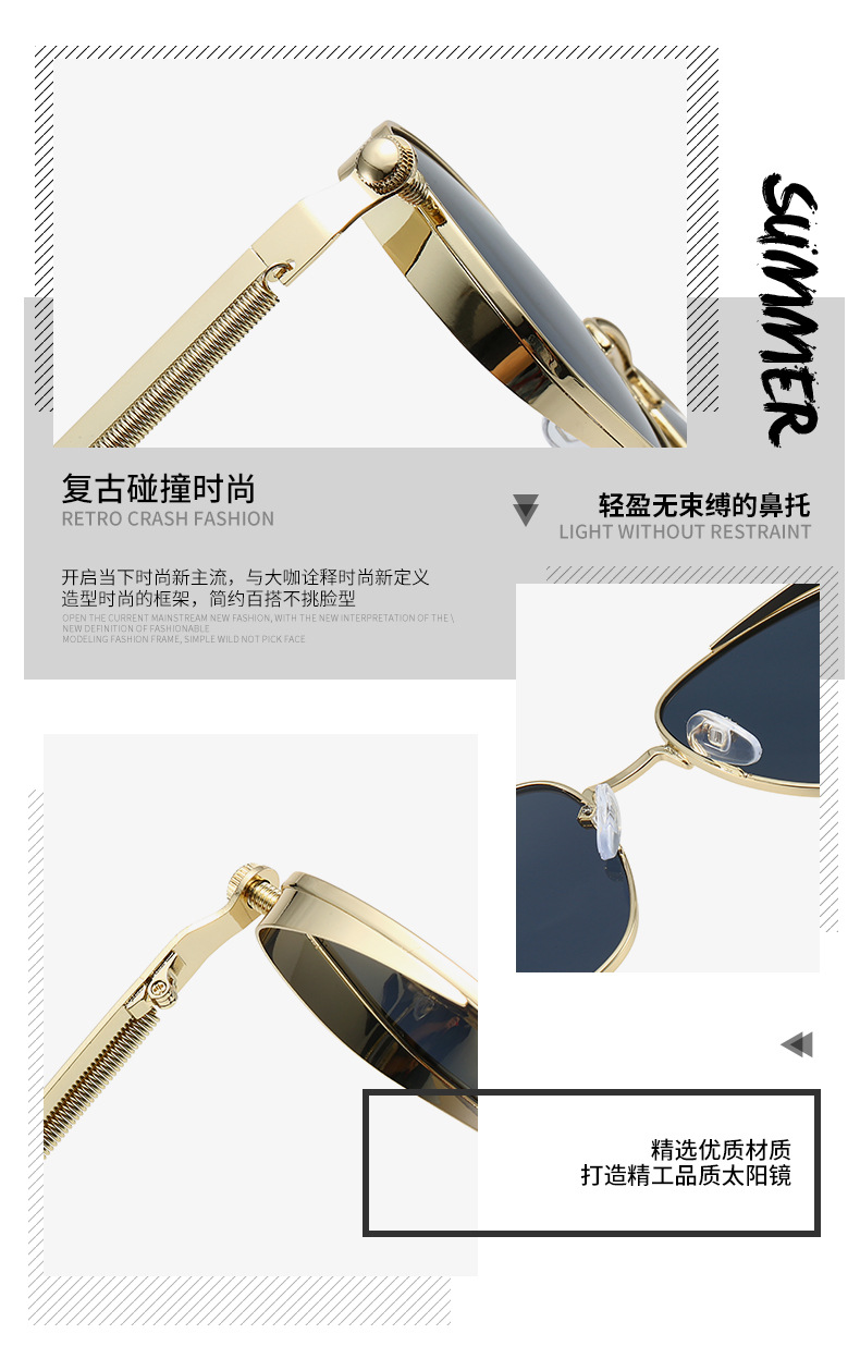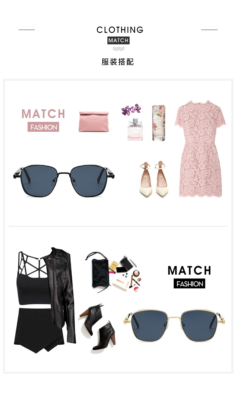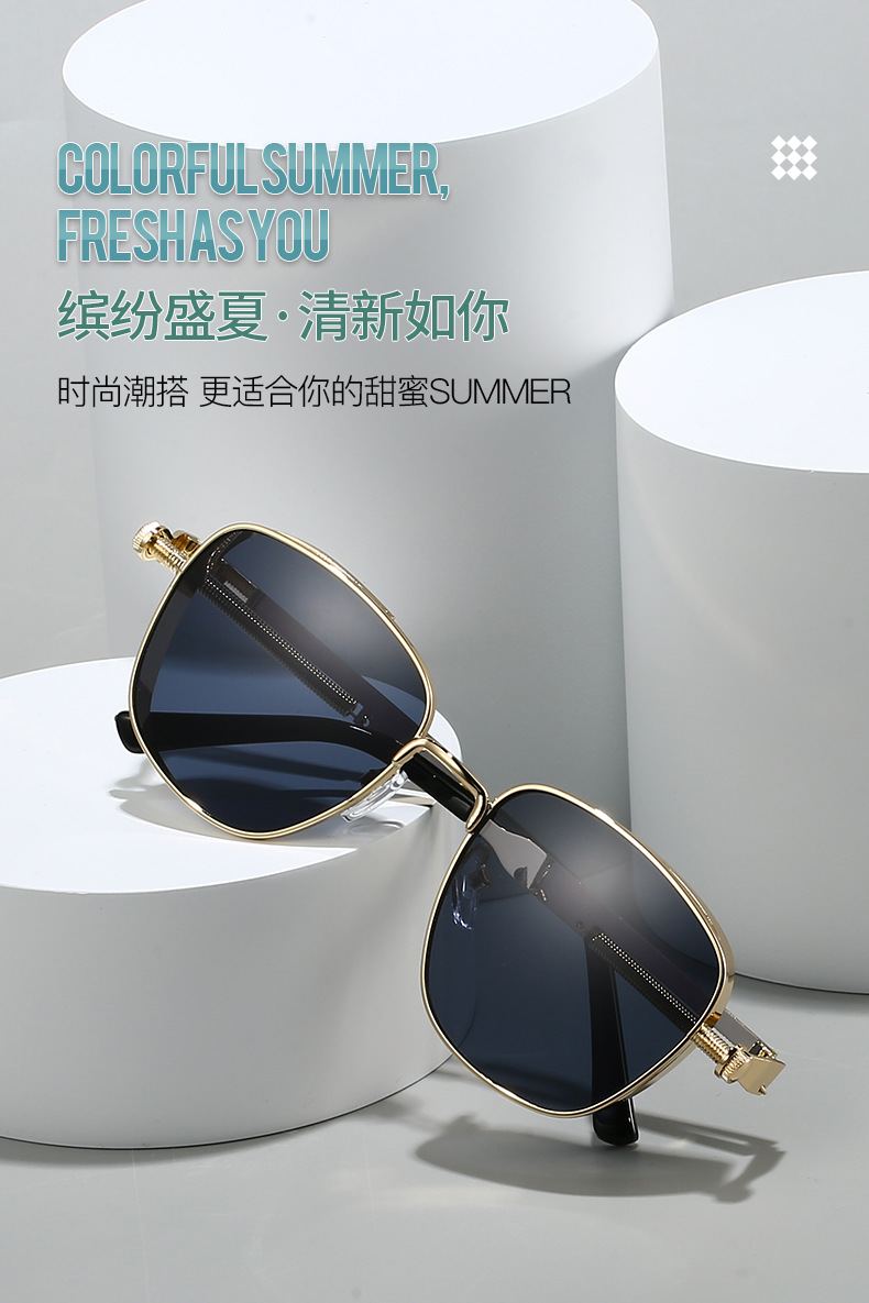 유럽과 미국의 새로운 복고풍 사각형 프레임 펑크 메탈 선글라스, 심플하고 분위기 있는 다용도 선글라스, 근시 안경과 매치 가능스토어 가기