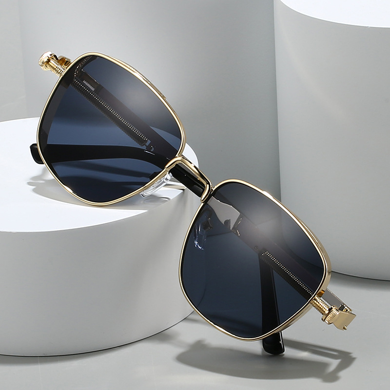 유럽과 미국의 새로운 복고풍 사각형 프레임 펑크 메탈 선글라스, 심플하고 분위기 있는 다용도 선글라스, 근시 안경과 매치 가능