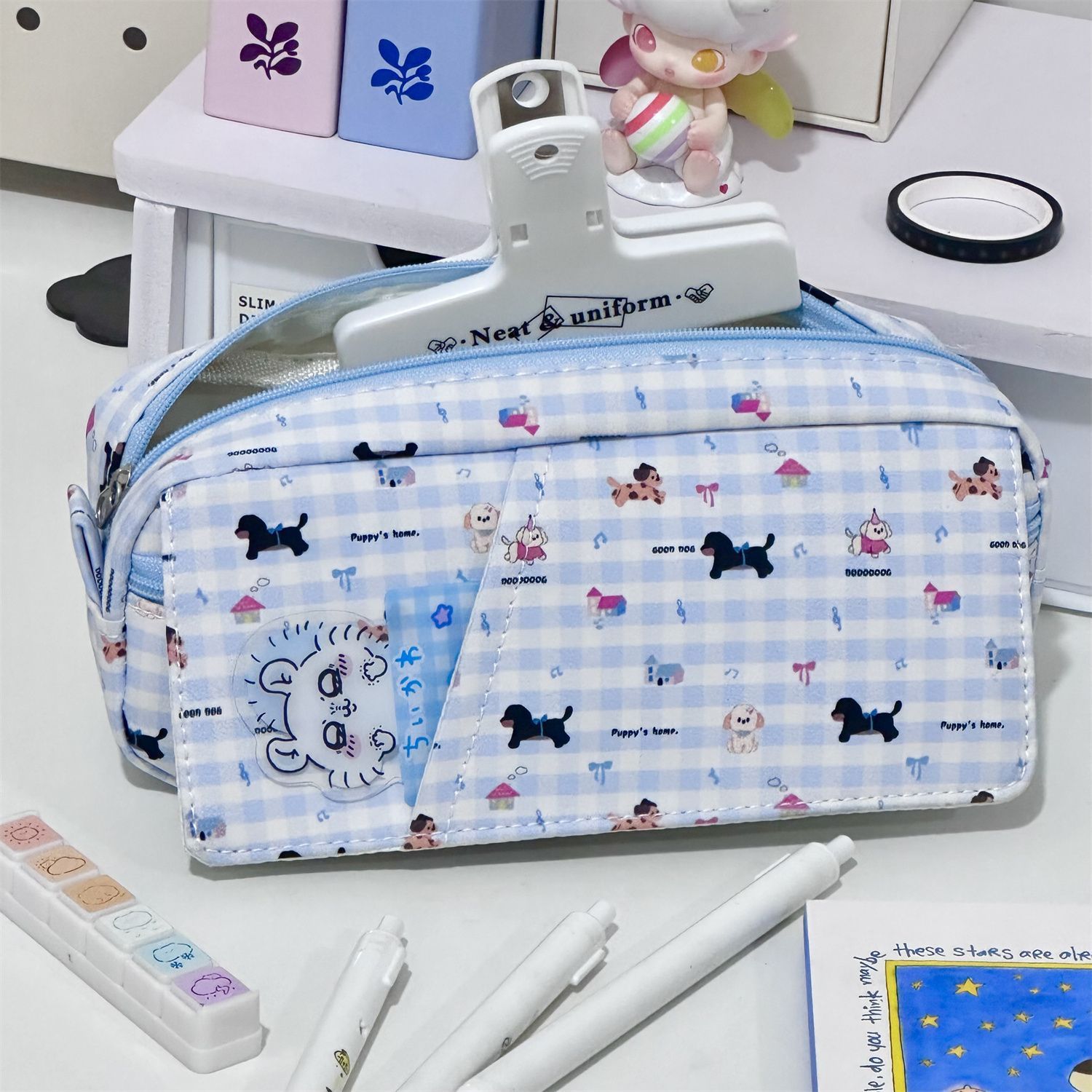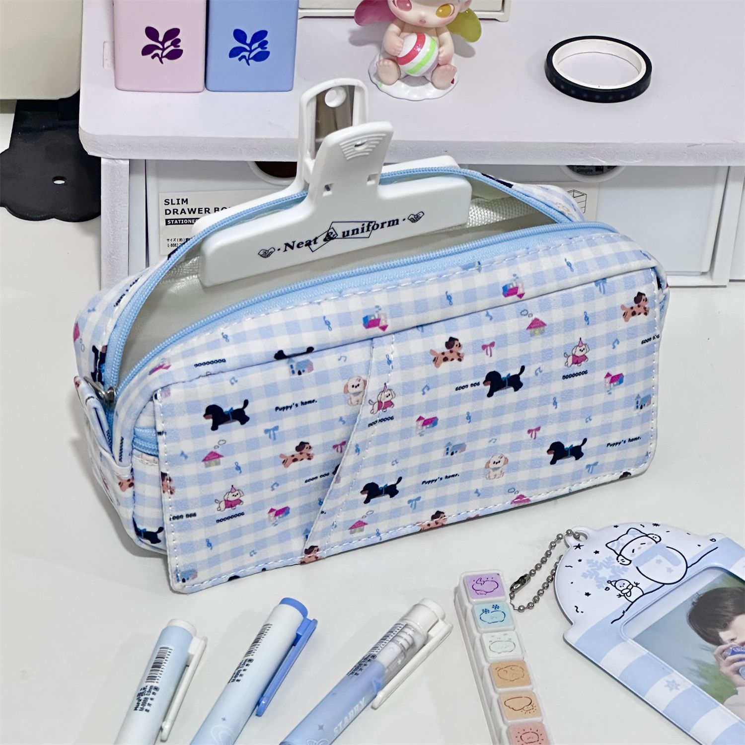 可爱JK格小熊翻盖文具袋ins学生高颜值印花大容量文具收纳袋笔袋