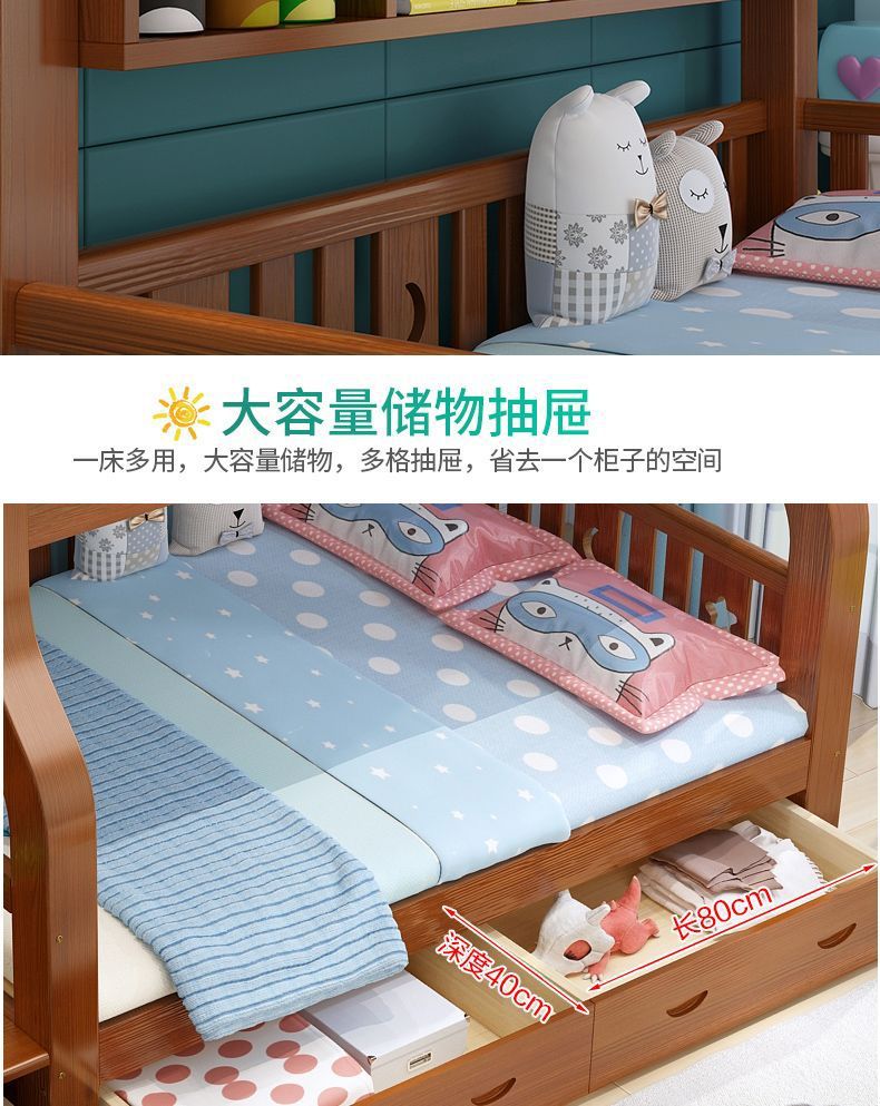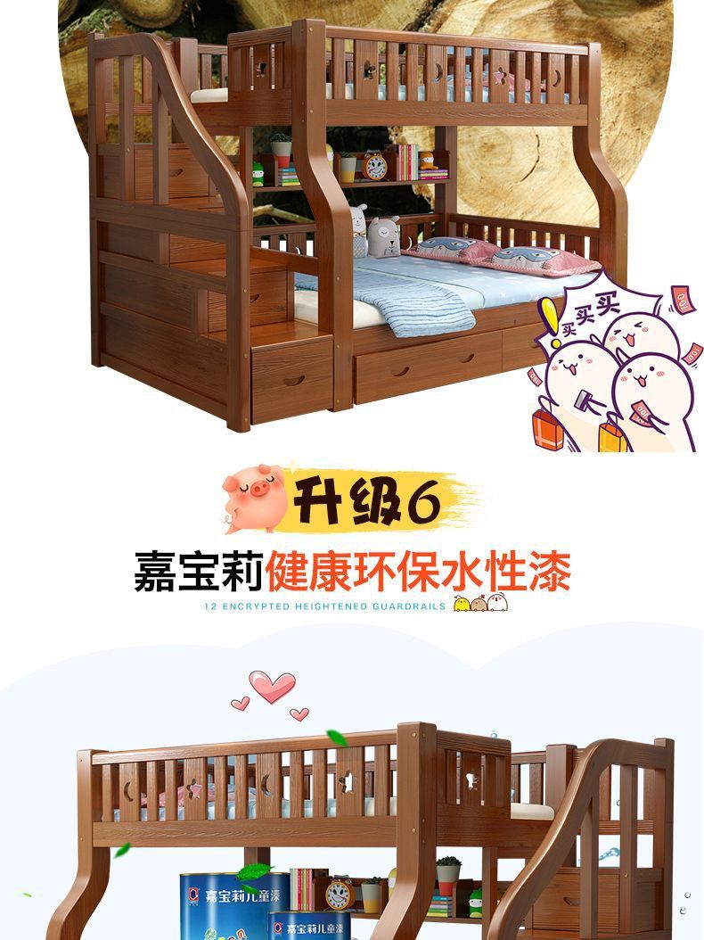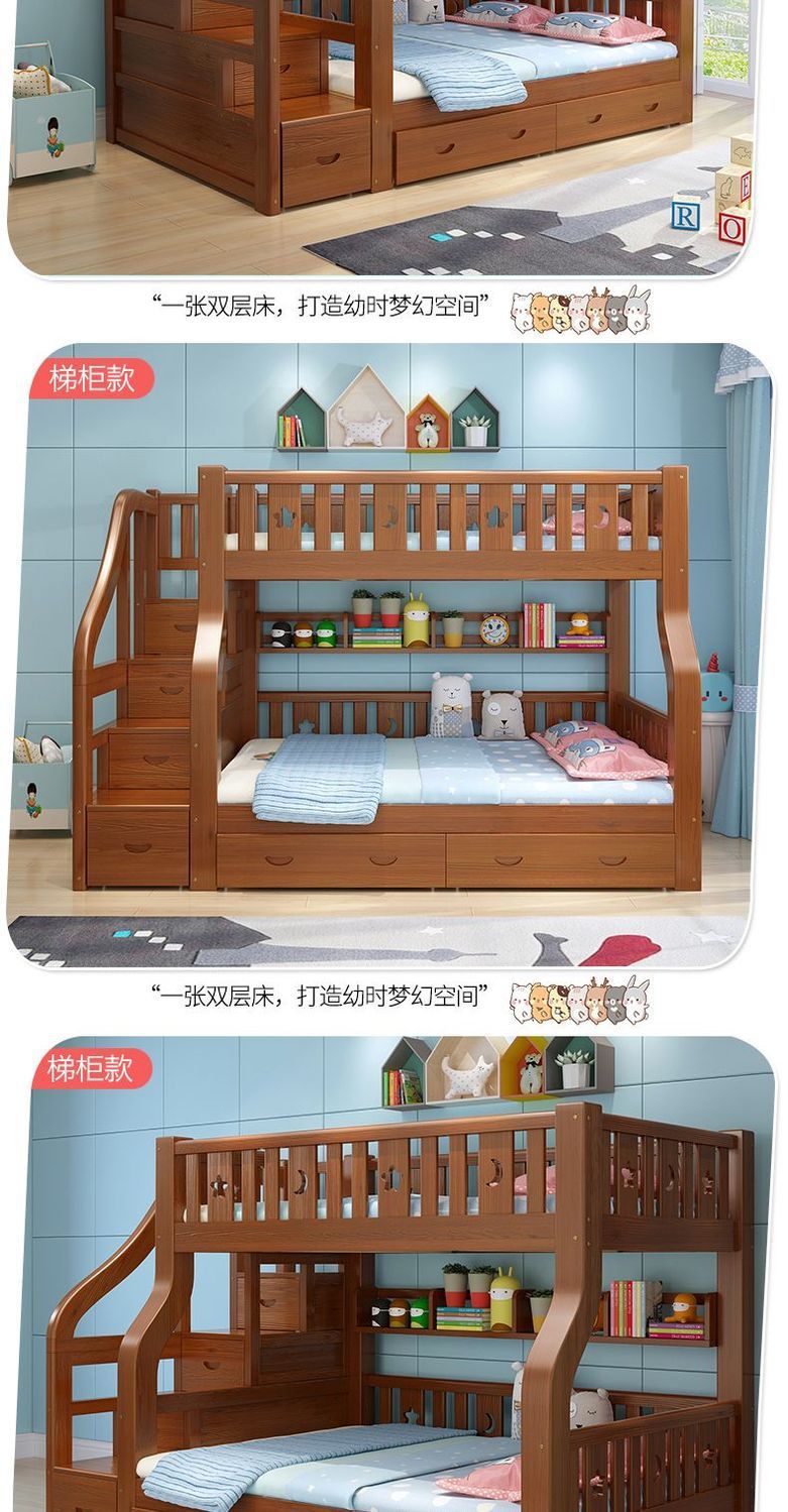 두꺼운 원목 어린이 이층침대, 다기능 이층침대, 2층 성인용 높낮이 이층침대