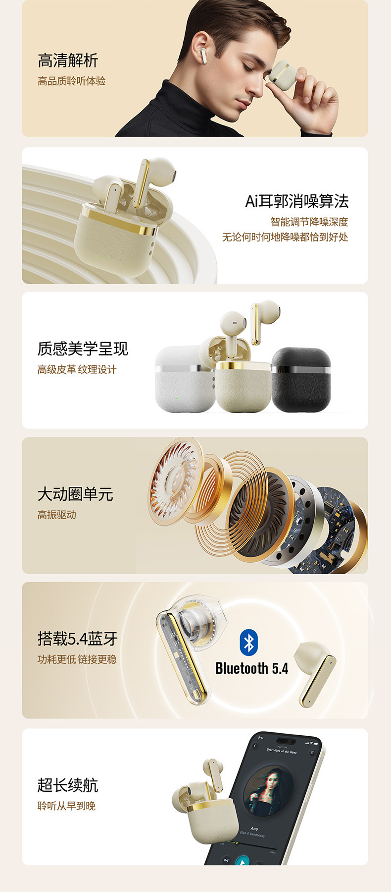 • Q52 스킨 컬러 [가죽 패턴 진정한 무선 블루투스 헤드셋]