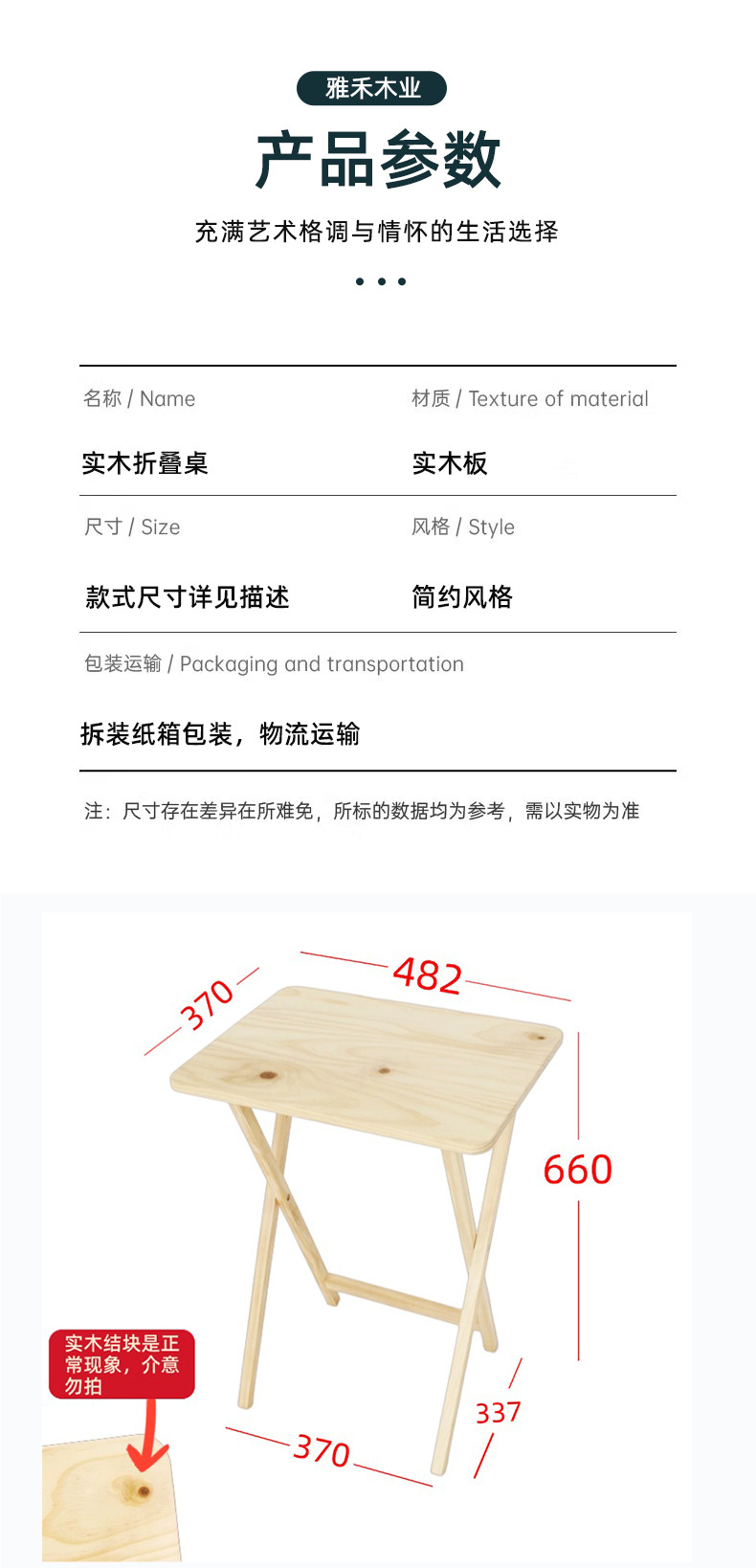 국경 원래 생태 솔리드 우드 폴딩 테이블 야외 가정 식탁 직사각형 접는 사각형 테이블 간단한 식탁 사이드 테이블스토어 가기