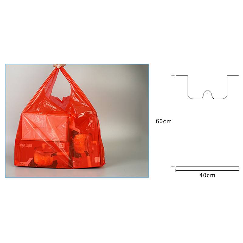 빨간색 플라스틱 조끼 가방 슈퍼마켓 상점 쇼핑 시장 휴대용 야채 과일 식품 등급 비닐 봉투 도매스토어 가기