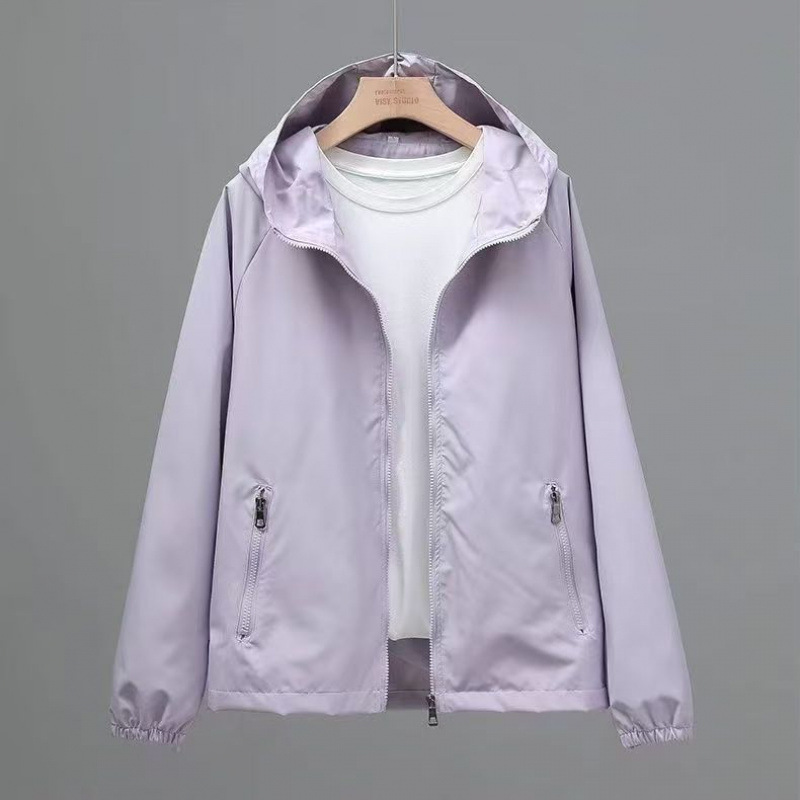 재킷 여성 봄, 가을 얇은 2025 새로운 스타일 재킷 야외 캐주얼 재킷 후드 솔리드 컬러 루즈 윈드 브레이커 재킷