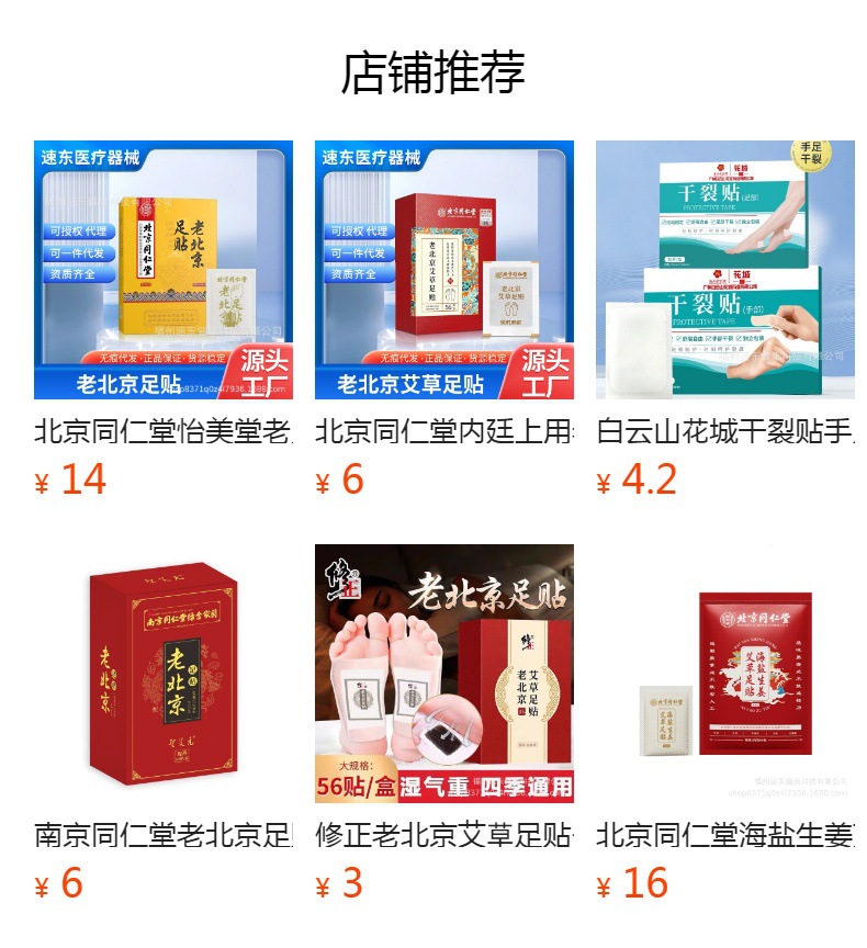 베이징 통렌탕 내부 홀아이탕 발 온열 패치 20 패치 발 관리 공장 현장 직배송스토어 가기