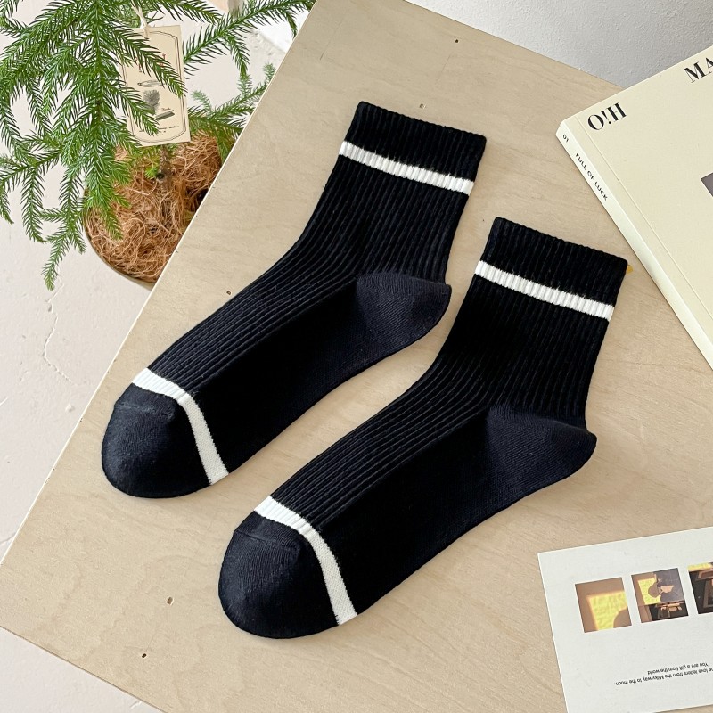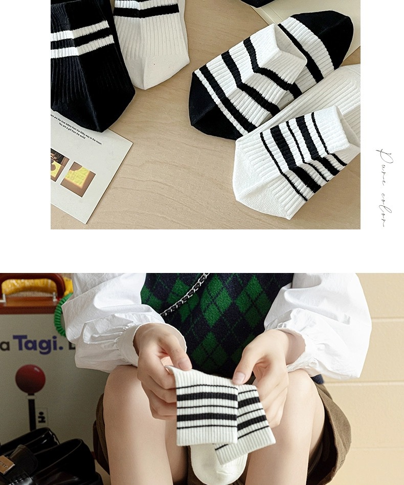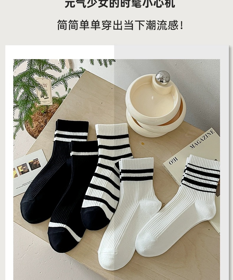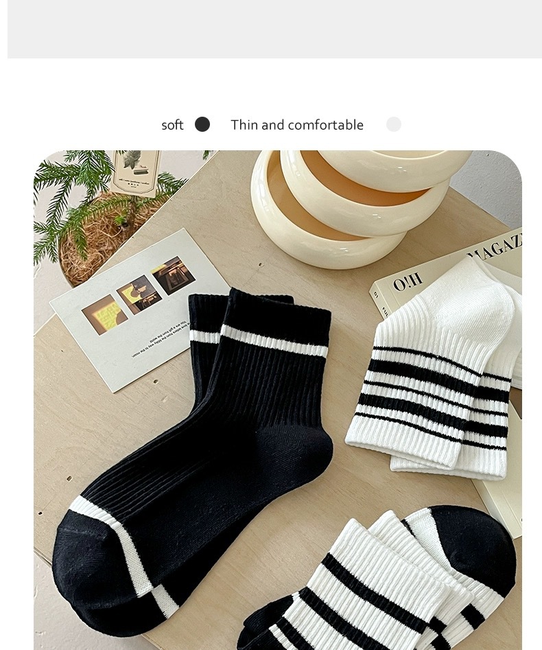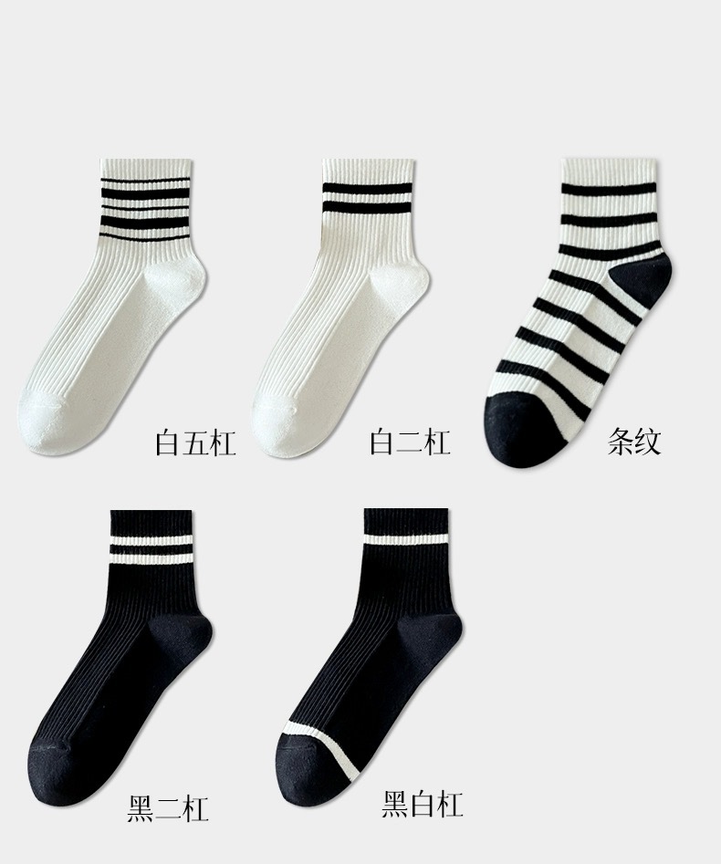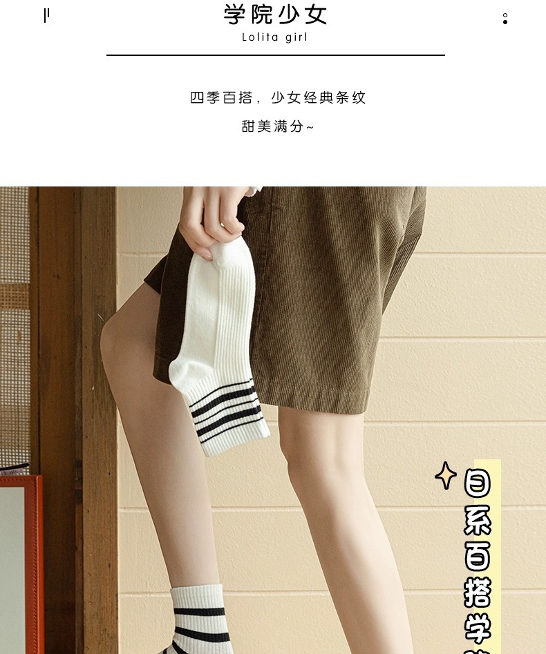 어린이를위한 줄무늬 양말 여름 얇은 대학 스타일 중간 양말 흑백 가죽 신발 학생 스포츠 뼈없는 코튼 양말 유행스토어 가기
