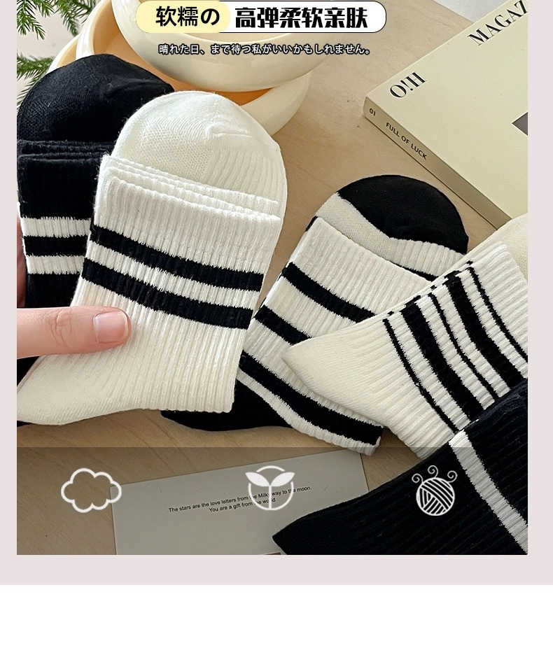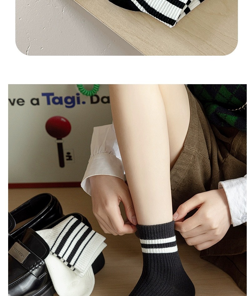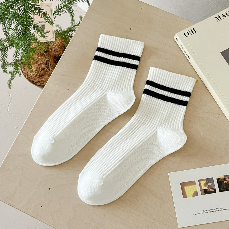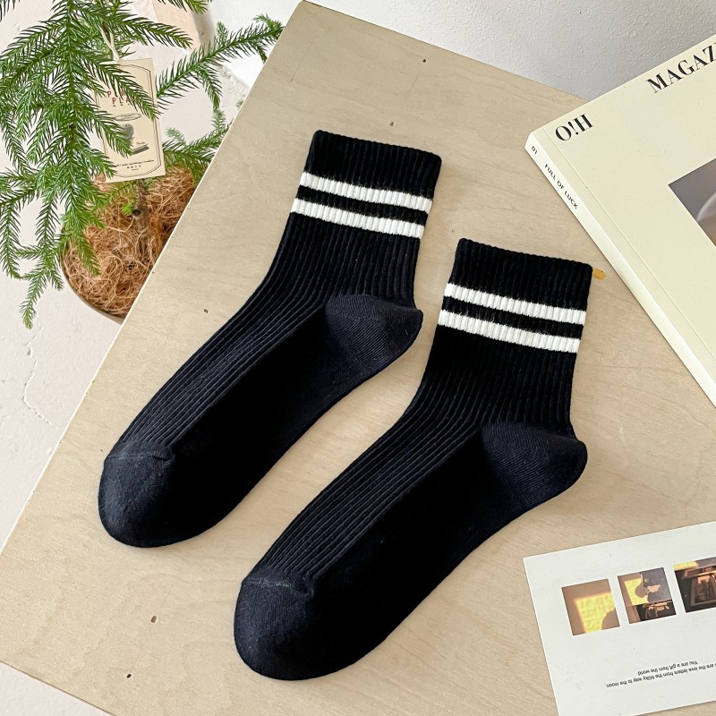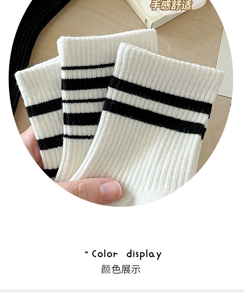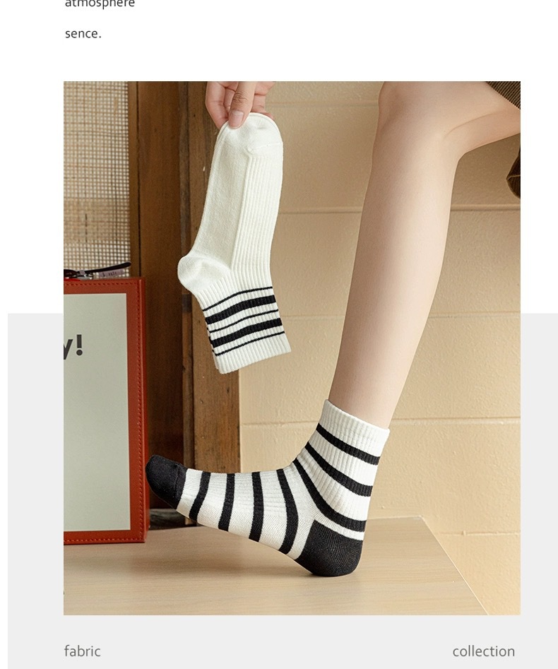 어린이를위한 줄무늬 양말 여름 얇은 대학 스타일 중간 양말 흑백 가죽 신발 학생 스포츠 뼈없는 코튼 양말 유행스토어 가기