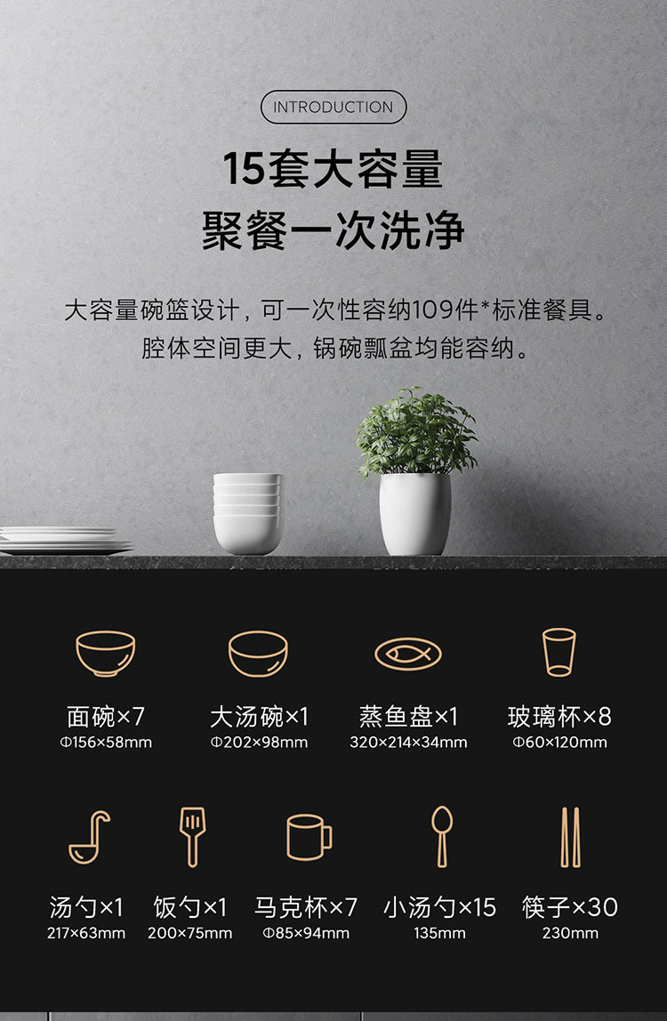 • Mijia 스마트 독립형 이중 목적 식기세척기 15세트 S1