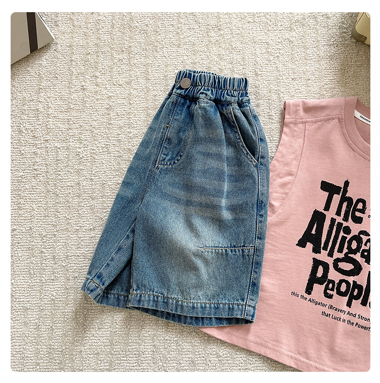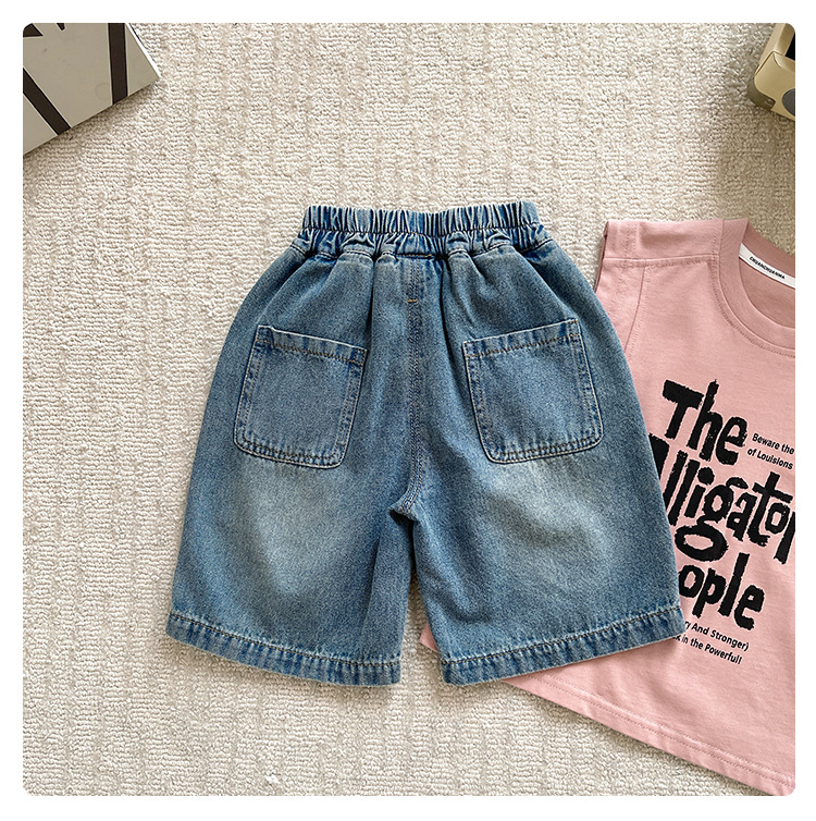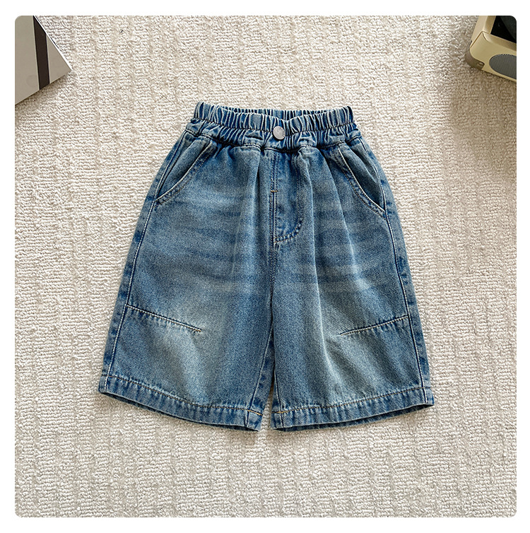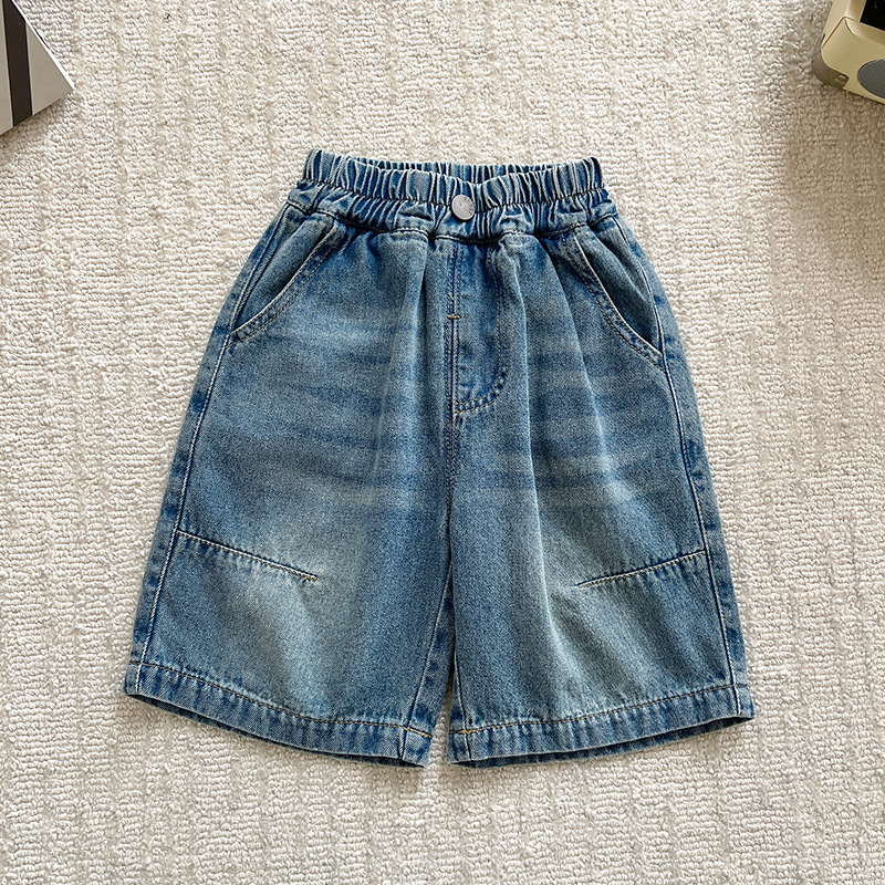 샤나오 2025 여름 새 어린이 바지 어린이 올매치 5 점 바지 소년 빈티지 세탁 라인 데님 반바지스토어 가기