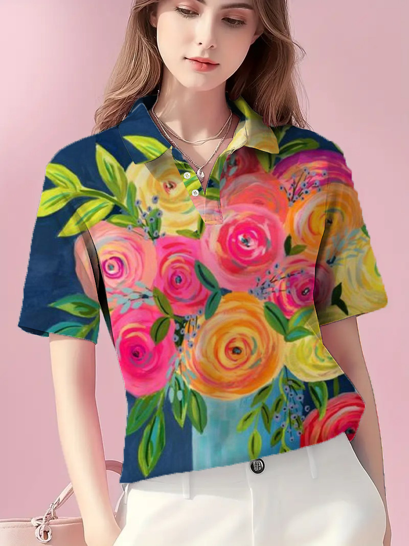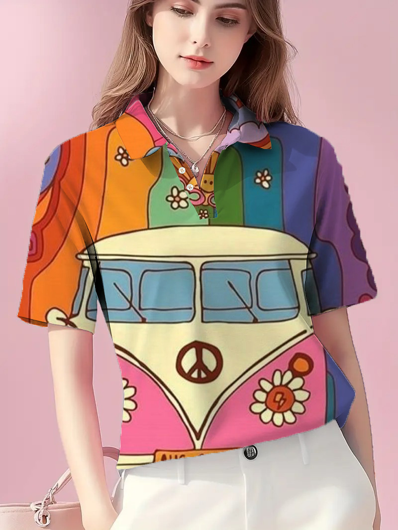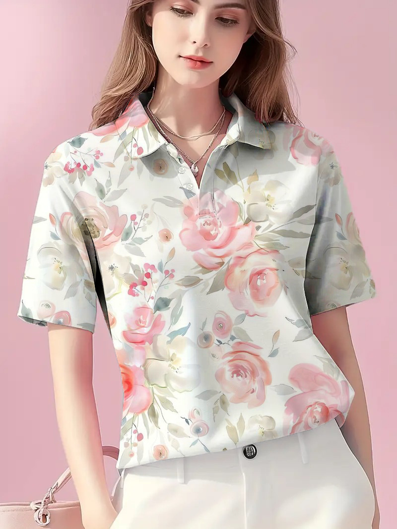 여성용 반팔 폴로 셔츠, 여성용 프린트 캐주얼 스포츠 탑, 골프 셔츠, 드롭 배송 전문