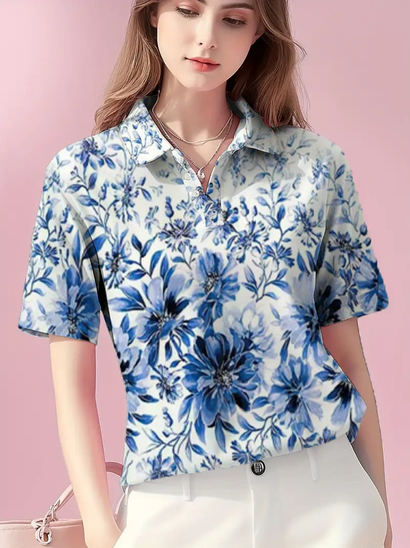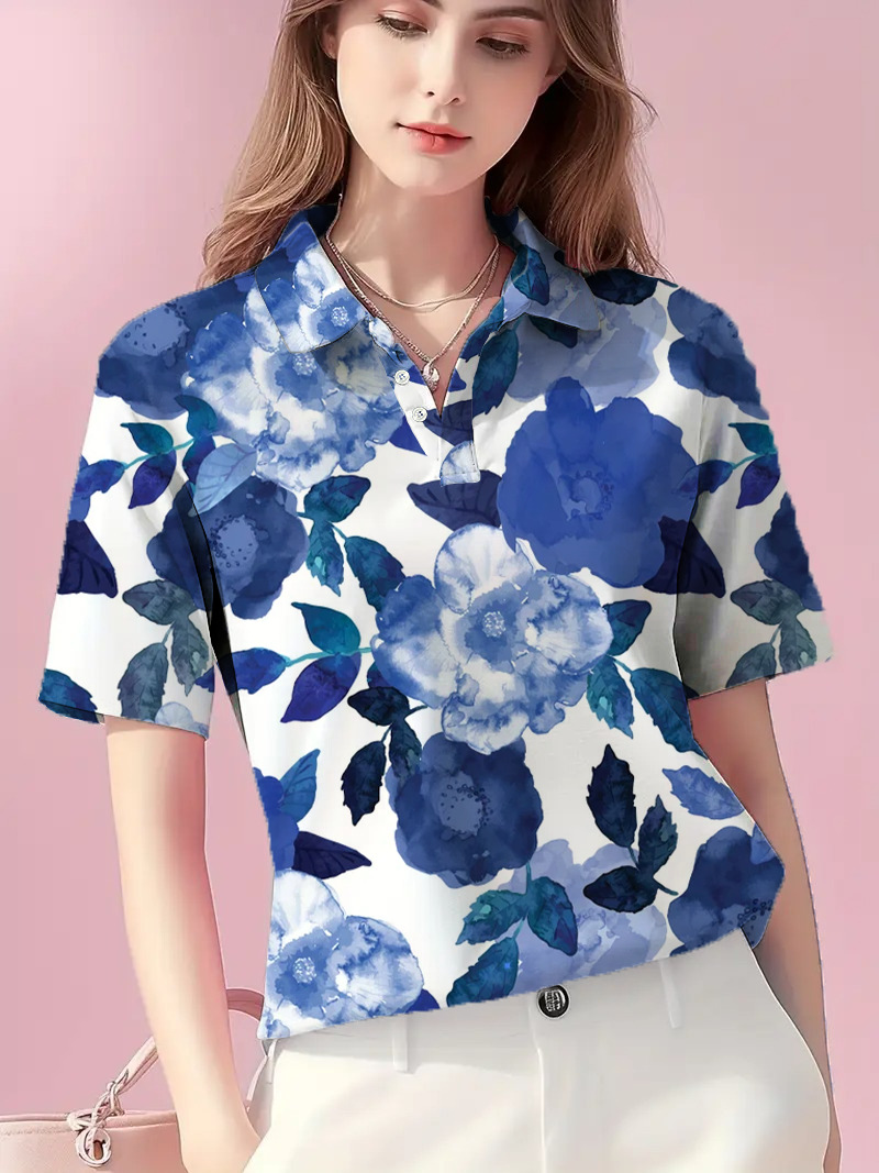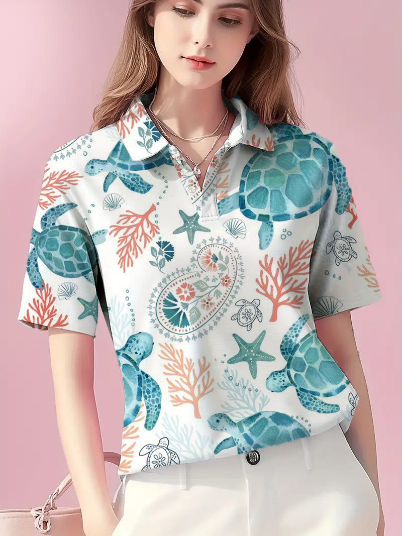 여성용 반팔 폴로 셔츠, 여성용 프린트 캐주얼 스포츠 탑, 골프 셔츠, 드롭 배송 전문스토어 가기
