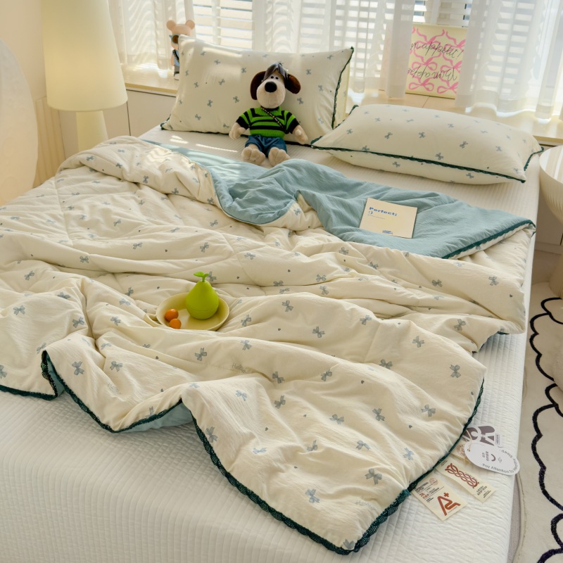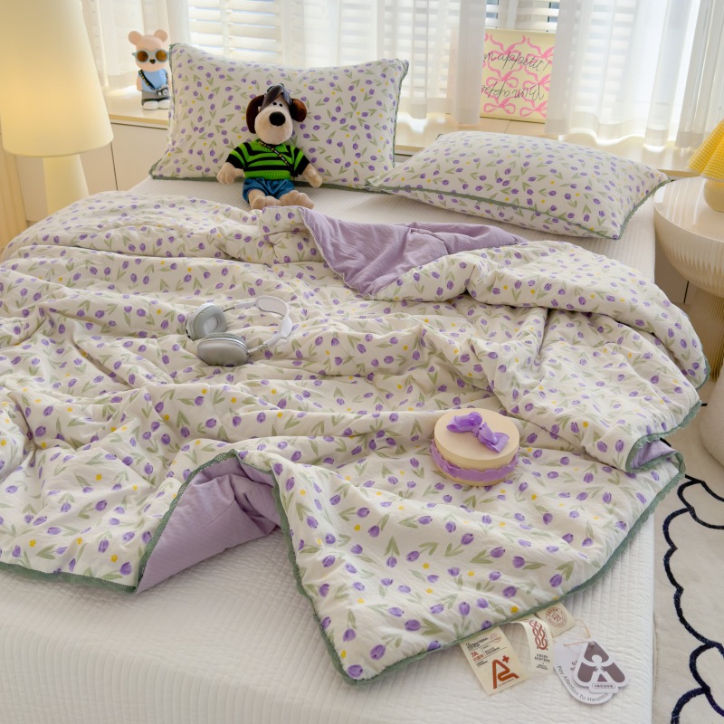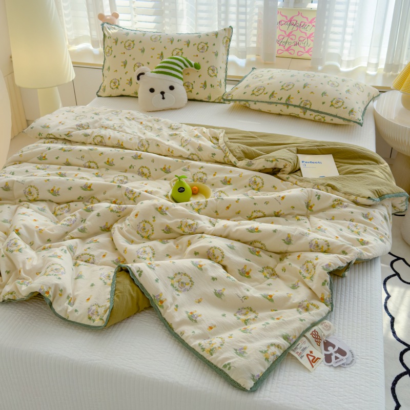 소리 폭발 유형 흔들 더블 레이어 원사 여름 시원한 이불 에어컨 싱글 더블 여름 얇은 이불 기계 빨 수있는 벌거 벗은 수면 도매스토어 가기