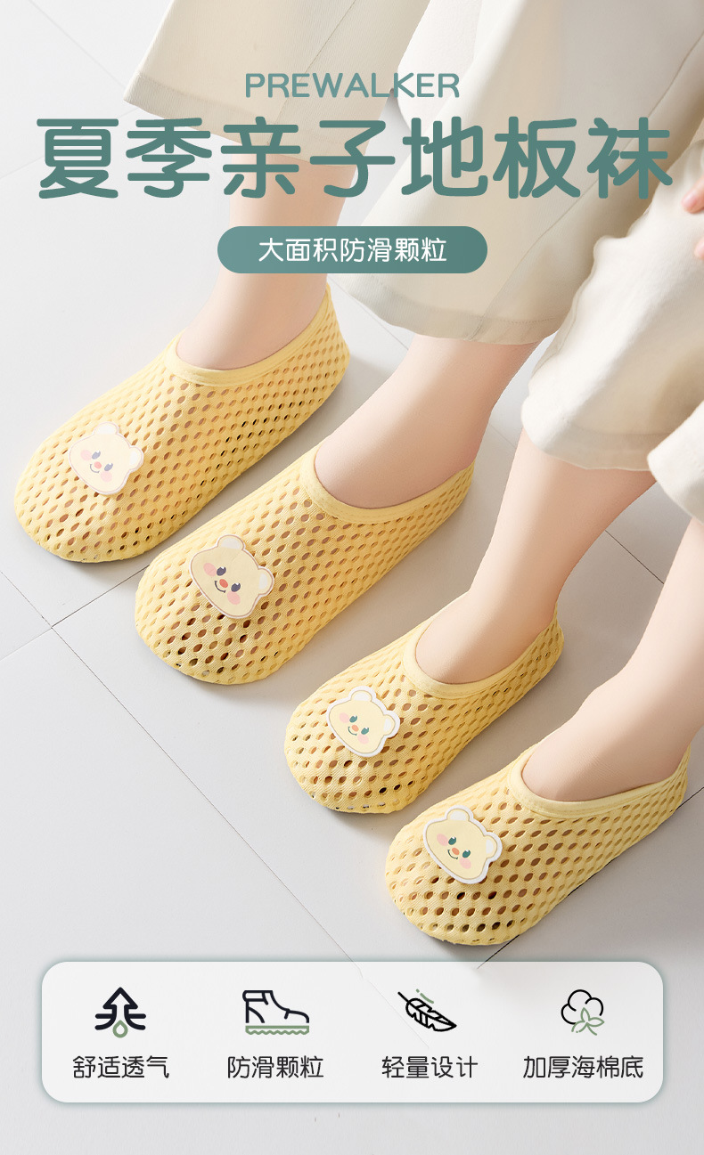 성인용 바닥양말, 성인용 가정용 실내 아기 신발 및 양말, 미끄럼 방지 부드러운 바닥 부모-자식 봄 여름 얇은 어린이 양말