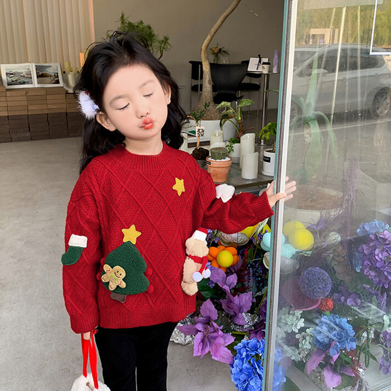 여자 2024 가을 새해 축제 스웨터 크리스마스 아기 풀오버 스웨터 따뜻한 편안한 최고 트렌디스토어 가기
