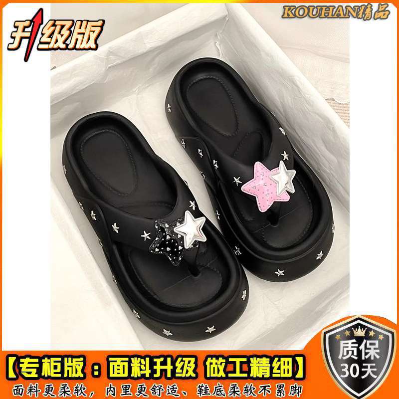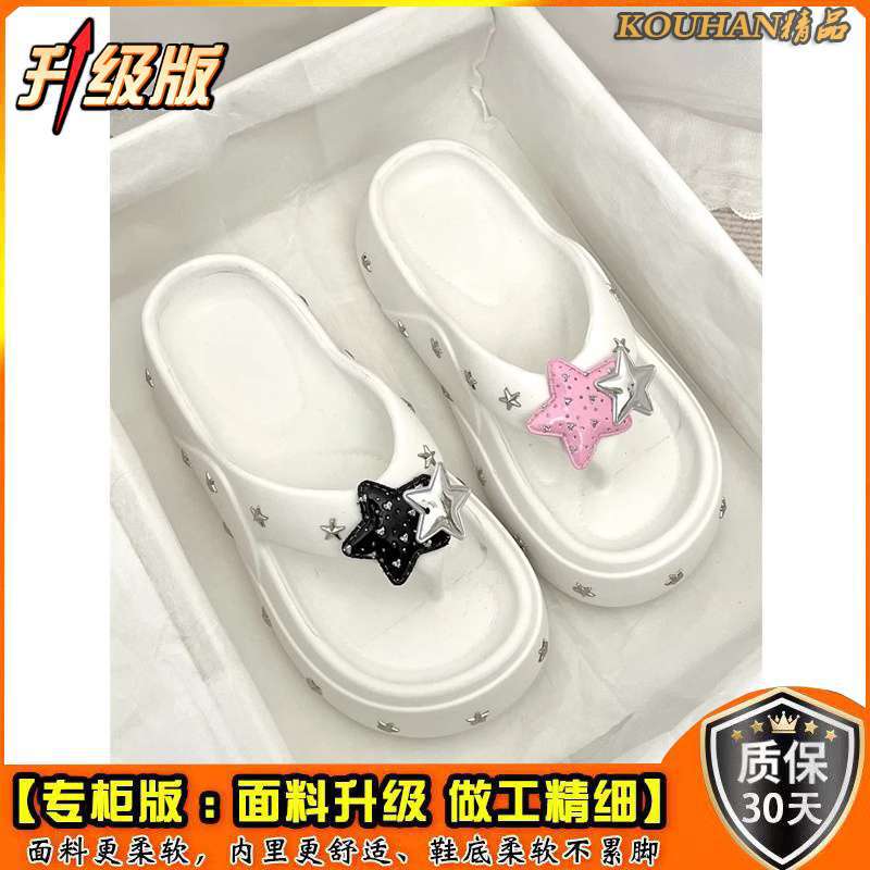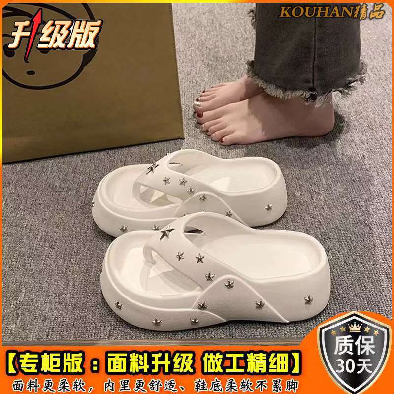 여성을위한 두꺼운 밑창 높이 증가 핫 소녀 플립 플롭 2025 여름 새로운 패션 겉옷 비치 캐주얼 스타 플립 플롭