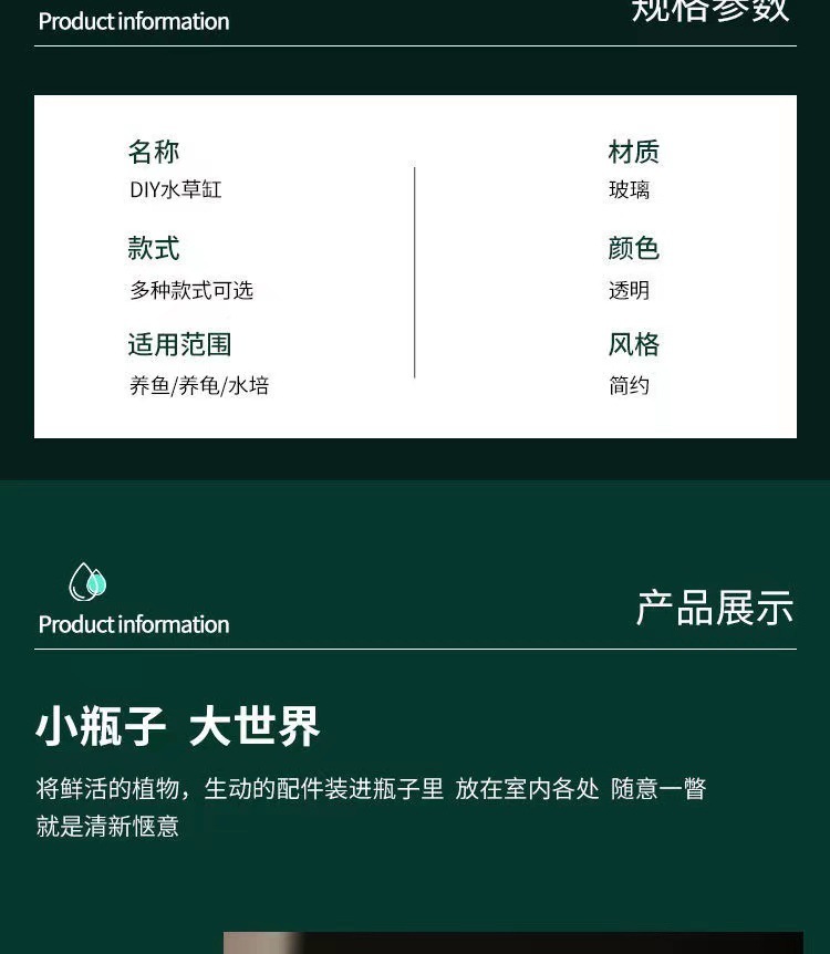 수경생태병, 탁상장식품, 마이크로조경, 녹색식물, 소형어항, 사계절 물씨유리병조경, 조지우스토어 가기