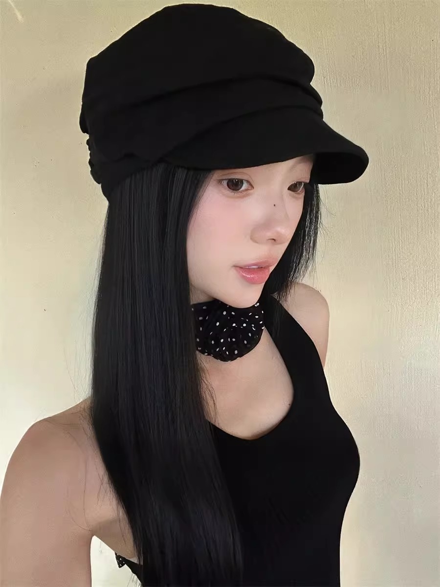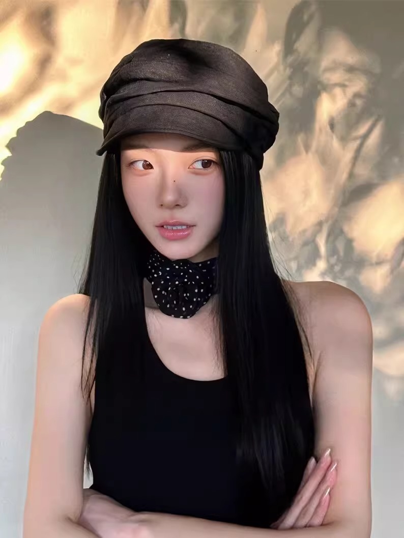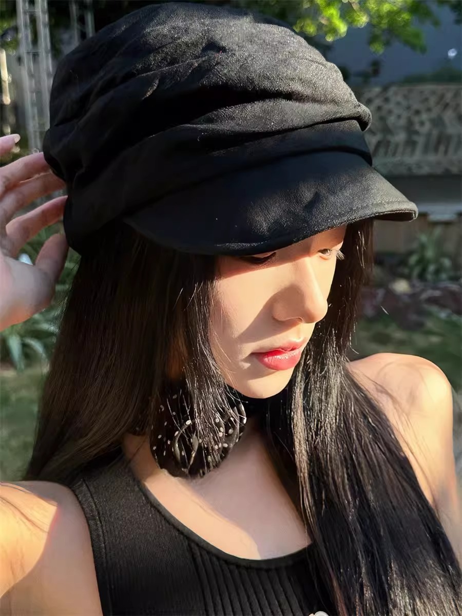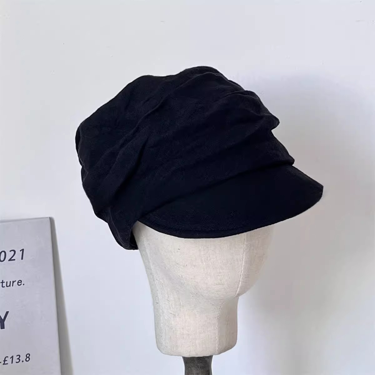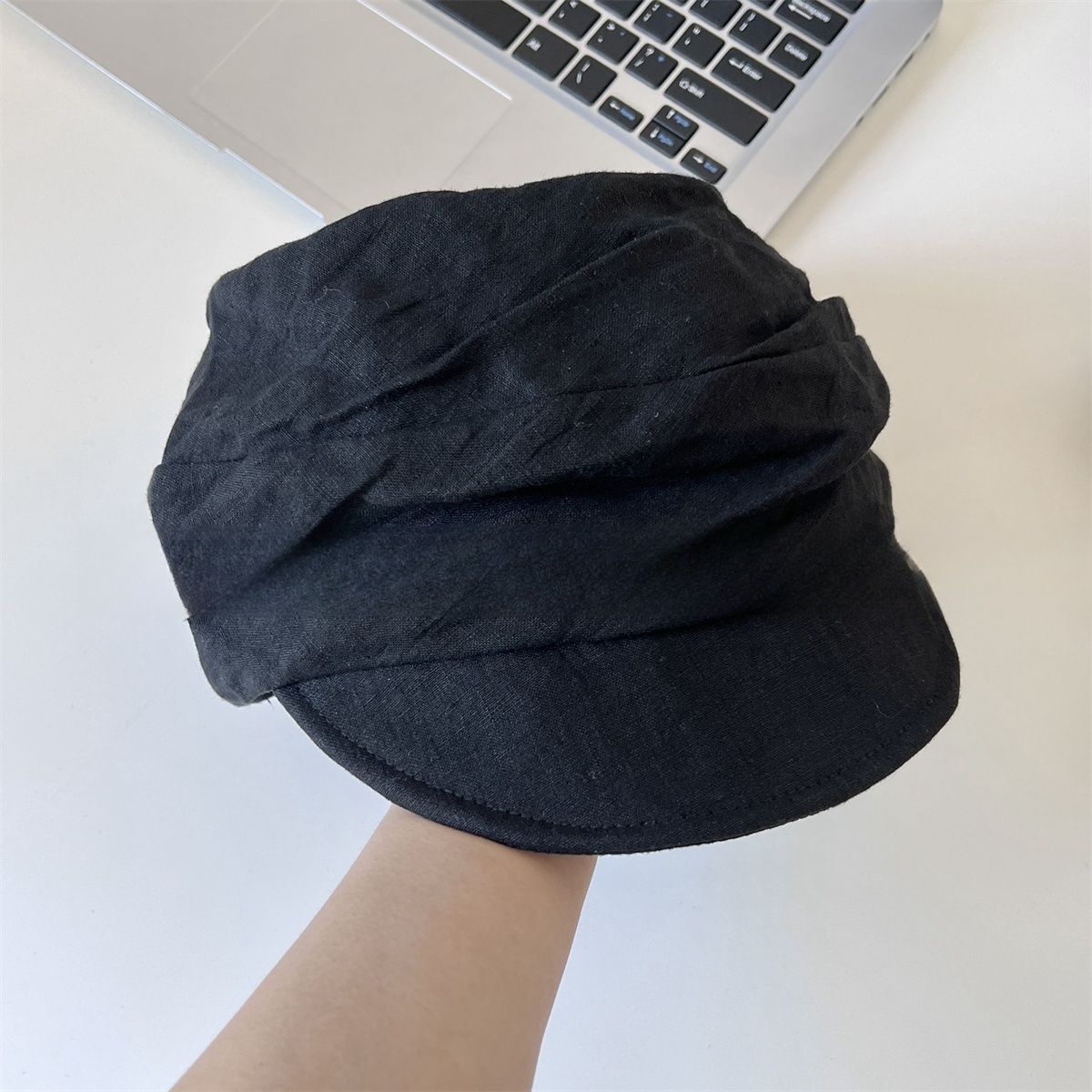 봄 여름 여성용 주름 디자인 블랙 피크 캡 얇은 통기성 면 및 린넨 프론트 캡 맞춤형 다용도 팔각형 모자스토어 가기
